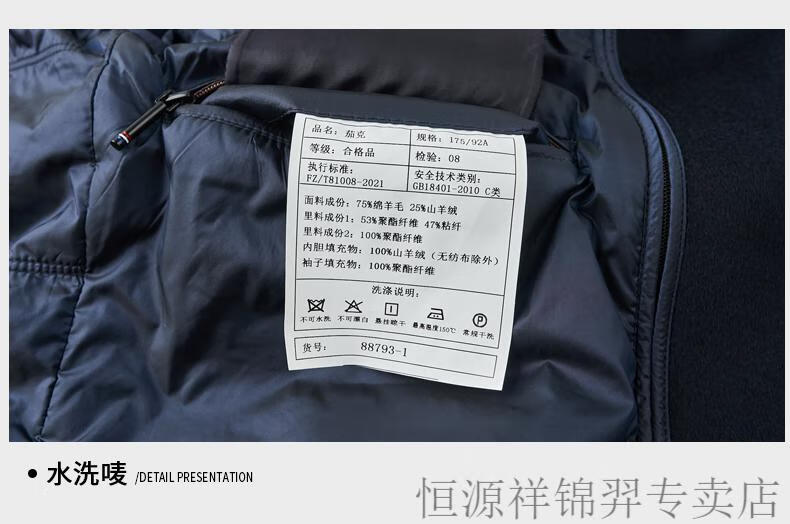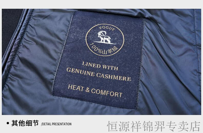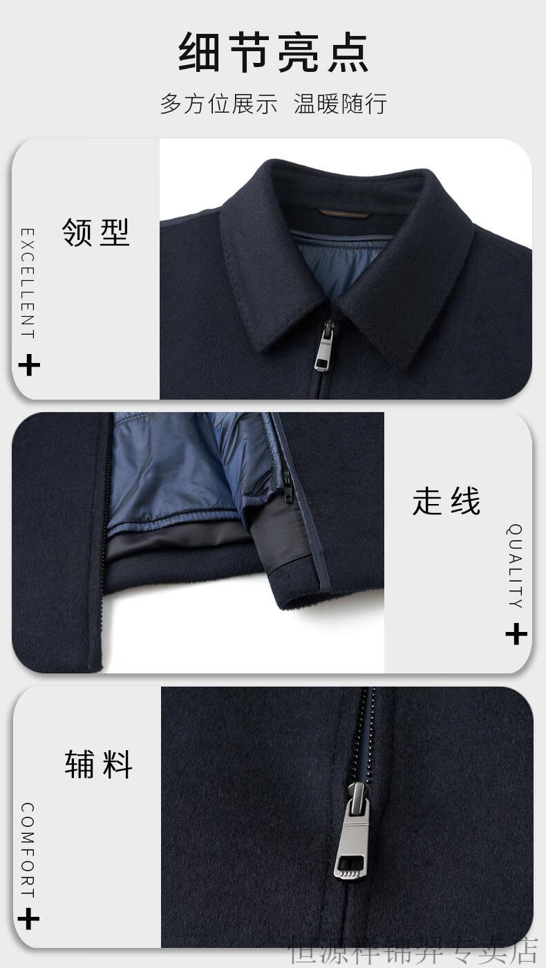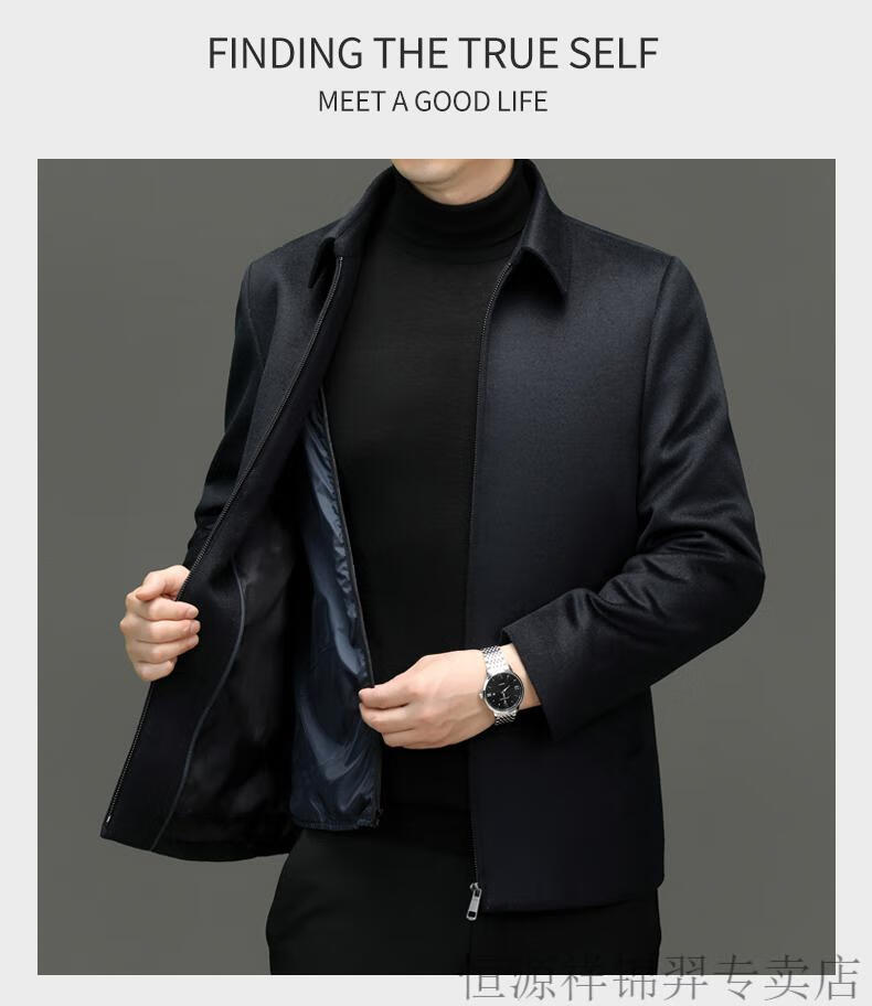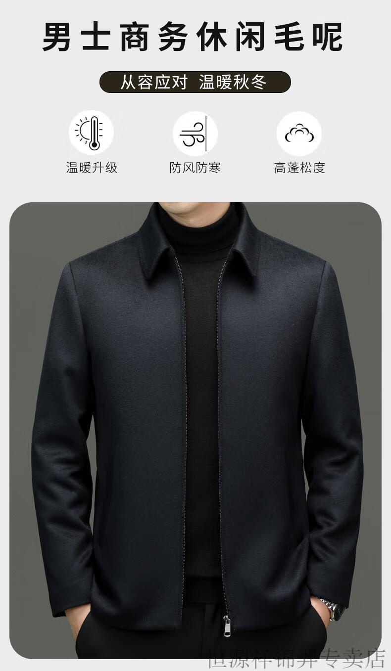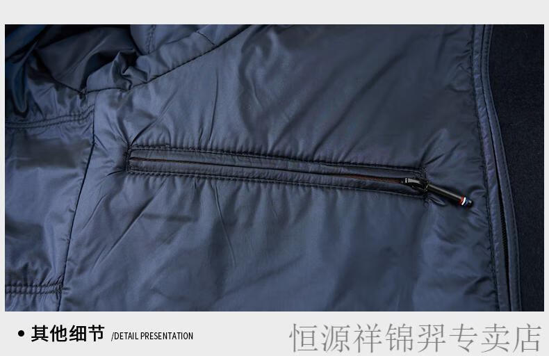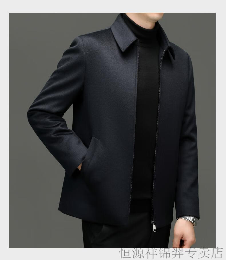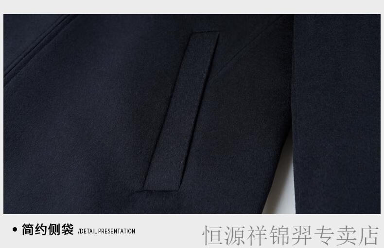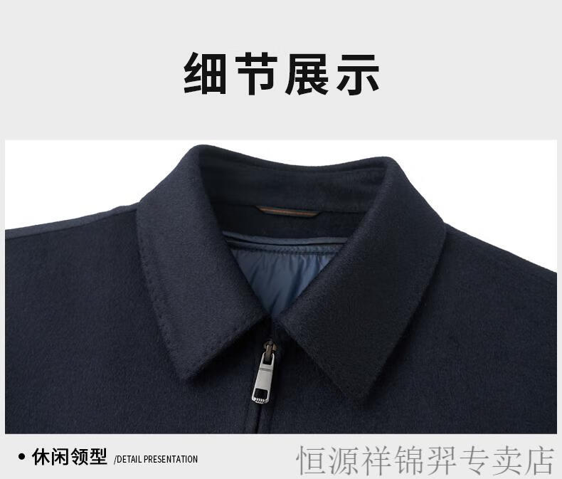 Hengyuanxiang (HYX) high-end business men's autumn and winter new style wool jacket with removable cashmere liner executive coat for men navy blue removable cashmere liner L 175