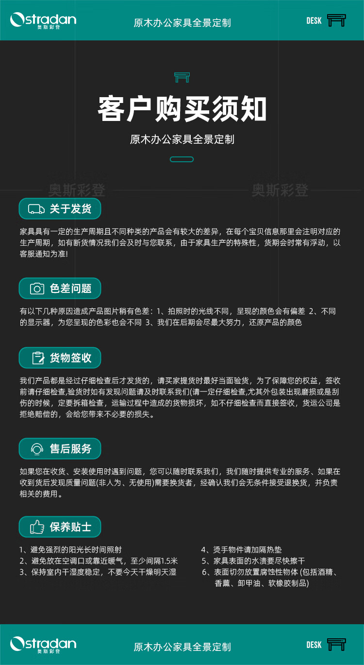 Oscarden solid wood desk for living room, home Italian-style horizontal living room sofa, large long table, light luxury double study table, customized size/color/plus socket-contact customer service
