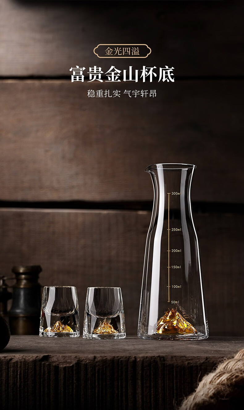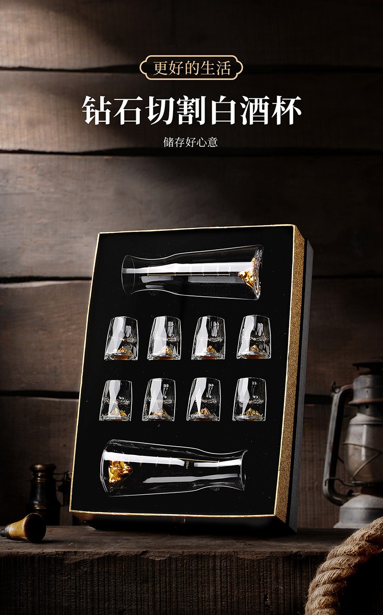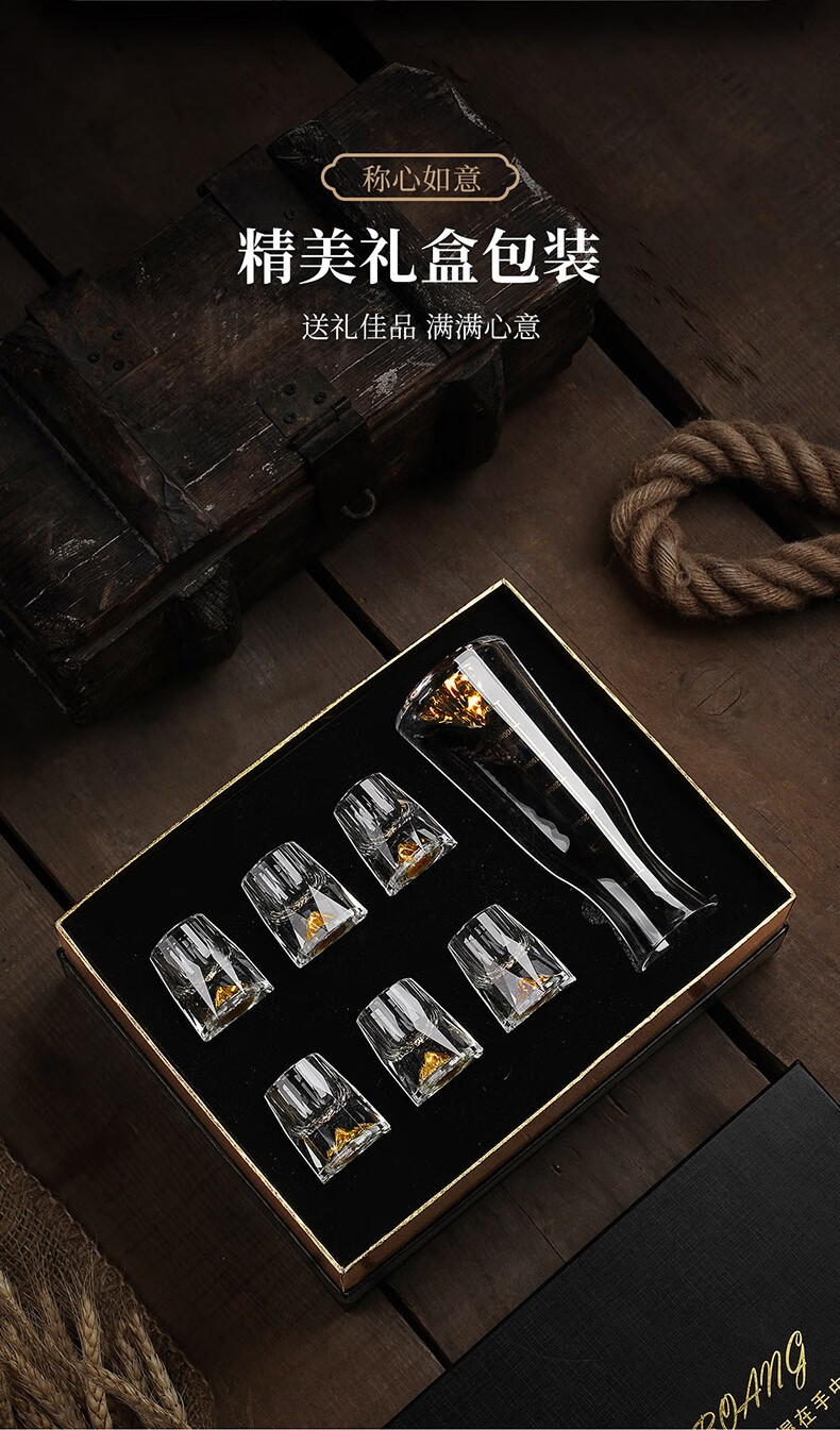 FANKAQI high-end diamond white wine glass wine dispenser white wine glass set liquor cup one cup household wine distribution 1 pot 6 cups straight gold foil gift box