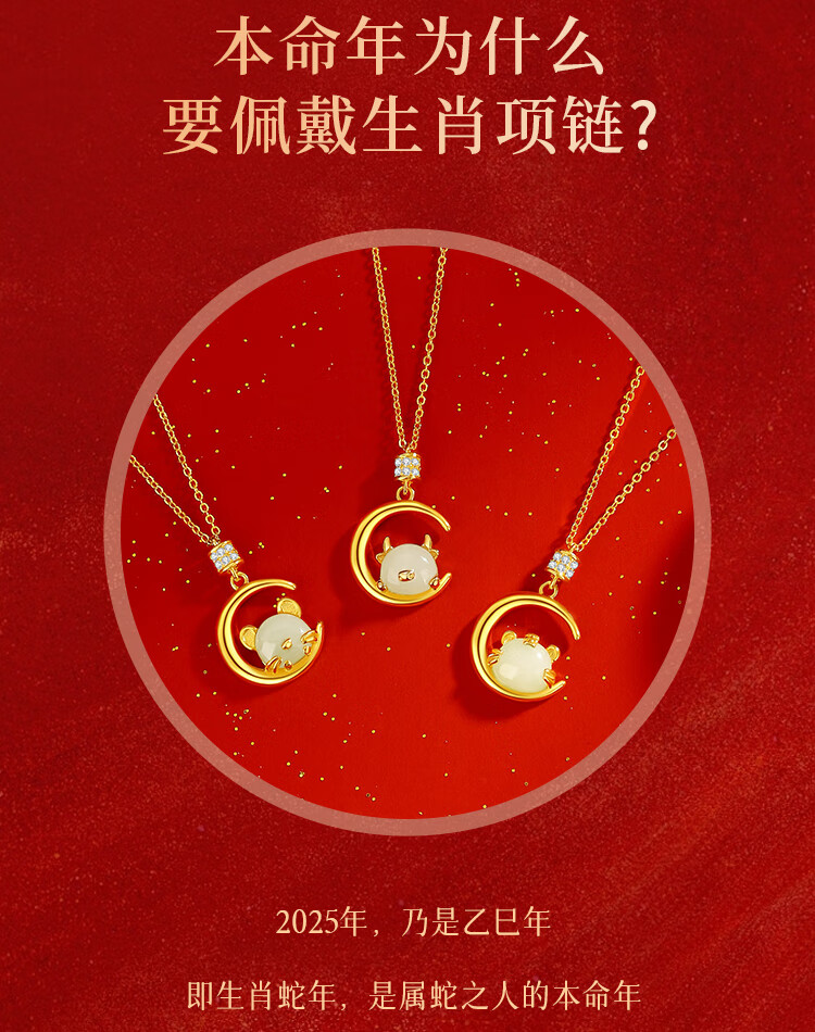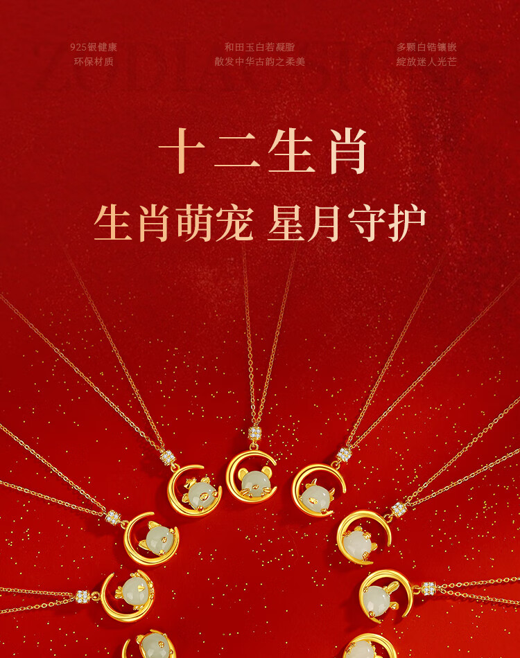 Silver Qianhui 925 Silver Zodiac Year Hetian Jade Necklace Girl's Year of the Snake Pendant Light Luxury Valentine's Day Birthday Gift for Girlfriend Lingyu Zodiac Necklace/Zodiac Ox + Free Engraving Comes with Jewelry Certificate/Valentine's Day Girl Gift/Exquisite Gift Box