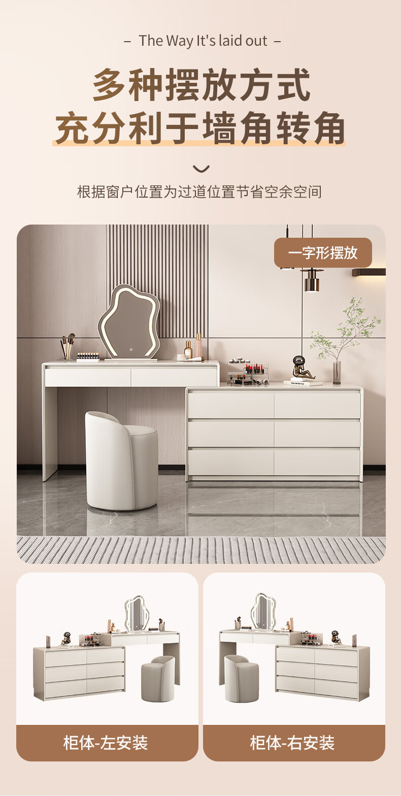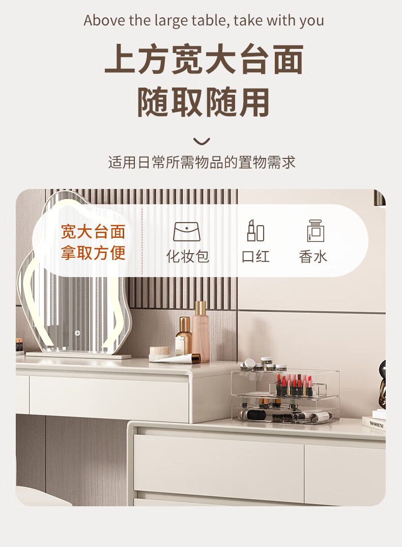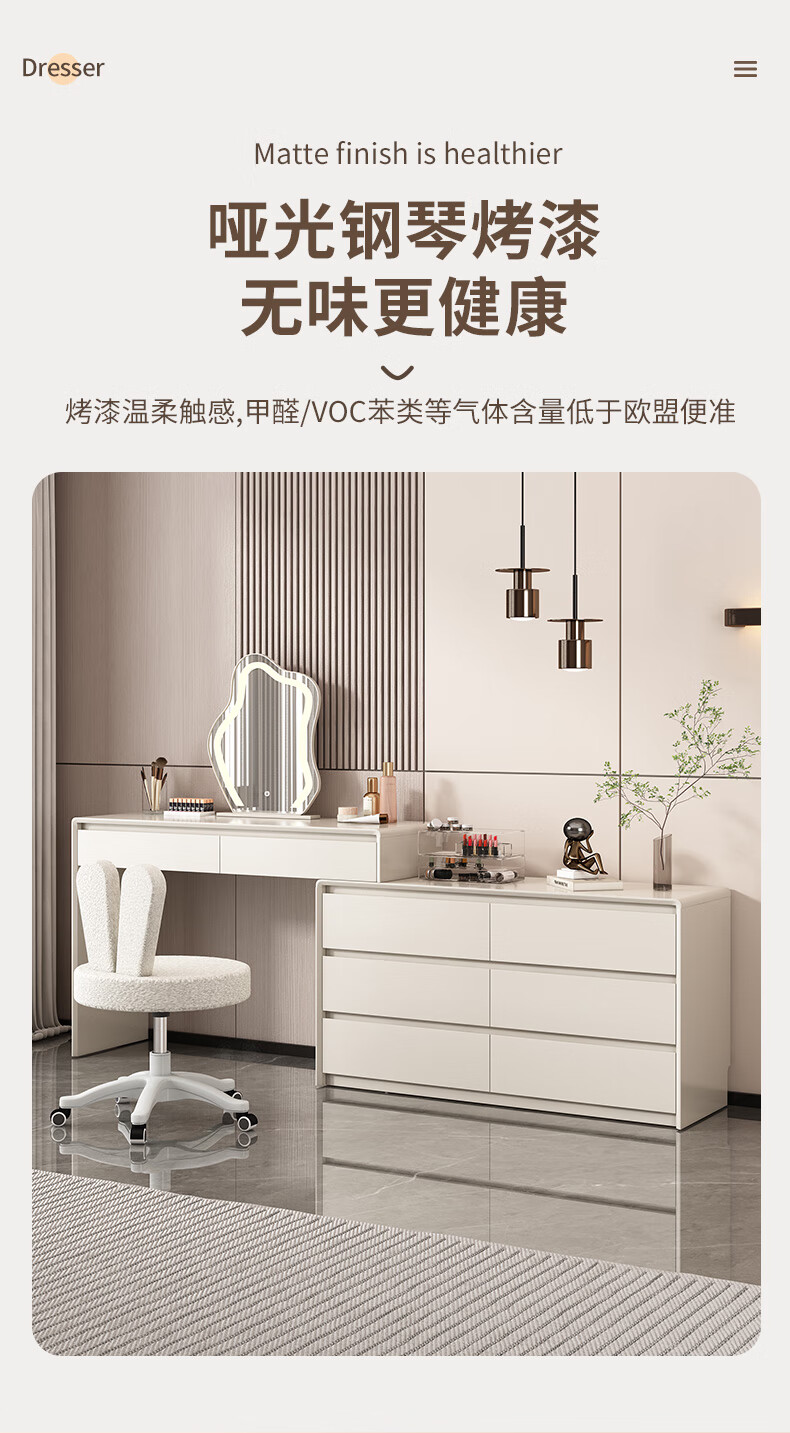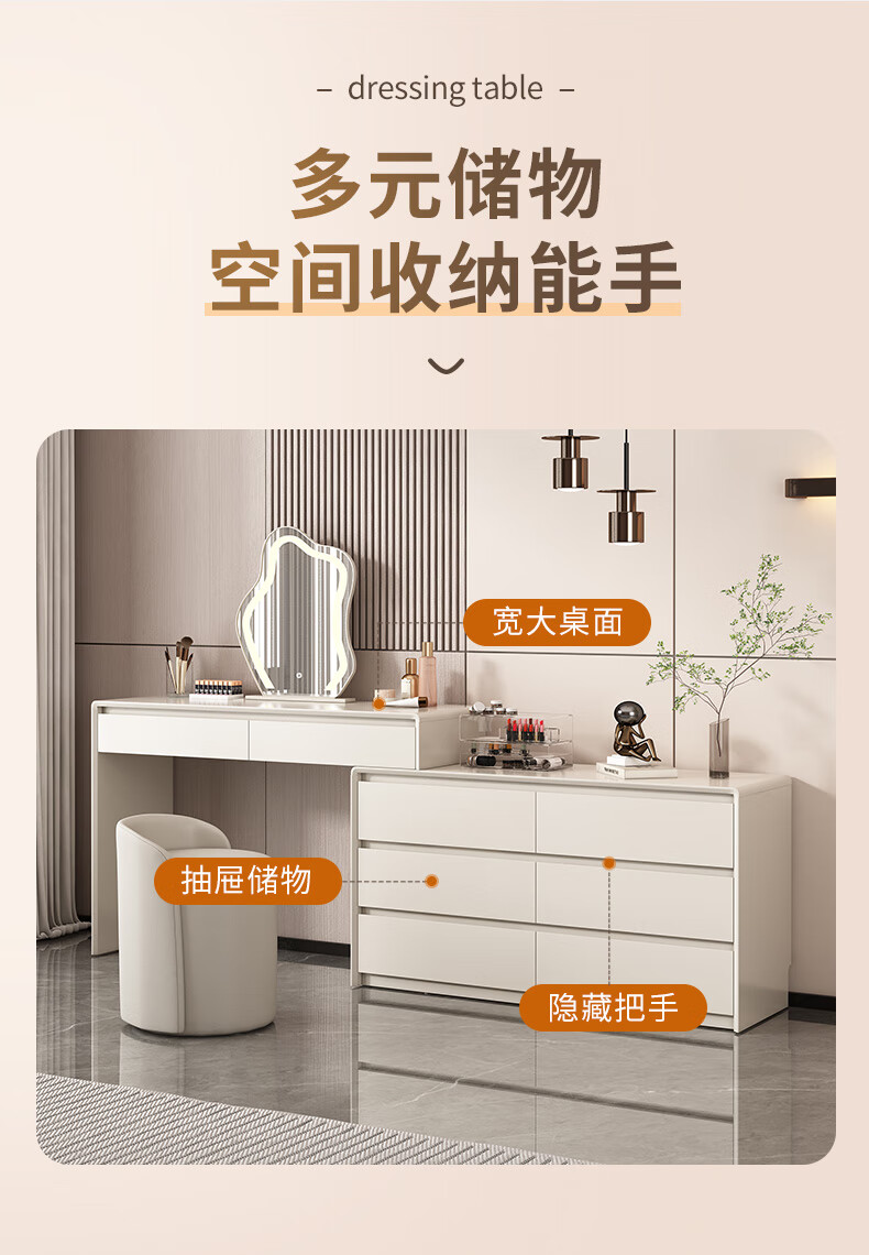 Solid wood dressing table, simple and modern cream style dressing table, bedroom storage cabinet, bedside drawer and integrated desk, matte gray crystal diamond countertop, order notes, stool, 40 width, door-to-door delivery and installation included