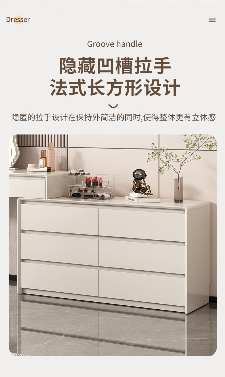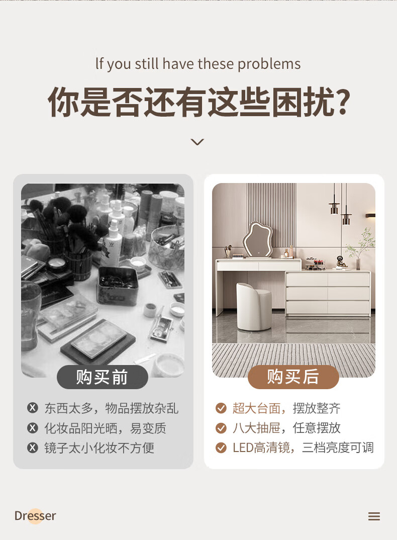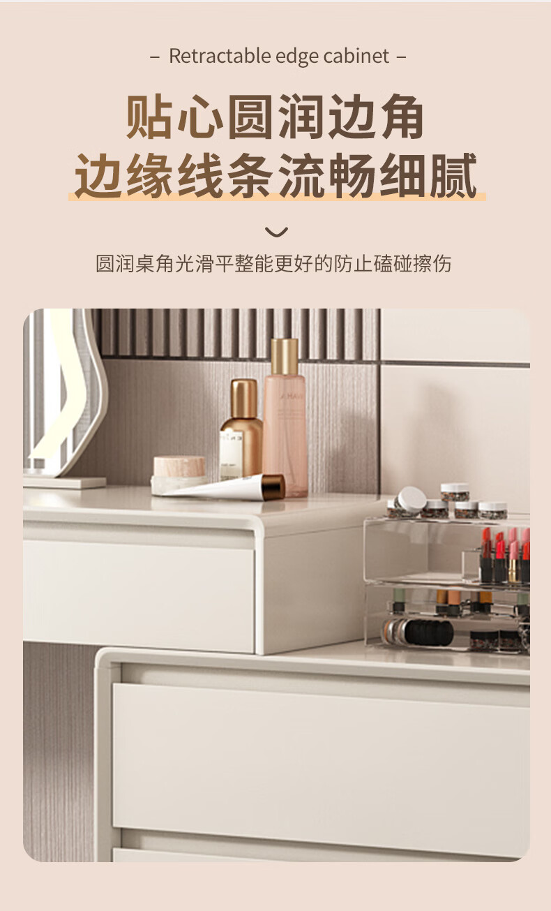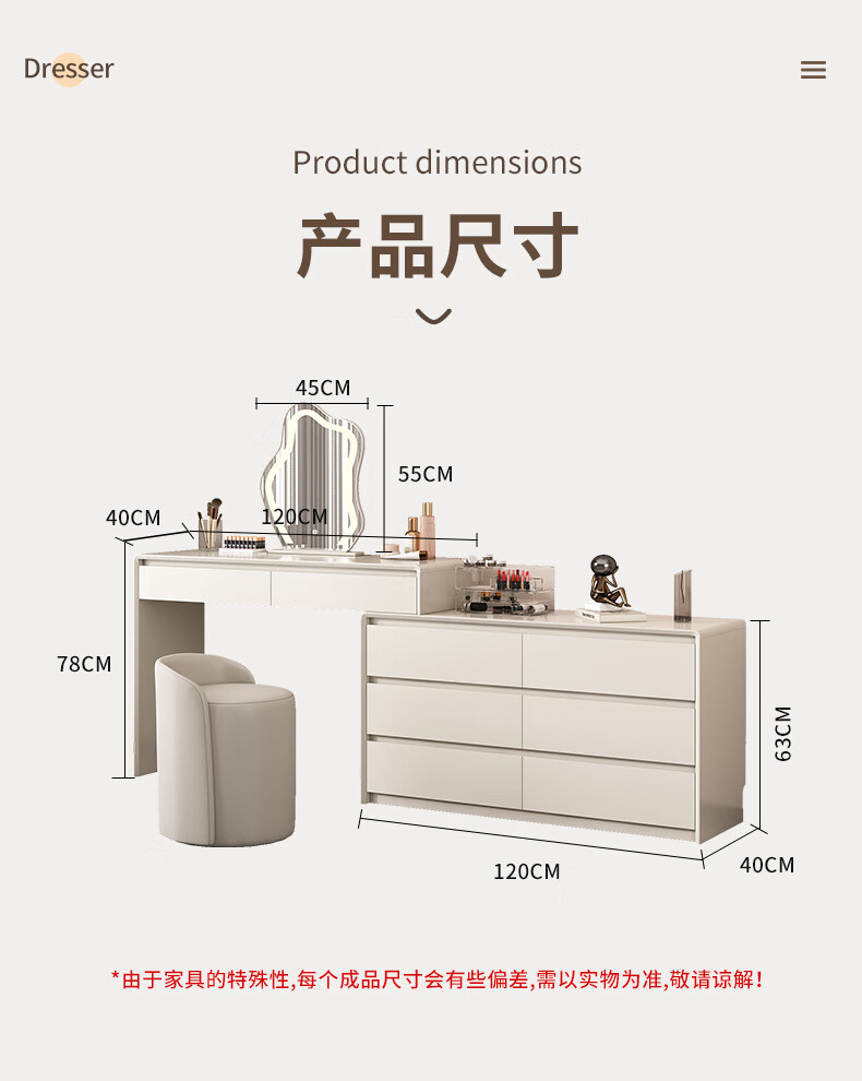 Solid wood dressing table, simple and modern cream style dressing table, bedroom storage cabinet, bedside drawer and integrated desk, matte gray crystal diamond countertop, order notes, stool, 40 width, door-to-door delivery and installation included
