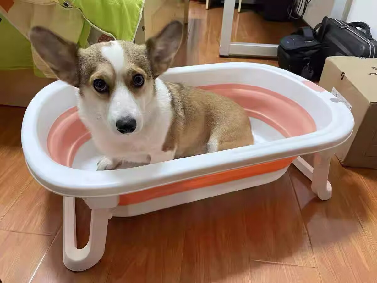 Pet Dog Bathtub Foldable Puppy Cat Bathtub Small Dog Teddy Corgi Special Bathtub Bathtub 7Jin Jin equals 0.5kg Inside Sky Blue Foldable With Drainage Port
