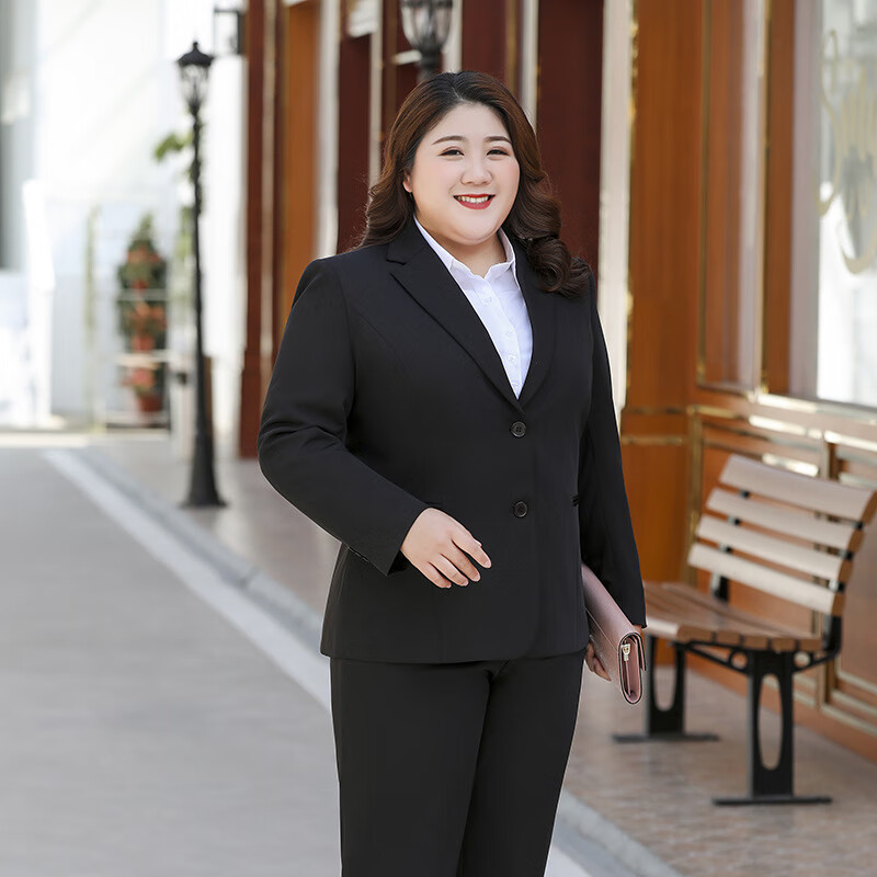 Haoyao professional suit suit women's jacket women's formal wear women's spring and autumn plus plus fat mm suit interview temperament workwear black suit 5XL size (weight 150-160)