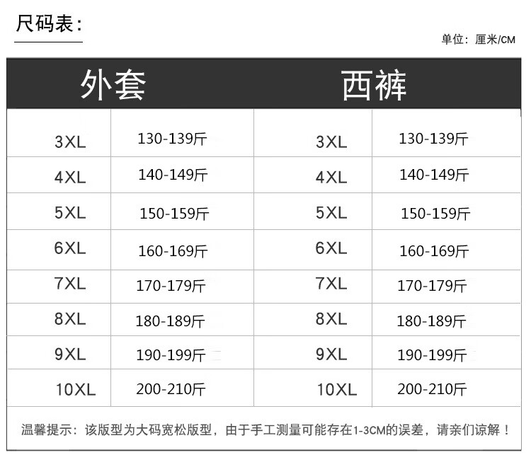 China (cm) 165 / 88-90 170 / 96-98 175 / 108-110 180 / 118-122 185 / 126-130