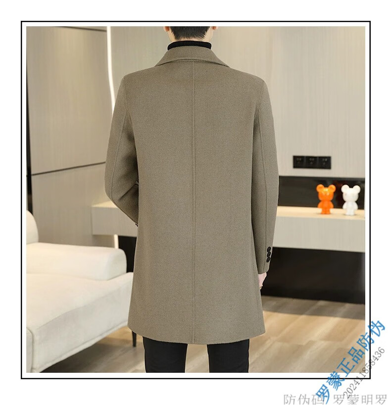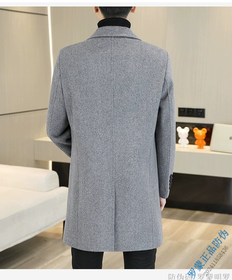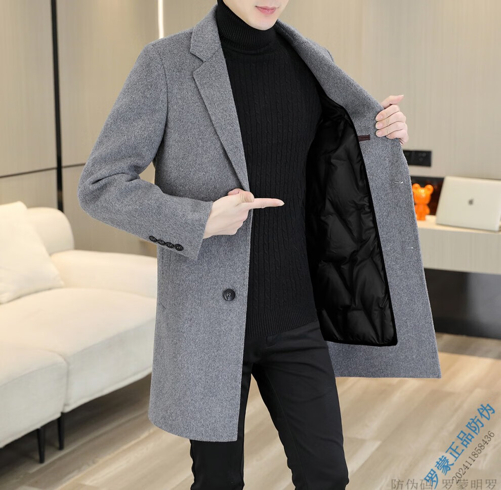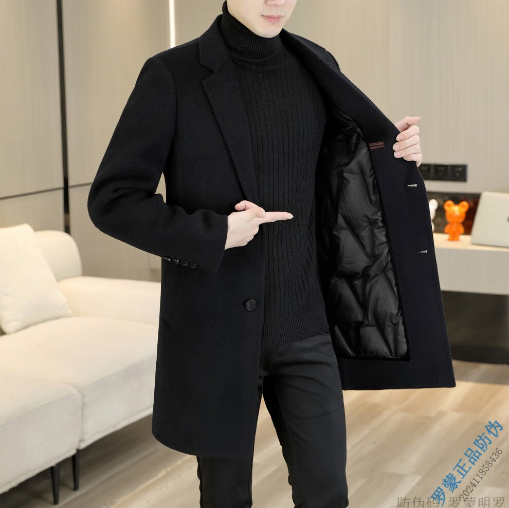 ROMON Light luxury high-end wool men's double-sided woolen coat goose down lining cashmere woolen coat mid-length autumn and winter black 9923-100 sheep-wool 185/96A 2XL-150-165Jin Jin equals 0.5 kg
