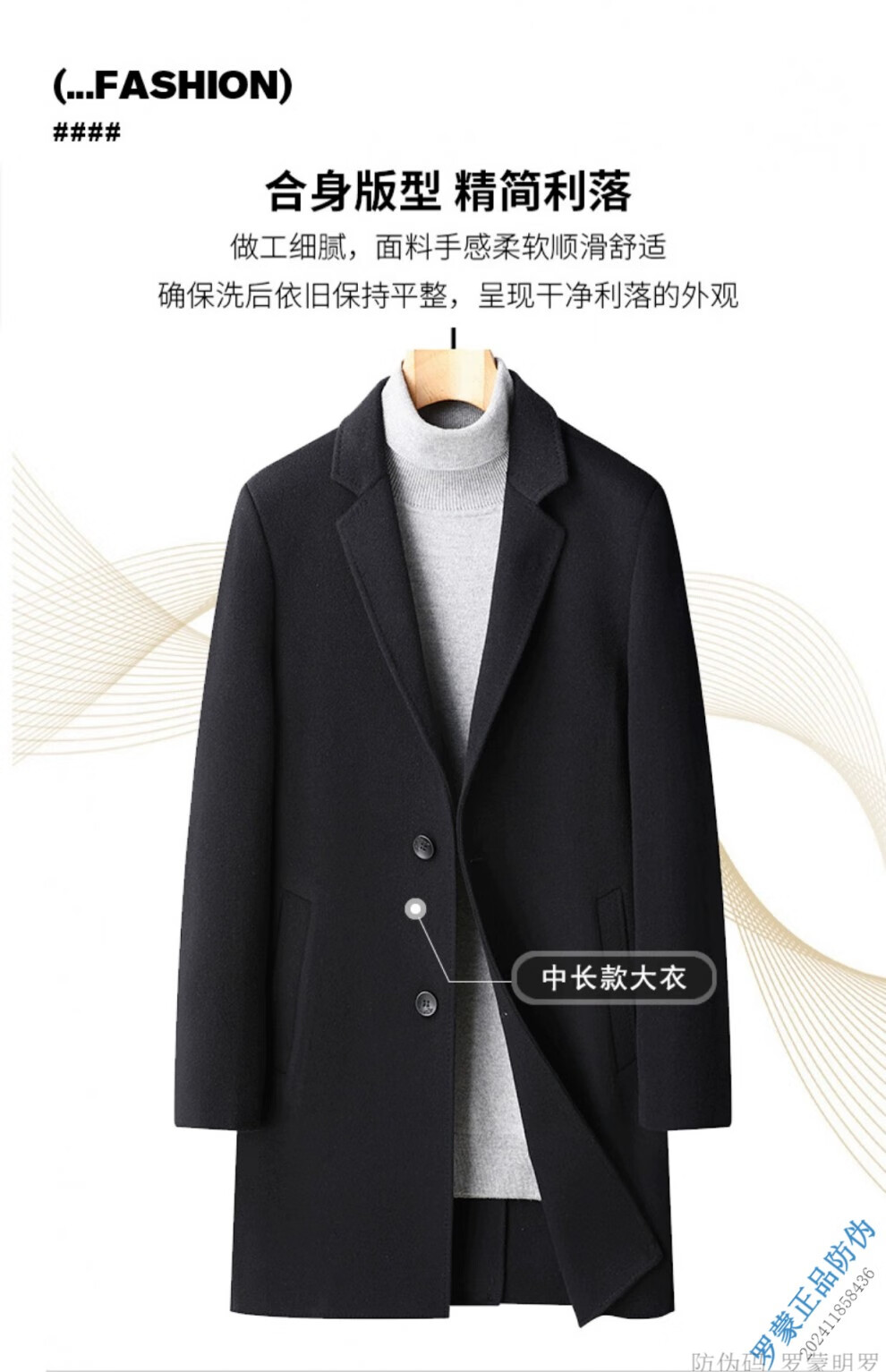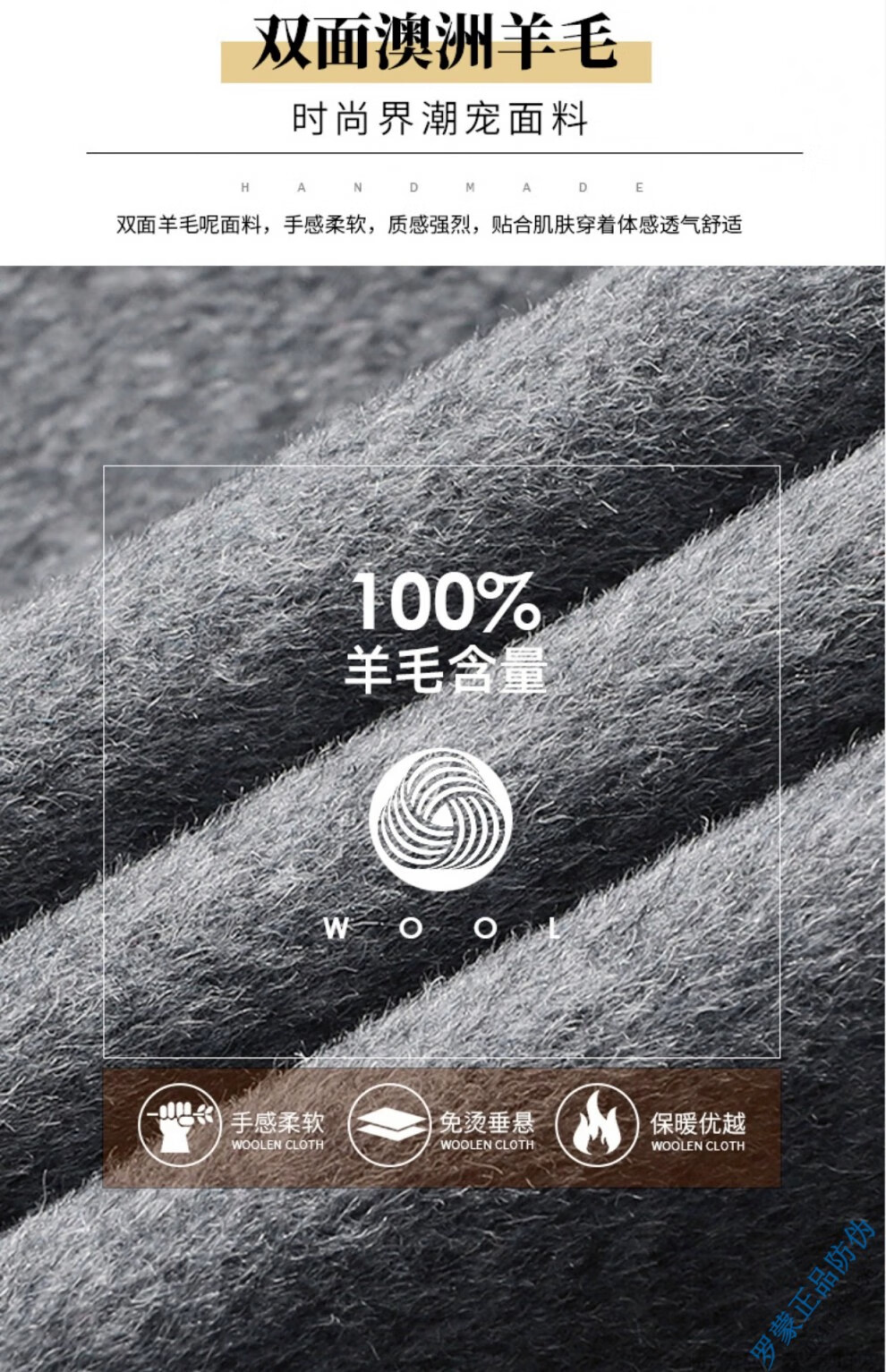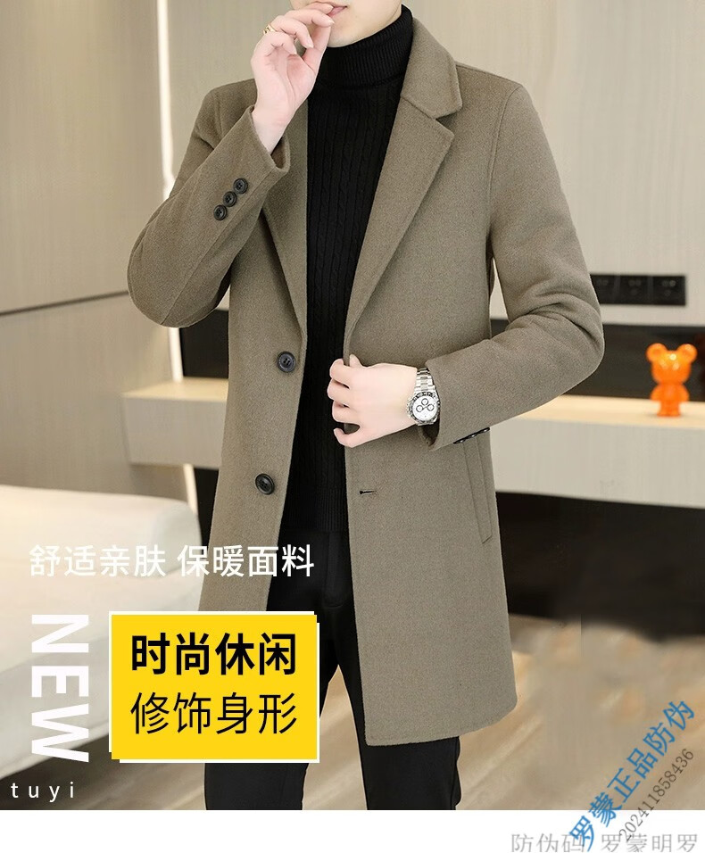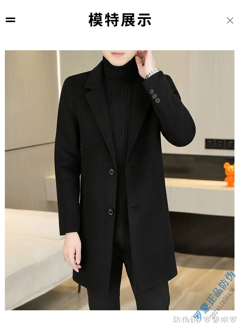 ROMON Light luxury high-end wool men's double-sided woolen coat goose down lining cashmere woolen coat mid-length autumn and winter black 9923-100 sheep-wool 185/96A 2XL-150-165Jin Jin equals 0.5 kg
