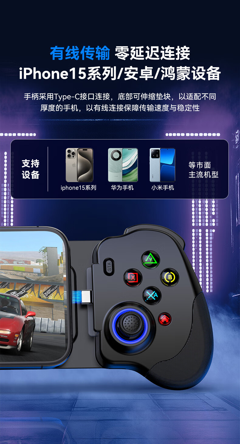 Suotian N01 wired stretch handle Type c Android/Hongmeng/Surge/ios15 mobile phone streaming PC/PS/xbox cloud game zero delay white