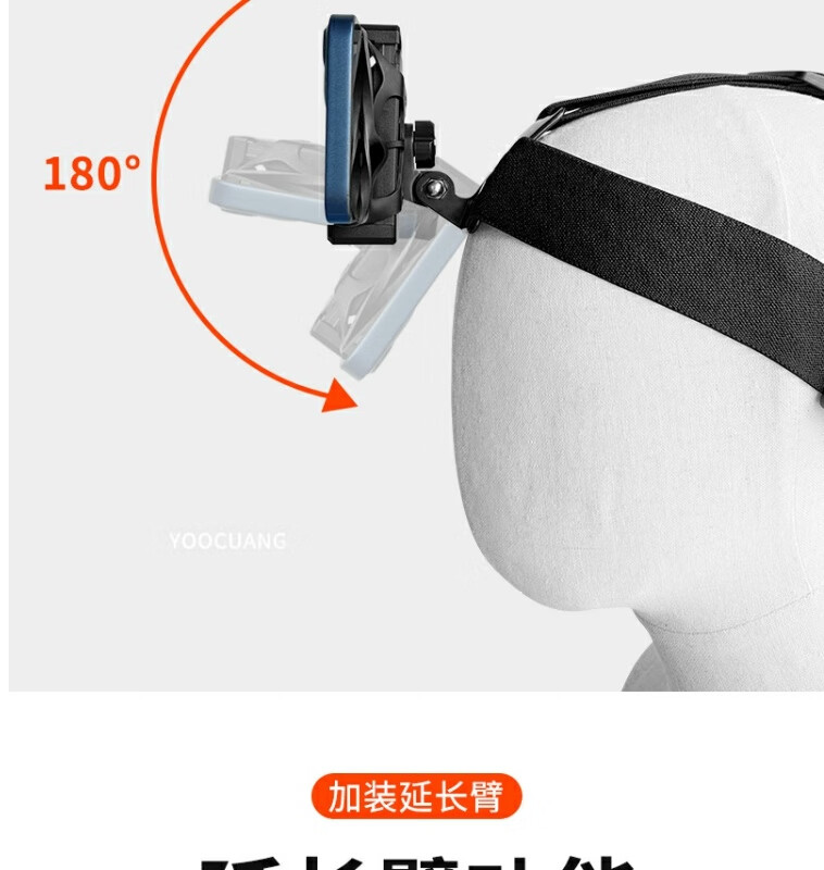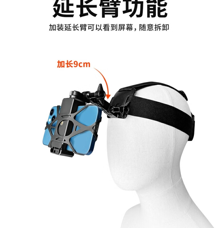 Ye Yu is suitable for head-mounted mobile phone holder, headband shooting fixed bracket, personal perspective outdoor live broadcast bracket, walking, head-mounted mobile phone clip + extension arm