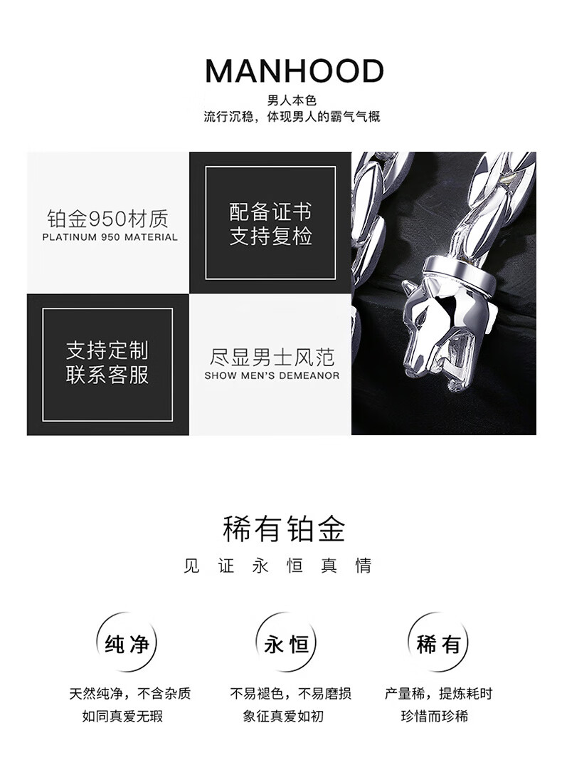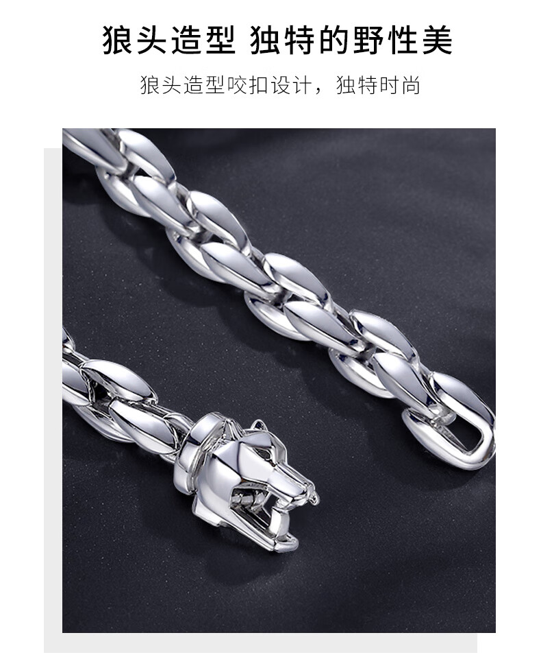 Aido Diamond pt950 platinum wolf head bracelet for men, platinum bracelet, domineering and high-end jewelry, weight 28.48g, length 16cm, thickness about 6.0mm
