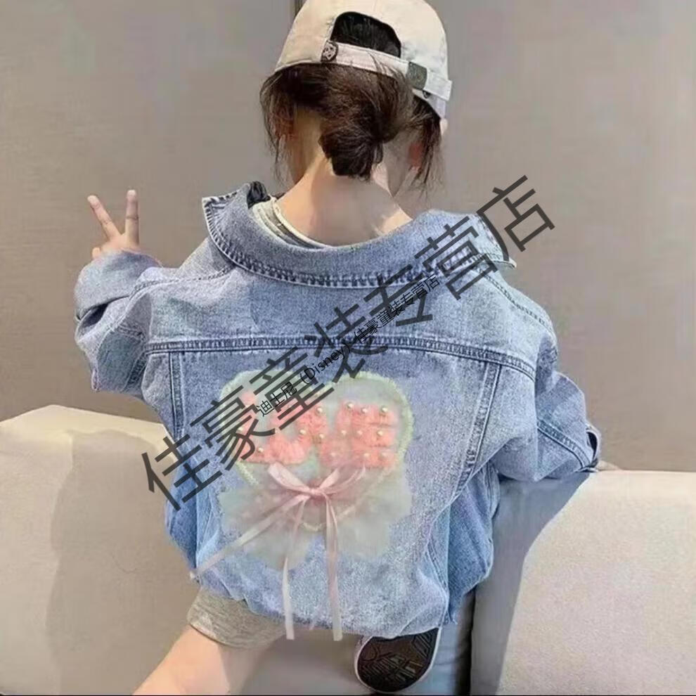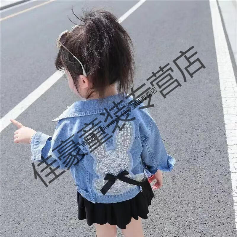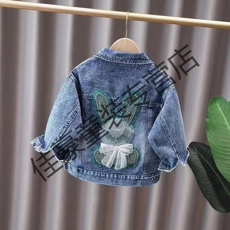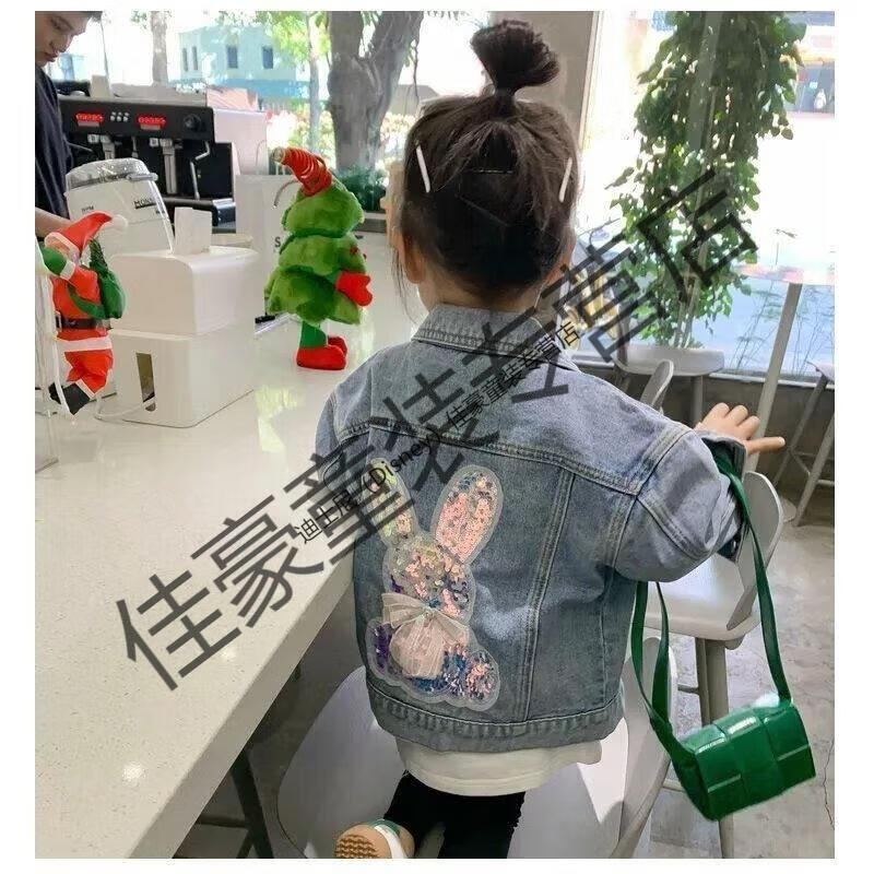 Disney (Disney) 26 years old style denim jacket spring and autumn style princess children versatile windproof Internet celebrity diamond-encrusted Korean style girl sequin rabbit rabbit single clothes 90 suitable for 80-90 height