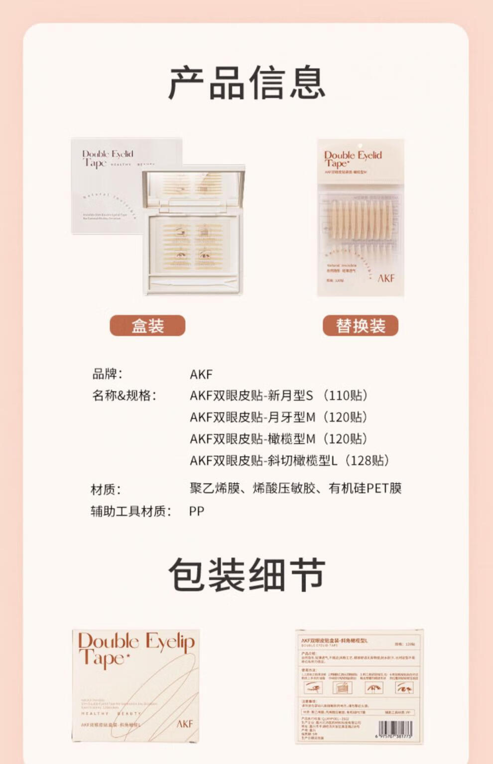 AKF double eyelid patch invisible natural lace double eyelid patch Female invisible double eyelid patch super invisible traceless natural 120 patches AKF replacement bag-bud tip type XS