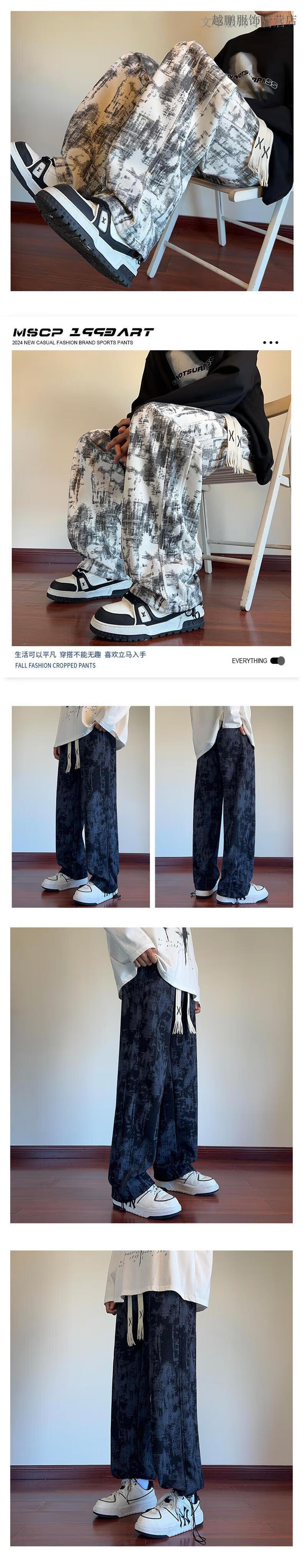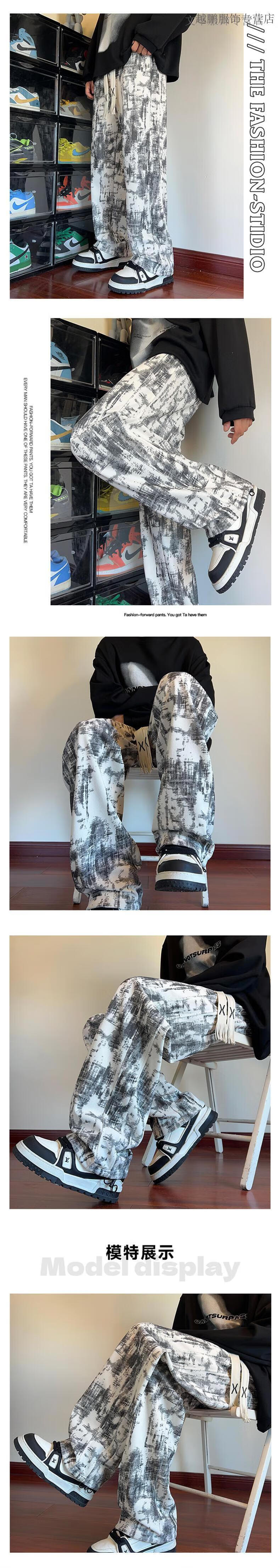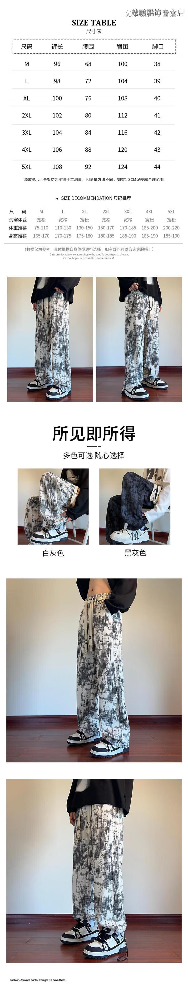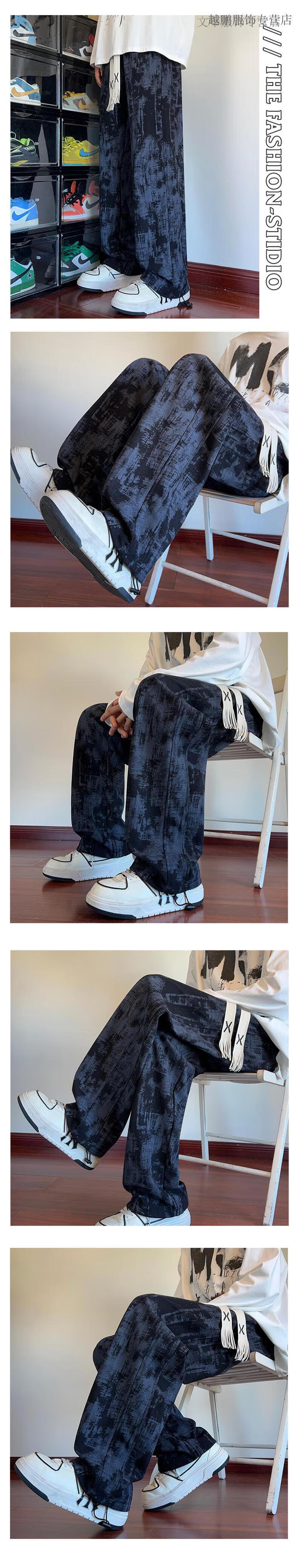 Rubink American tie-dyed casual pants for men in autumn and winter new drawstring wide-leg pants loose plus velvet straight sports pants black XL (recommended 125-135 Jin Jin equals 0.5 kg)