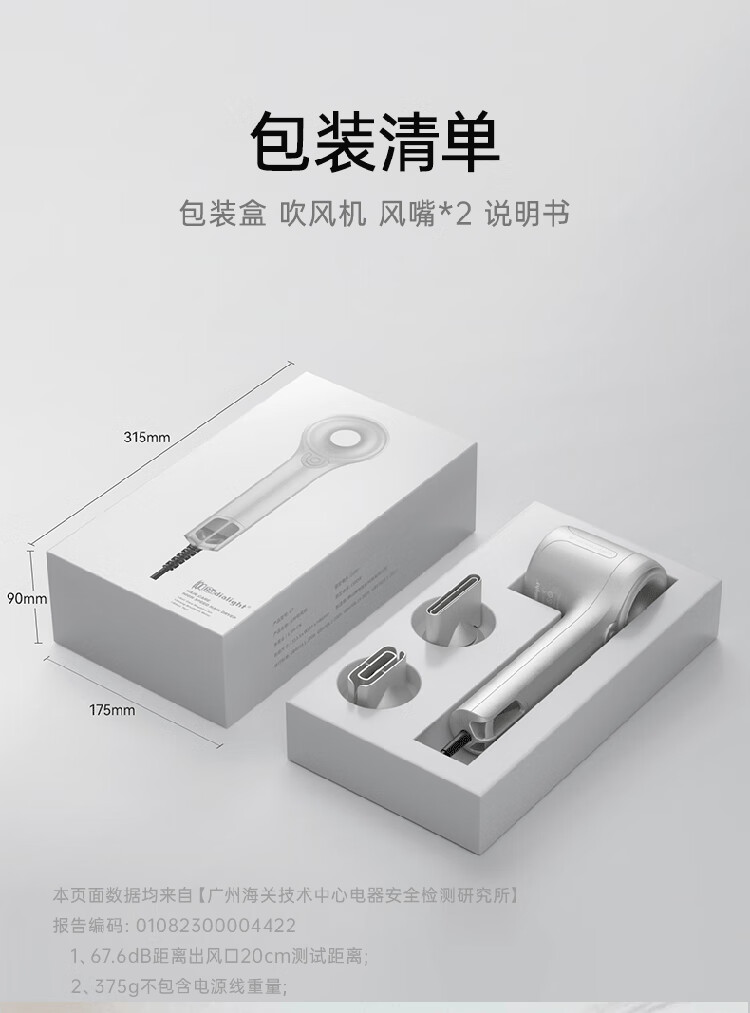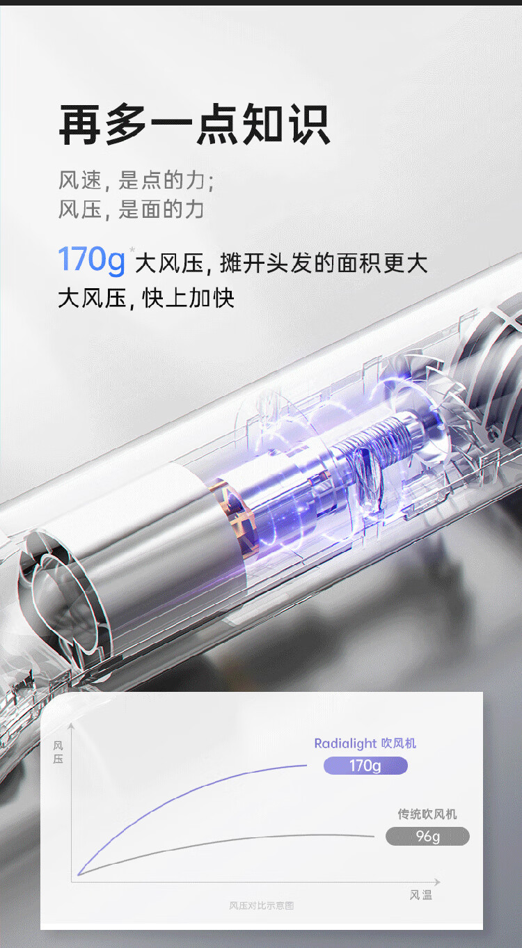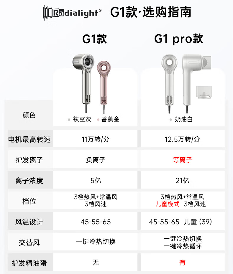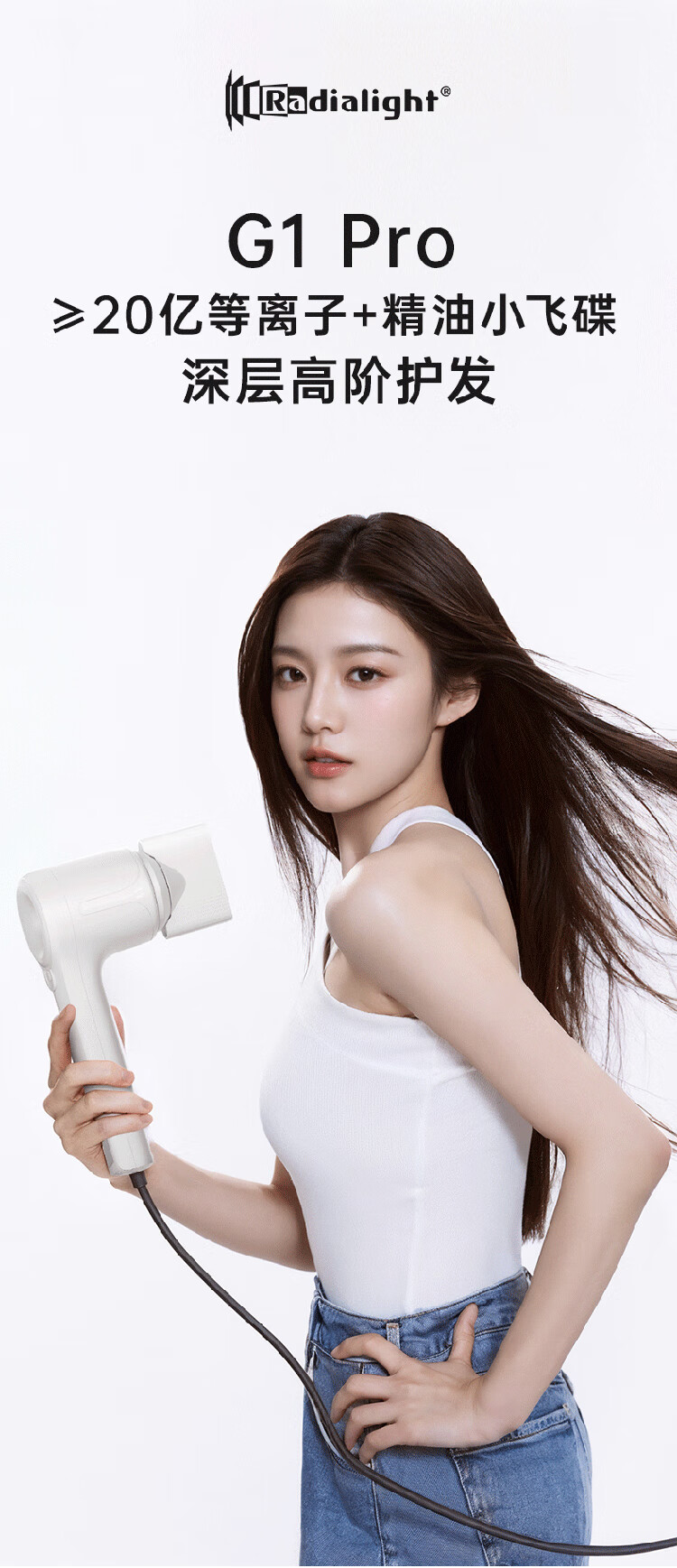 Radialight hair dryer household hair care negative ion hairstylist quick-drying bladeless hair dryer intelligent temperature control smooth high-speed hair dryer G1 pure white (PRO) 2 billion plasma + precise temperature control