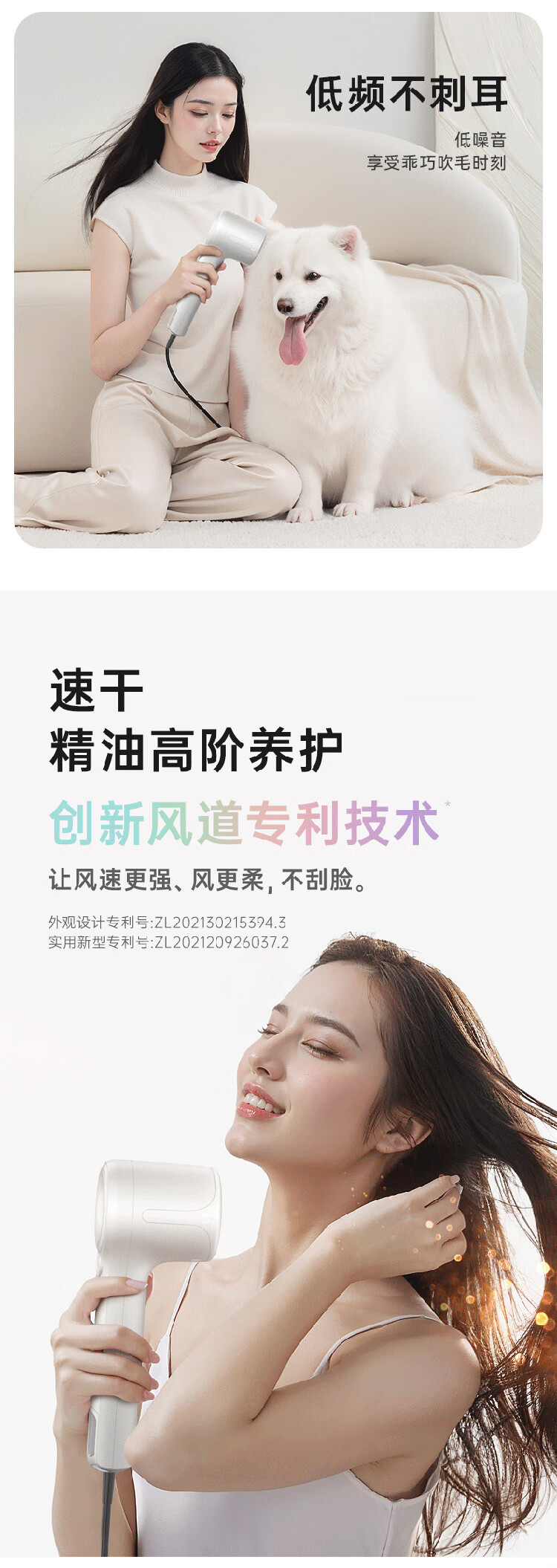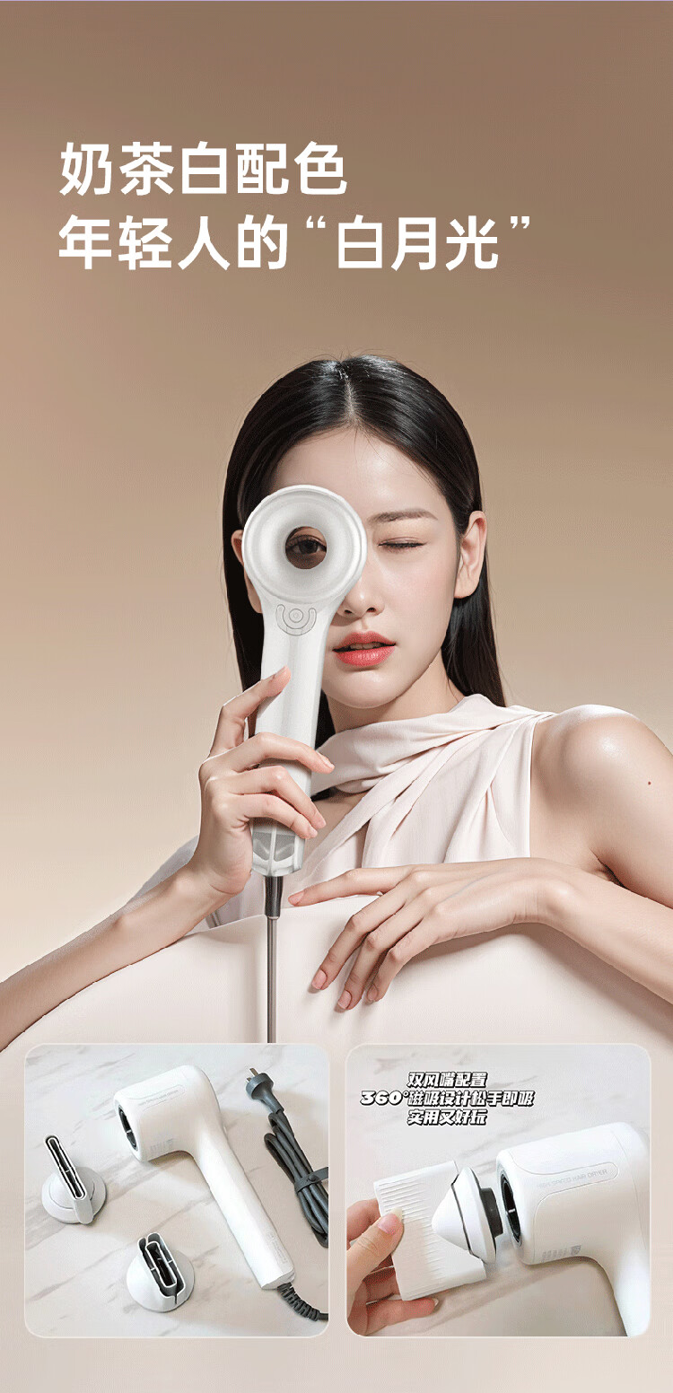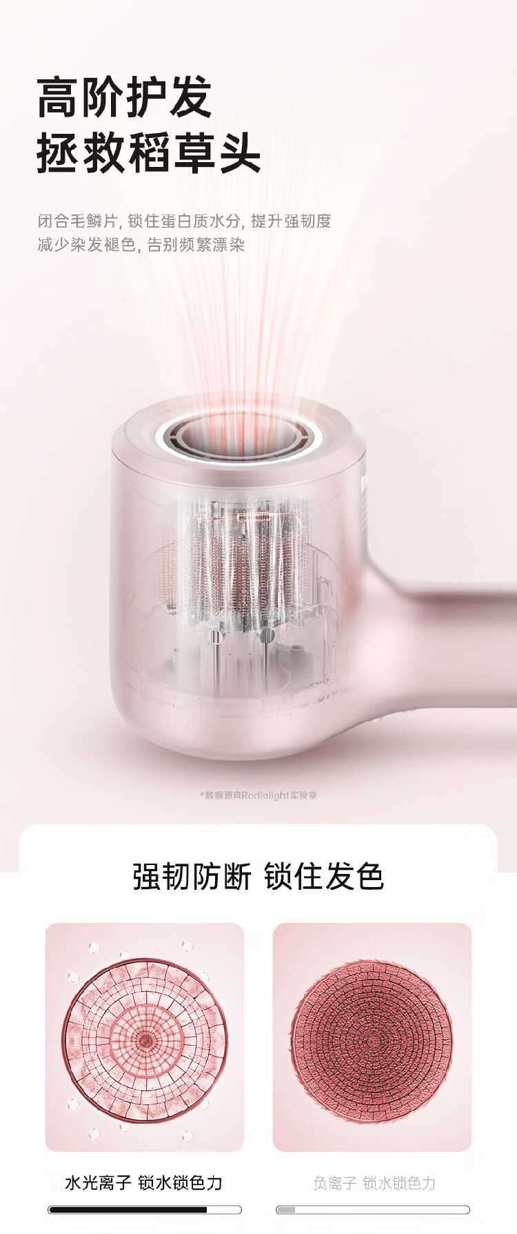 Radialight hair dryer household hair care negative ion hairstylist quick-drying bladeless hair dryer intelligent temperature control smooth high-speed hair dryer G1 pure white (PRO) 2 billion plasma + precise temperature control
