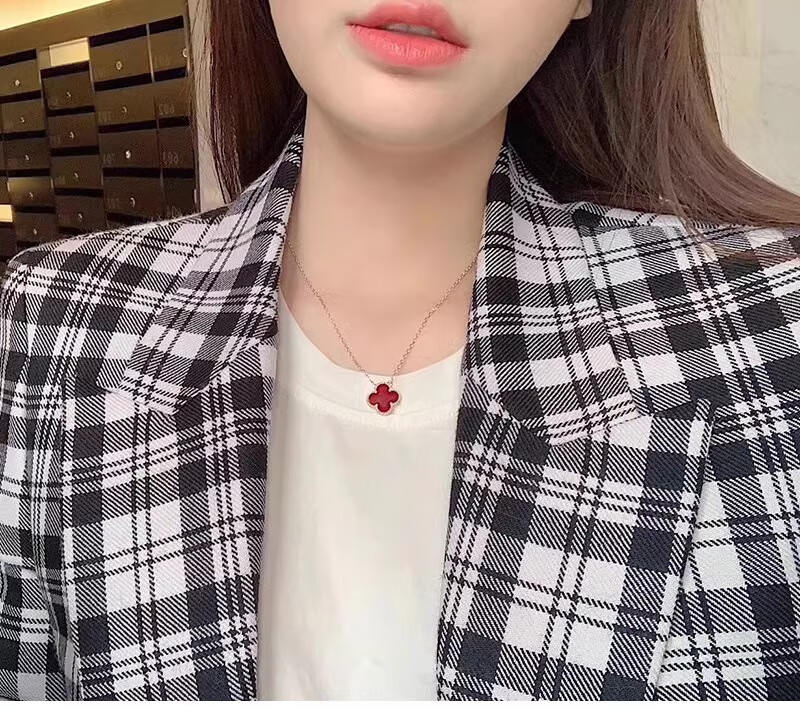 Fat Donglai same style 18K gold four-leaf clover pendant necklace for women AU750 rose gold clavicle chain red gold Valentine's Day yellow gold red agate necklace with + certificate