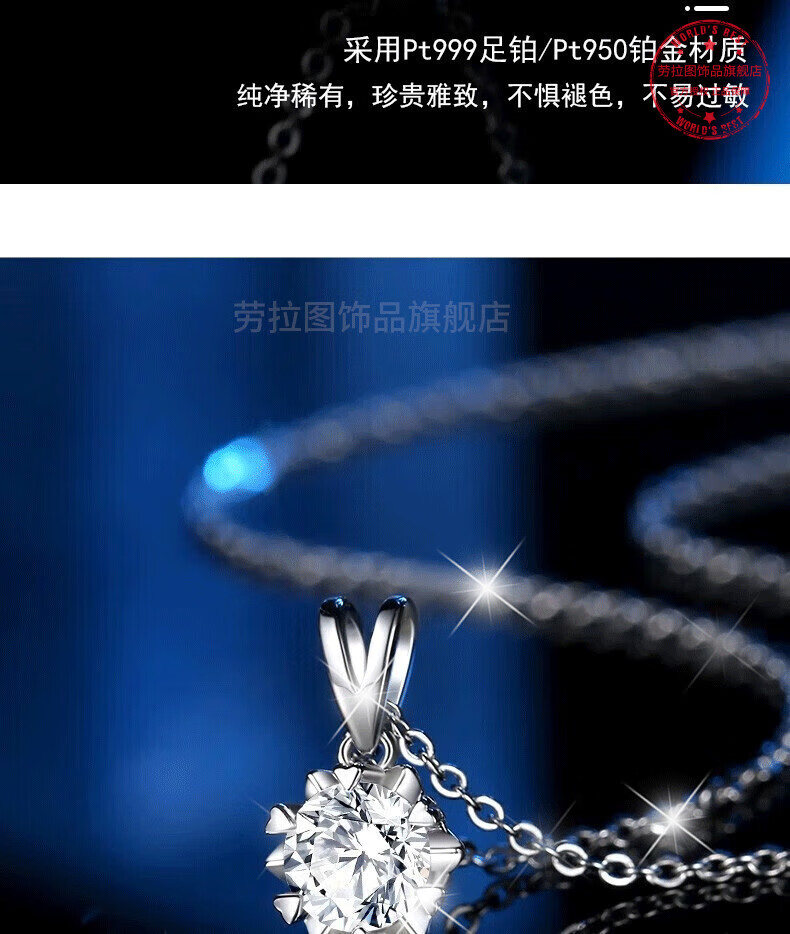 LAOLATU 999 platinum necklace for women PT950 platinum light luxury niche jewelry Chinese Valentine's Day confession birthday gift for girlfriend and wife 999 platinum necklace + pt950 moissanite pendant