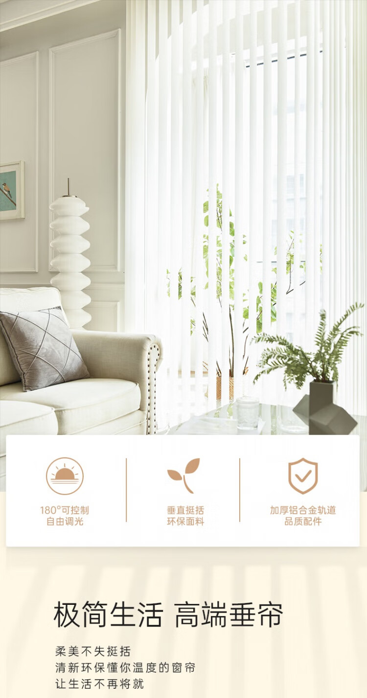 Yuntian Vertical Venetian Blinds Vertical Blinds Dream Curtains Balcony Office Living Room Partition Curtain Electric Smart Straight White Blackout 65%