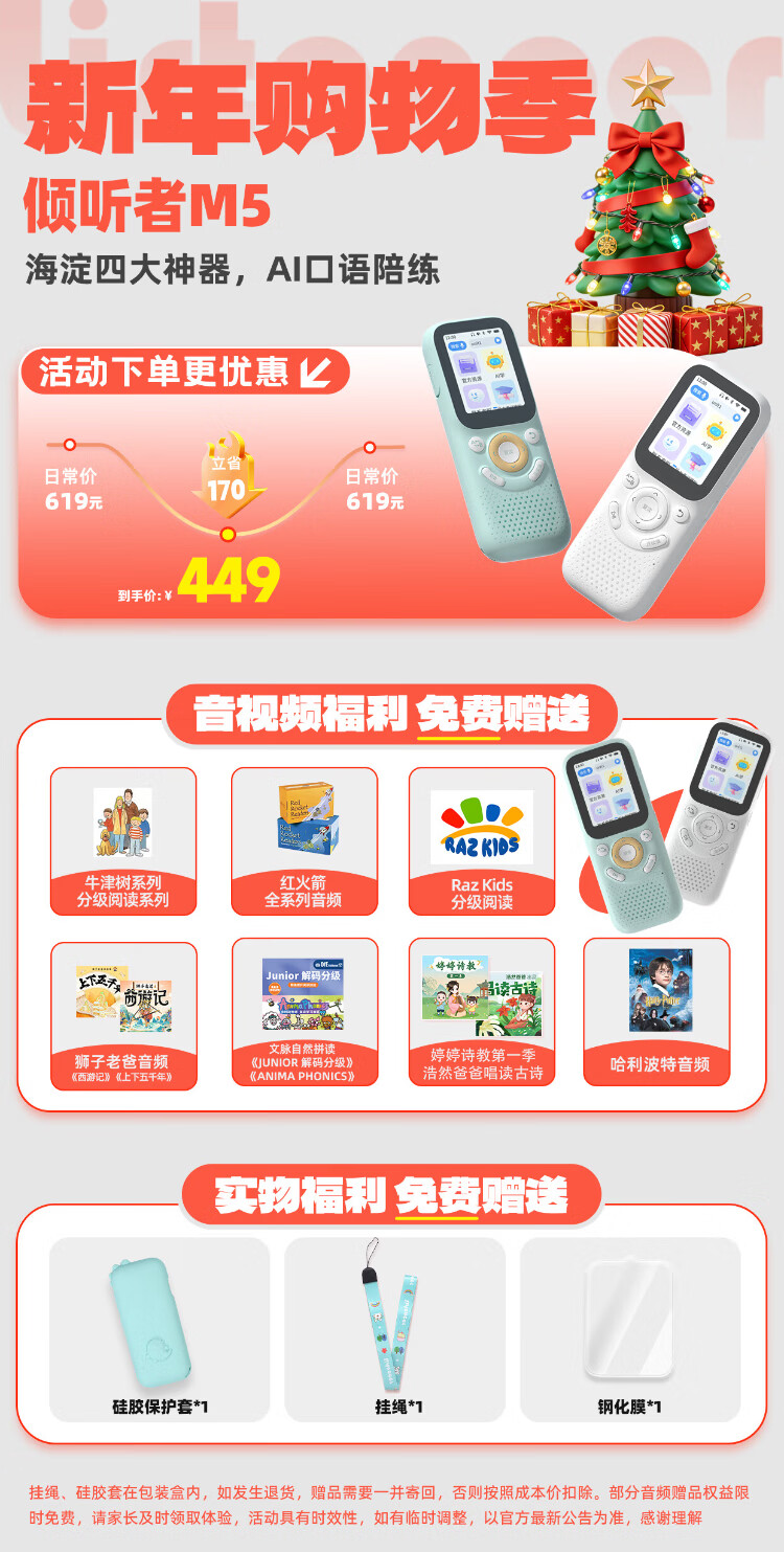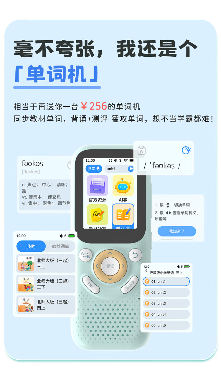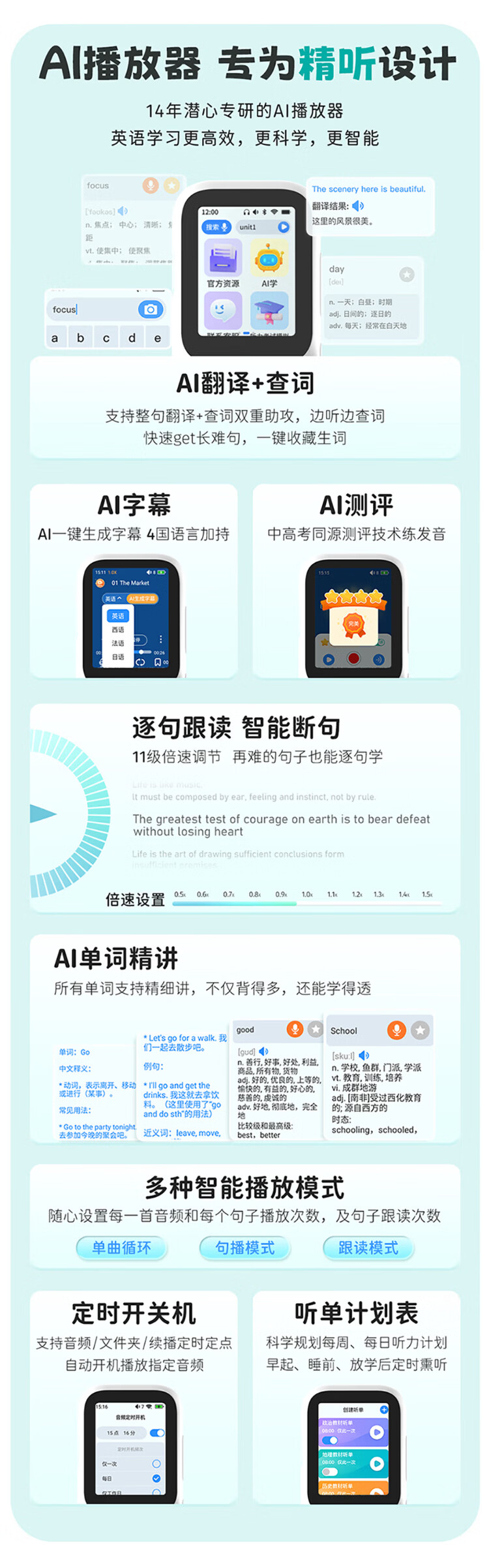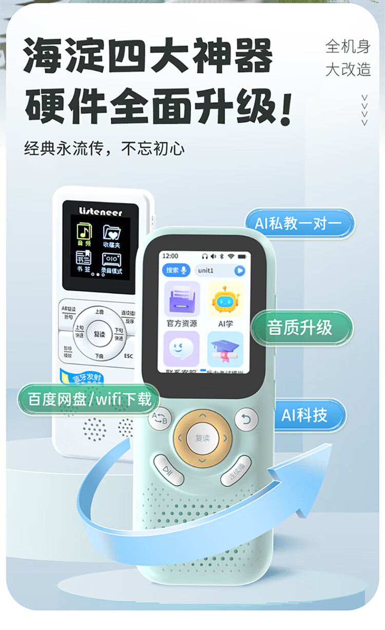Listeneer M5 English Listening Treasure New Curriculum Standard Word Machine M2S upgraded repeater machine AI intelligent listening learning machine improves memorization of words in the high school entrance examination and college entrance examination M5 Tiffany Blue 64G