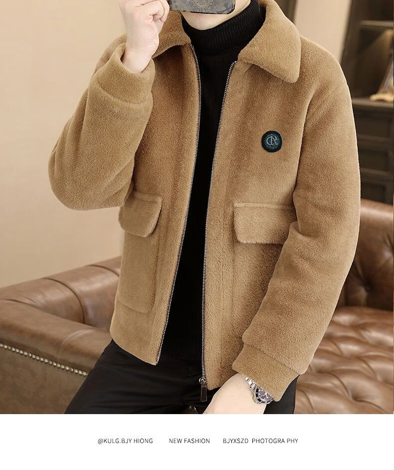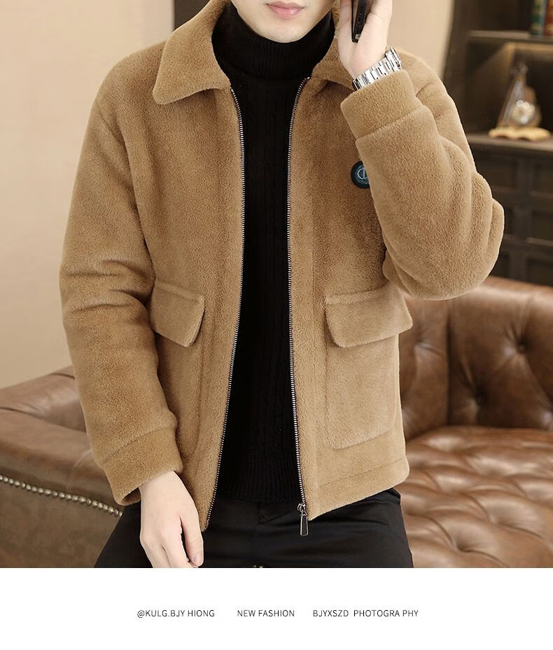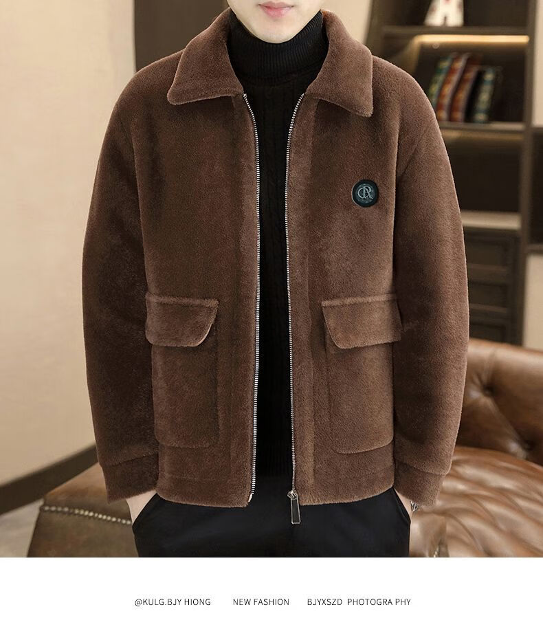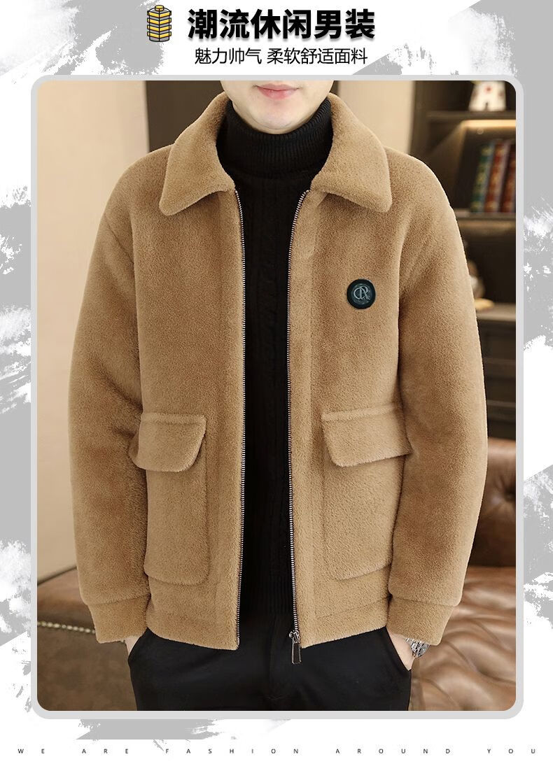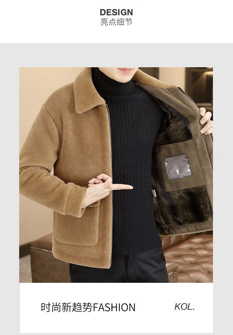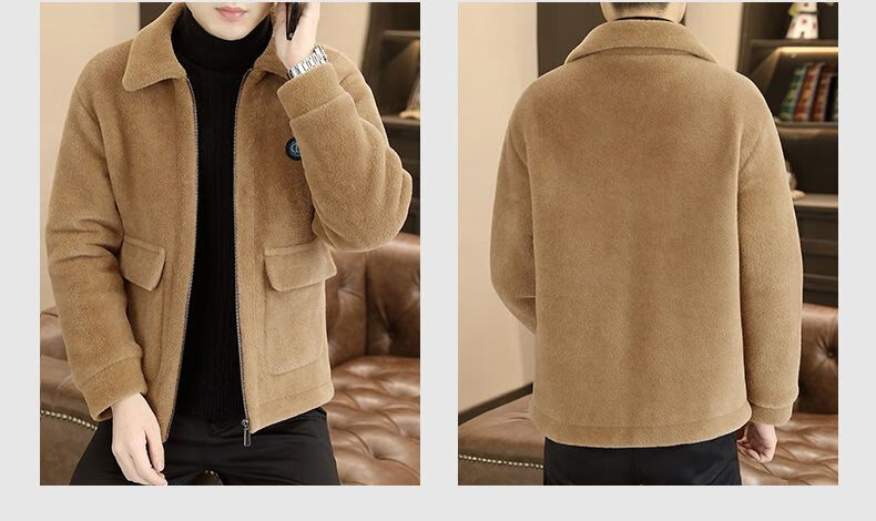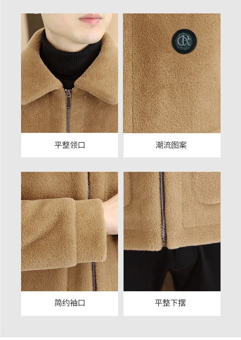 Pierre Cardin 2024 autumn and winter new high-end woolen jacket men's loose thickened warm woolen jacket men's khaki XL