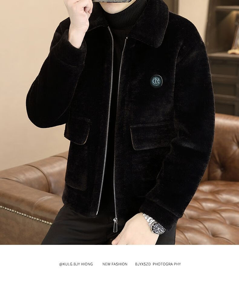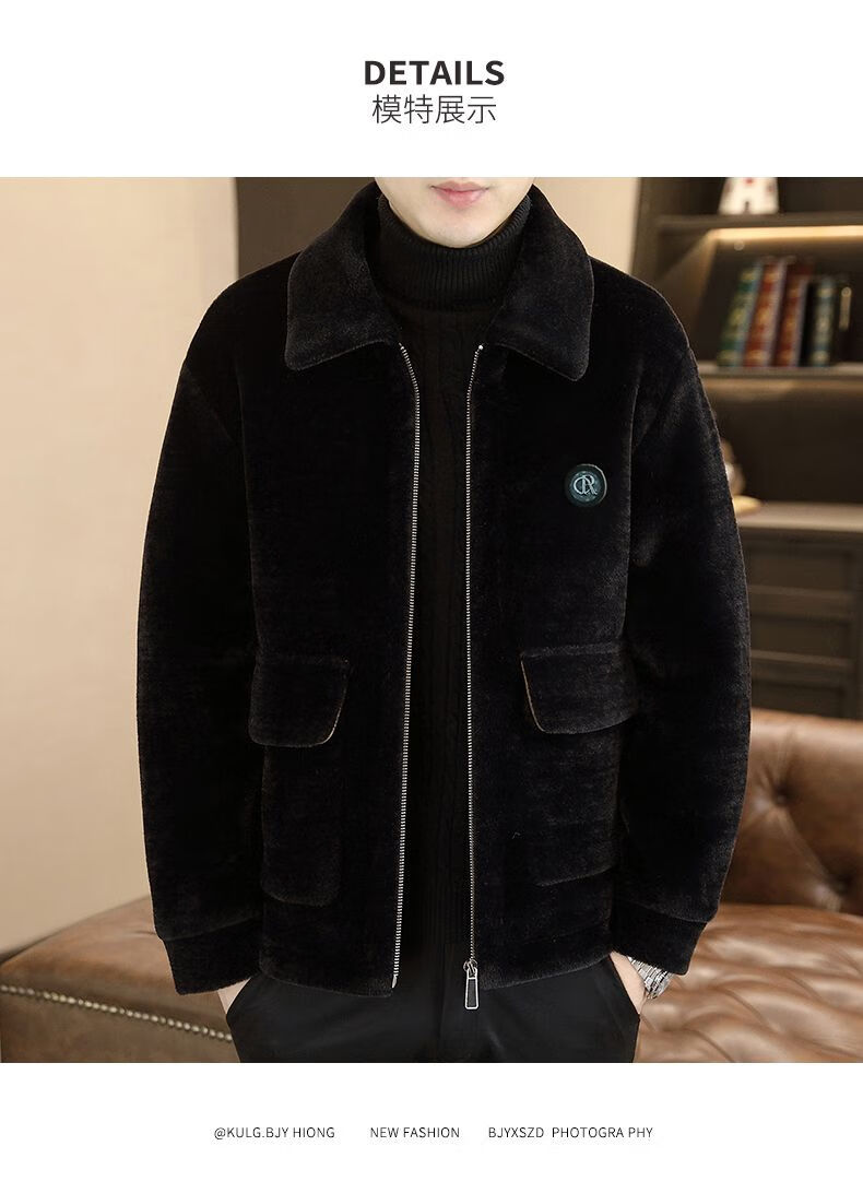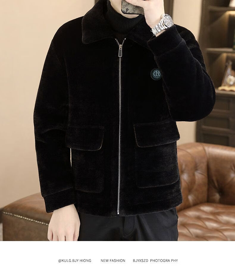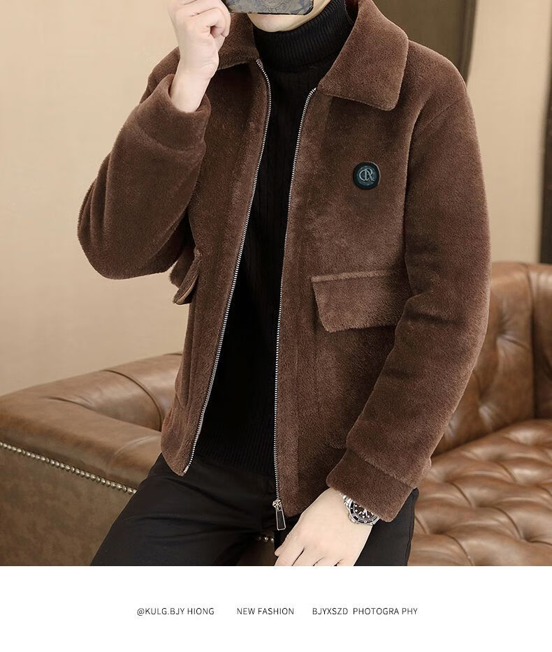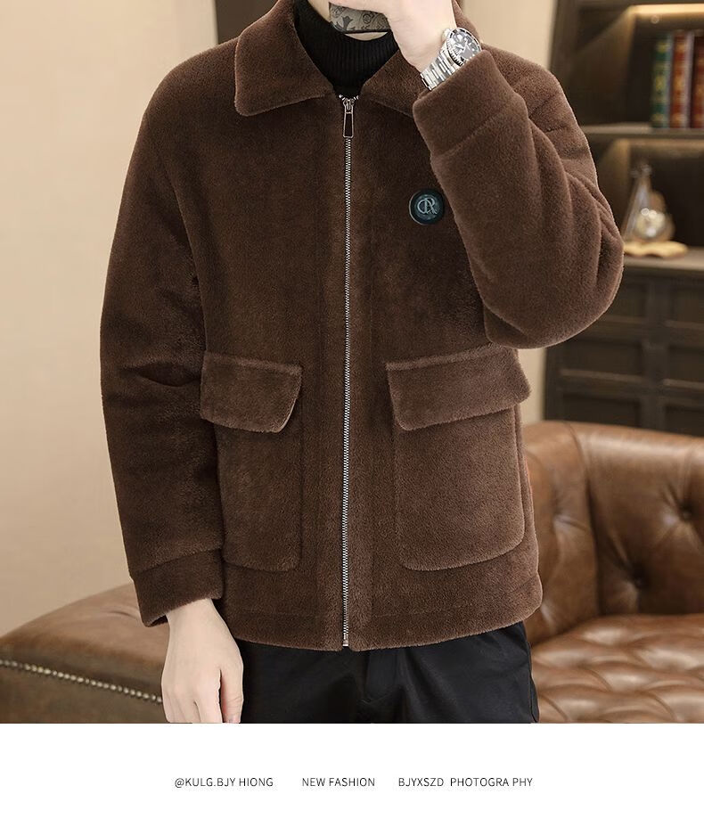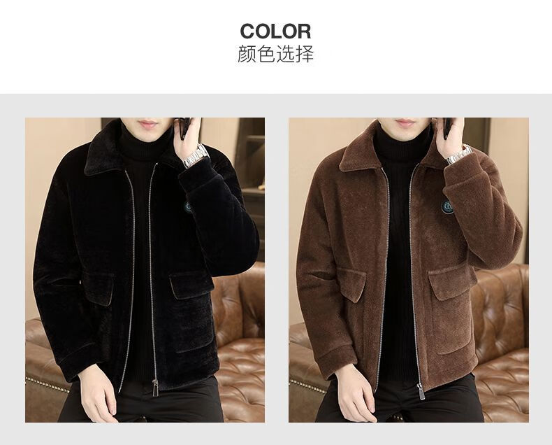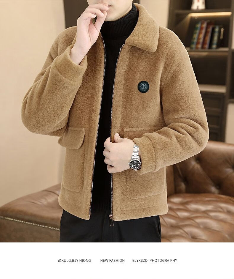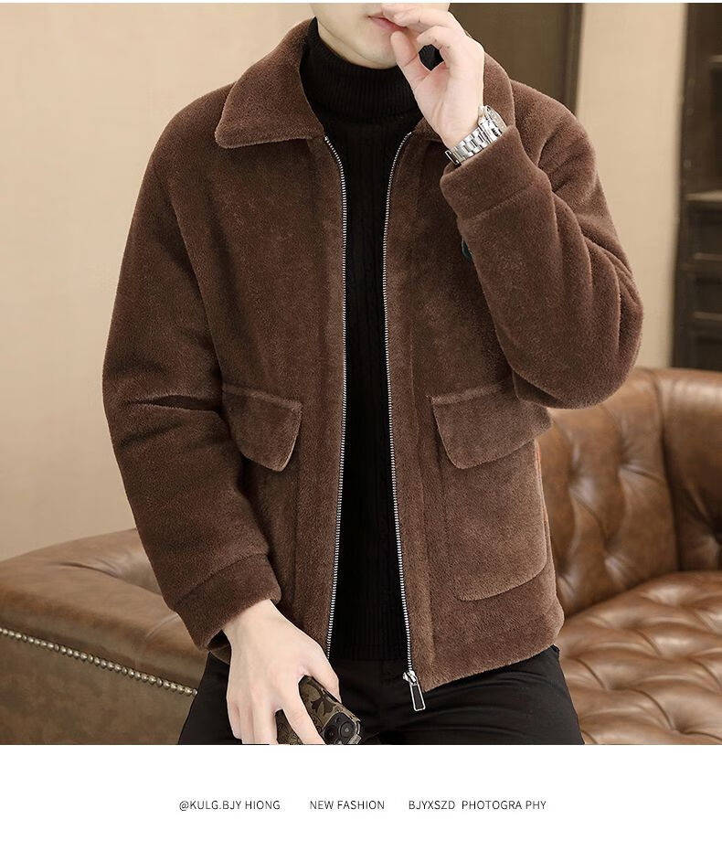 Pierre Cardin 2024 autumn and winter new high-end woolen jacket men's loose thickened warm woolen jacket men's khaki XL