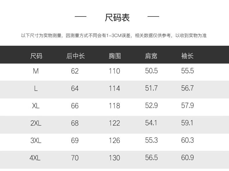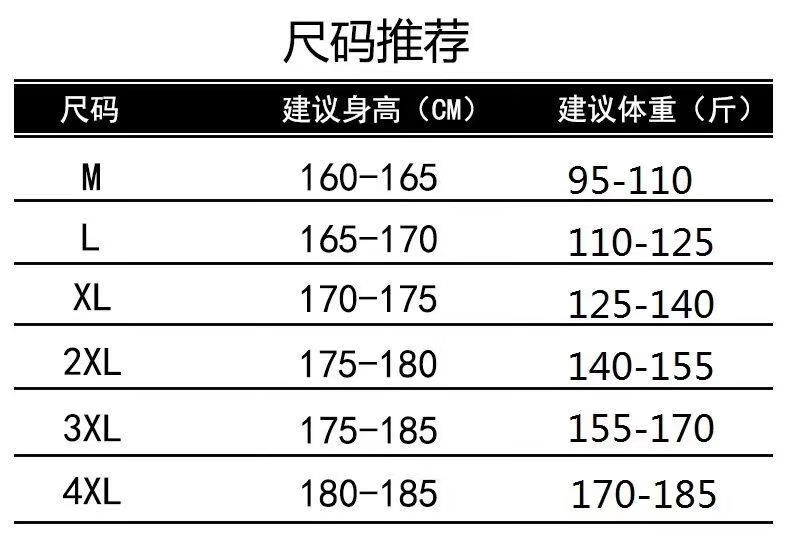 China (cm) 165 / 88-90 170 / 96-98 175 / 108-110 180 / 118-122 185 / 126-130