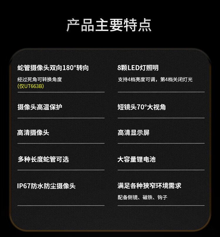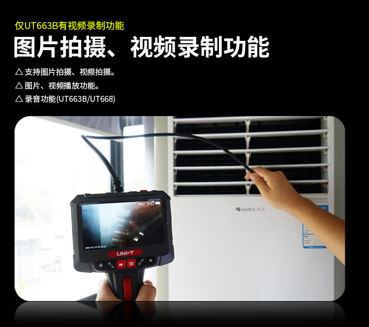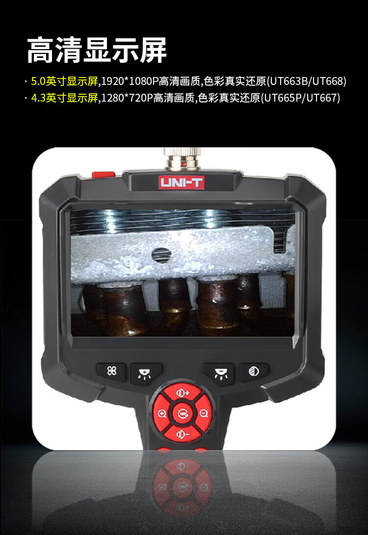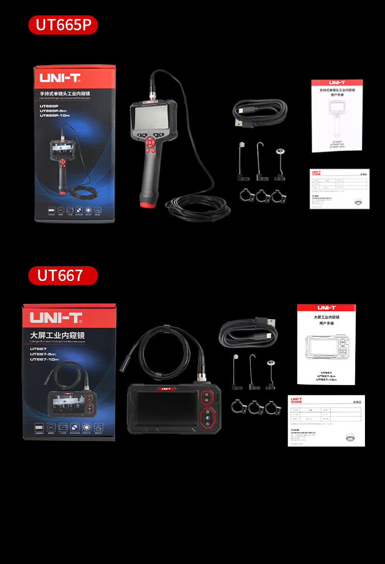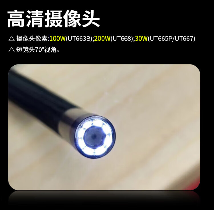 UNI-T endoscope industrial-grade high-definition endoscopic camera car sewer pipe repair waterproof visual probe detector UT665P (5m/30W pixels/single lens)
