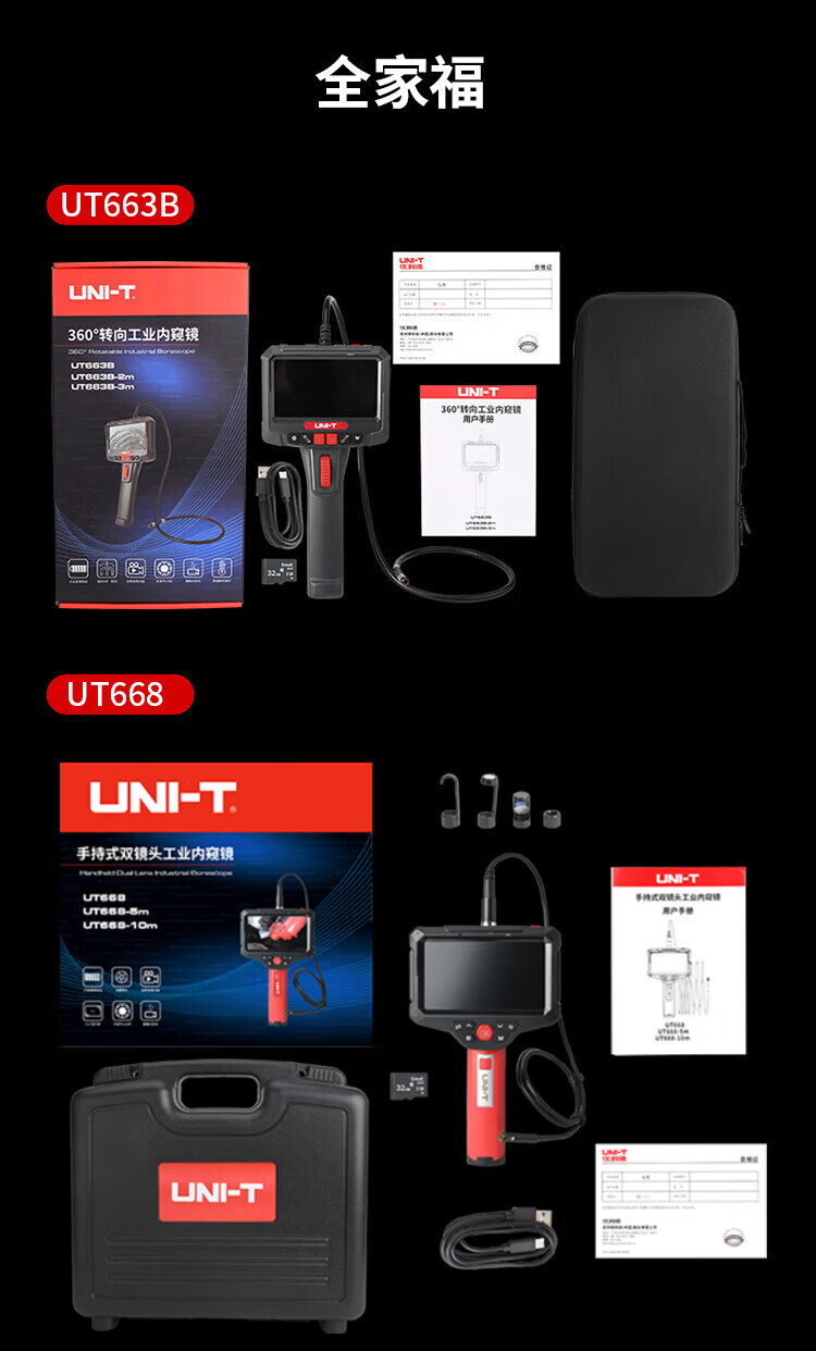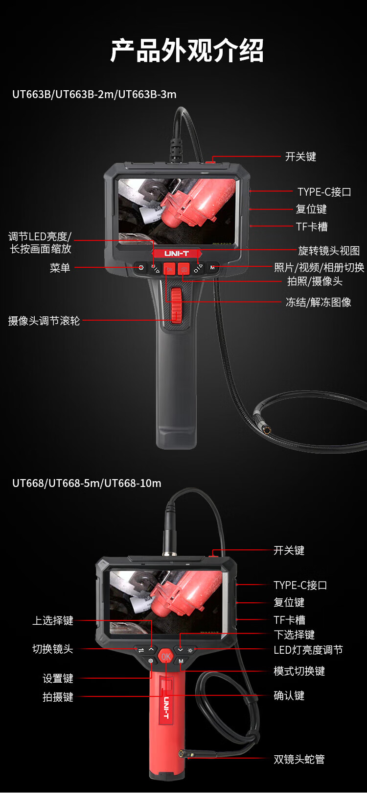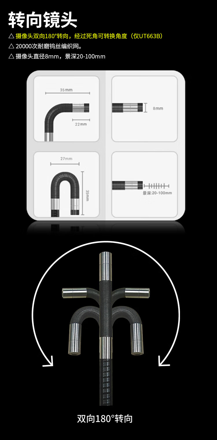 UNI-T endoscope industrial-grade high-definition endoscopic camera car sewer pipe repair waterproof visual probe detector UT665P (5m/30W pixels/single lens)