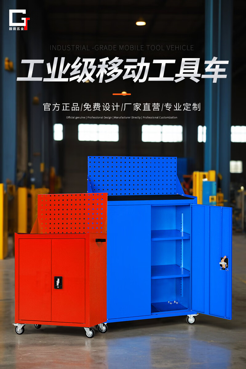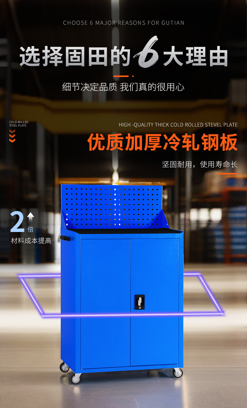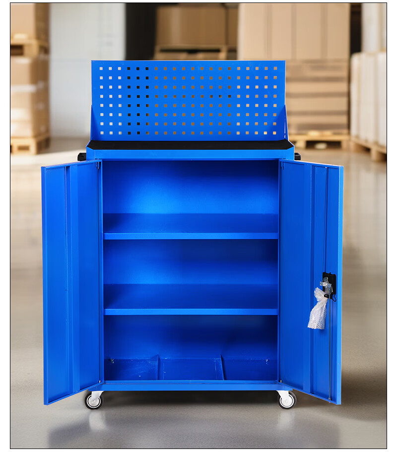 Gutian Tool Cart Hardware Tool Box Workshop Tool Cabinet Repair Trolley Parts Cabinet Side-by-side Door Lock Auto Repair Mobile Blue Standard Model with Casters