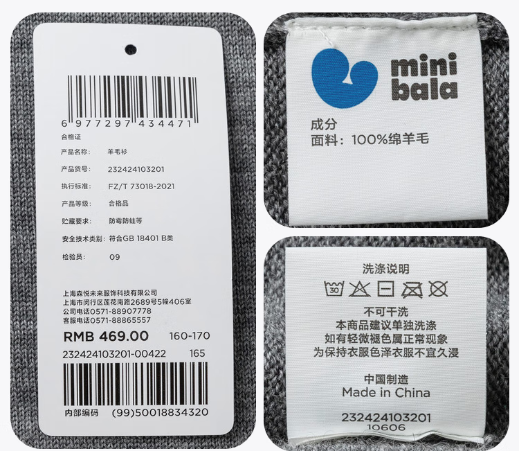 Mini Bala machine washable woolen sweater for boys and girls new winter parent-child warm woolen sweater white tone 00411-parents 160