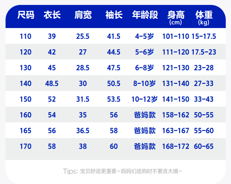 China (cm) 160-165/84-86 165-170 / 88-90 167-172 / 92-96 168-173 / 98-102 170-176 / 106-110