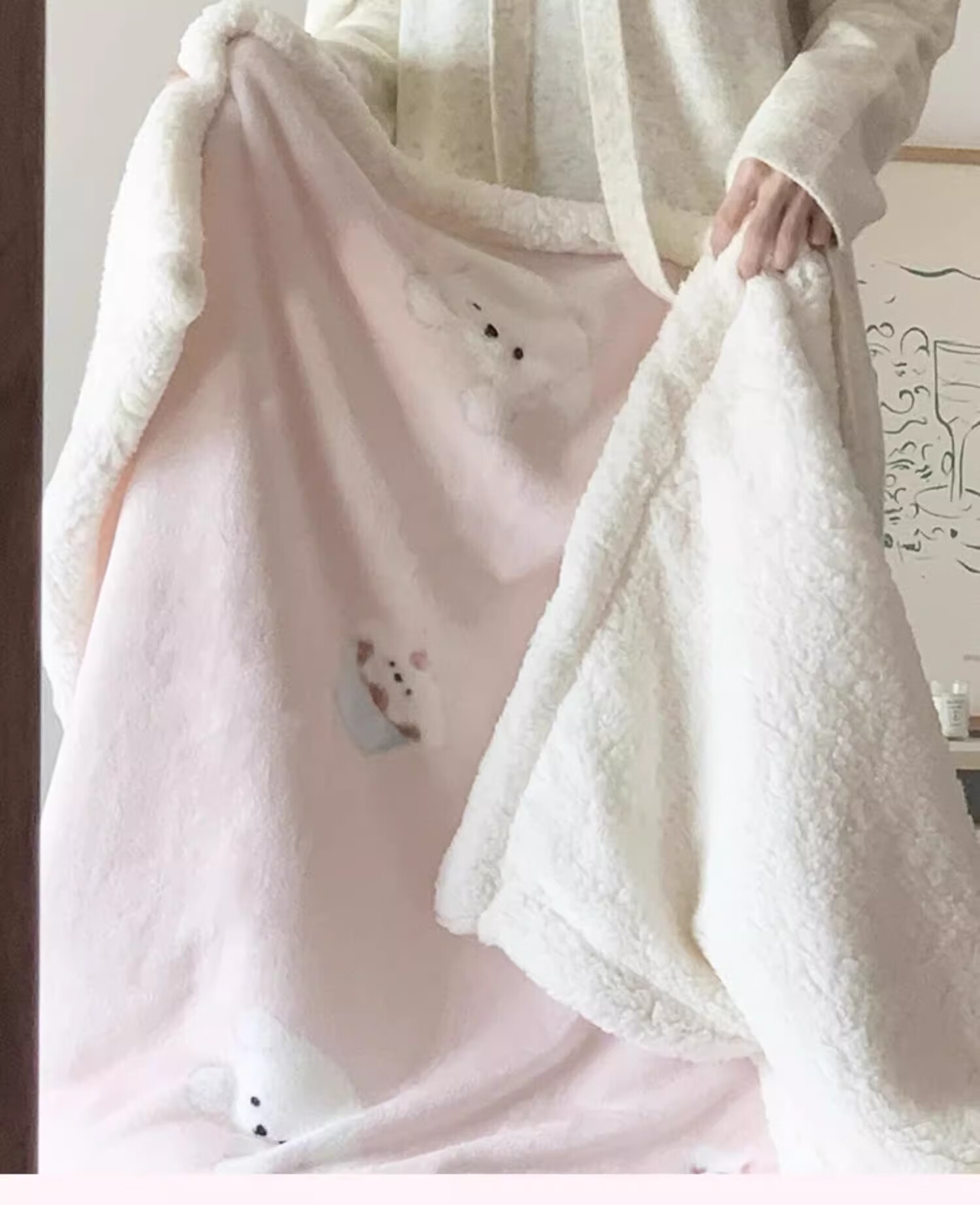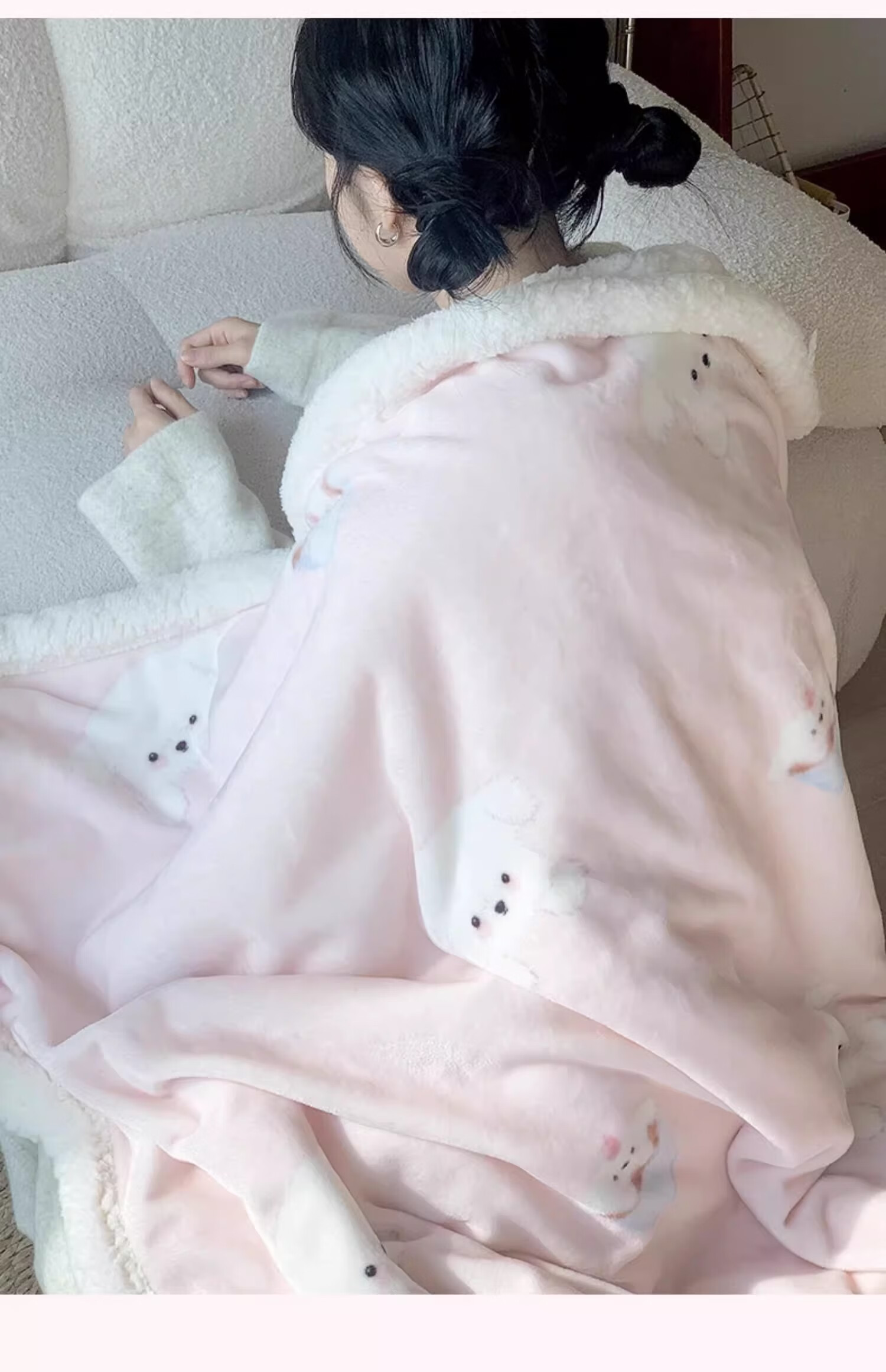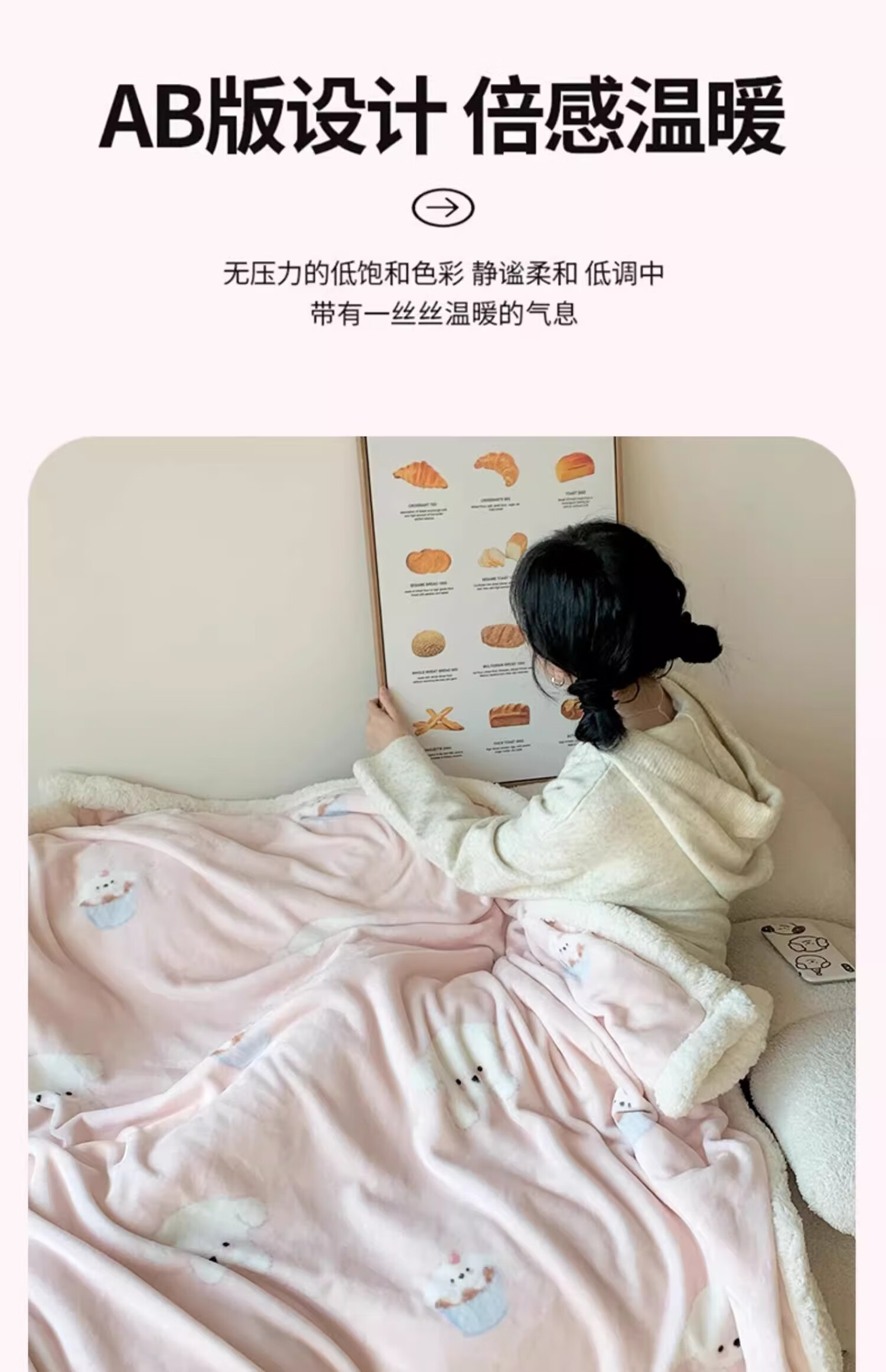 Langsha (langsha) ins girly lamb velvet blanket winter thickened velvet throw blanket office nap small blanket single bed blanket dessert puppy double-sided velvet skin-friendly and comfortable 70x100cm baby blanket