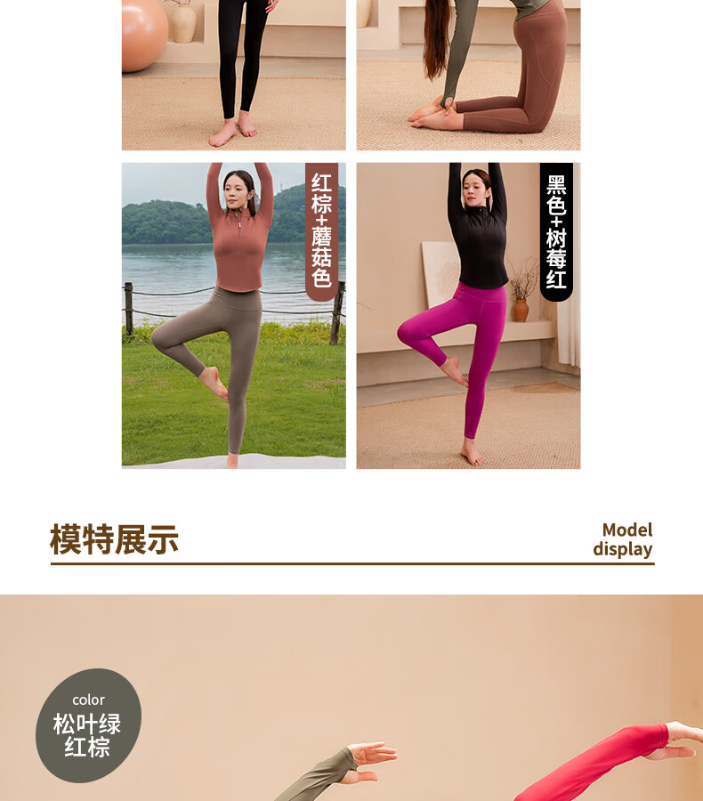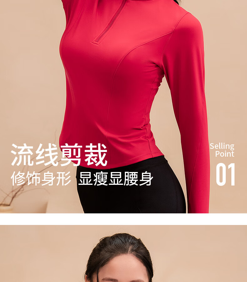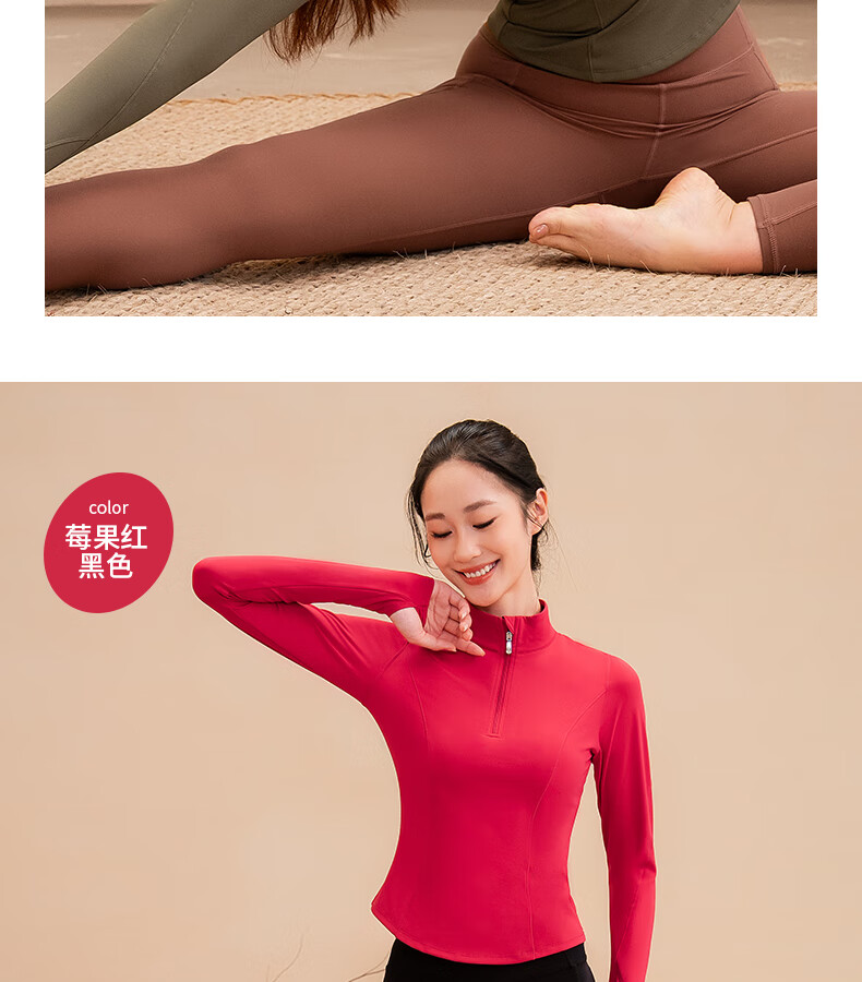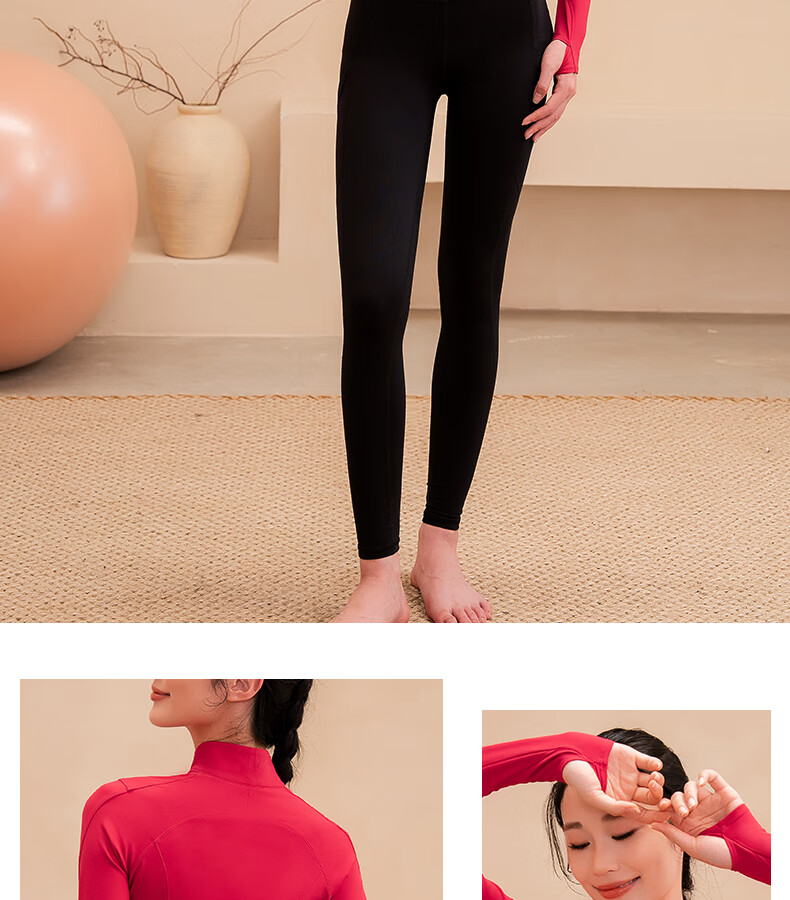 Meesu Yoga Wear Suit Top Women's Sports Half-Zip Warm Plus Velvet Slim Fitness Wear Hip-lifting Nine-Point Pants Pilates Berry Red + Black Suit M