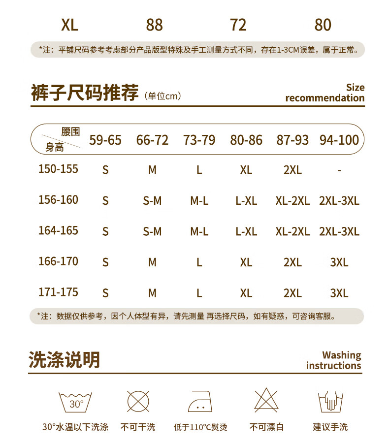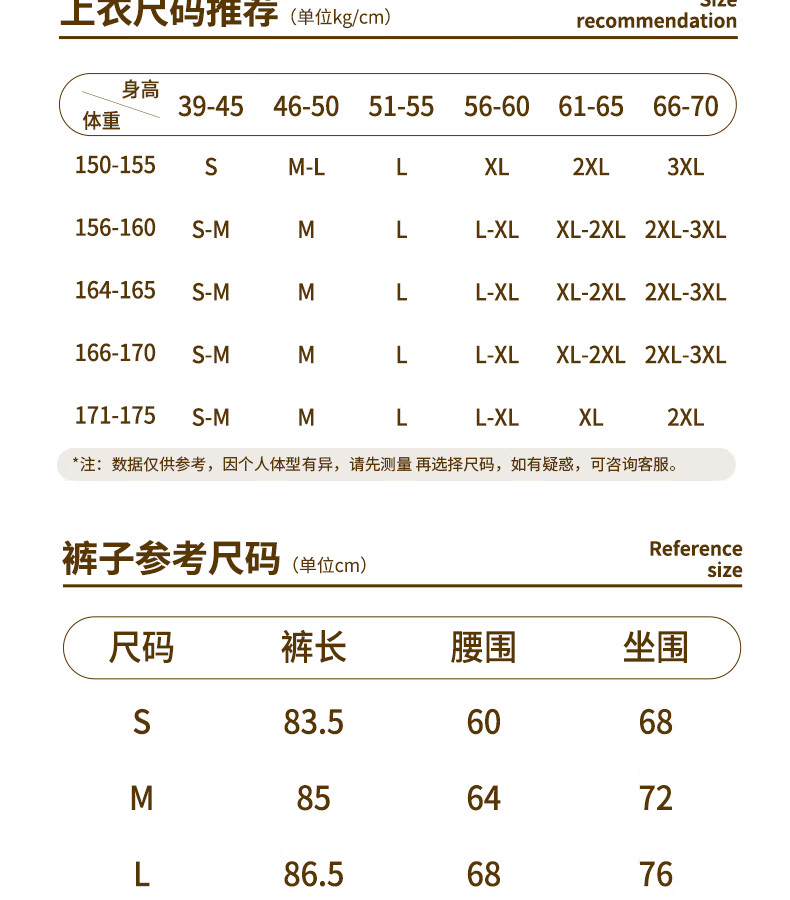 China (cm) 160-165/84-86 165-170 / 88-90 167-172 / 92-96 168-173 / 98-102 170-176 / 106-110
