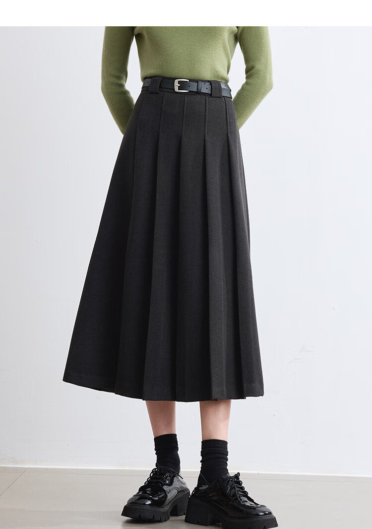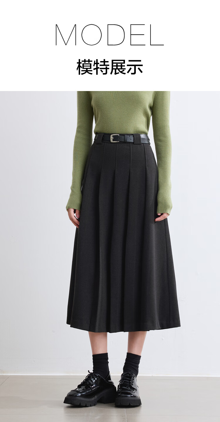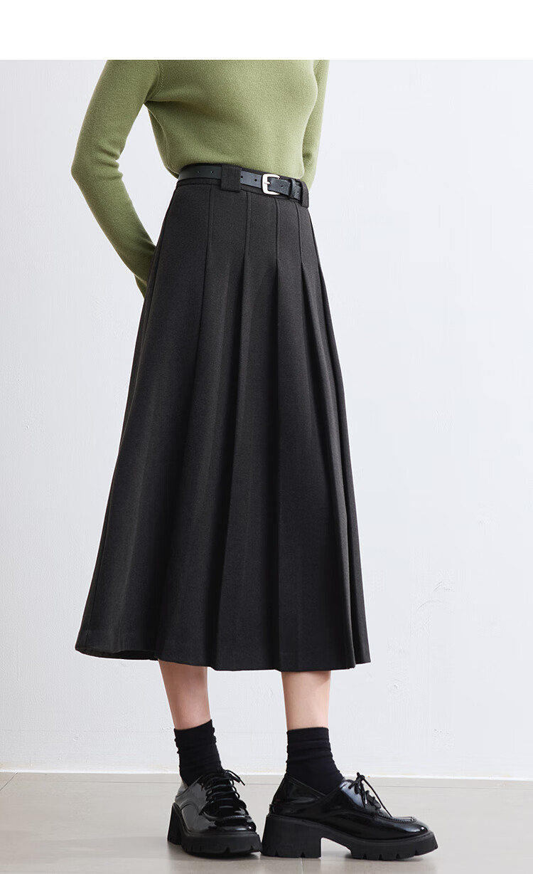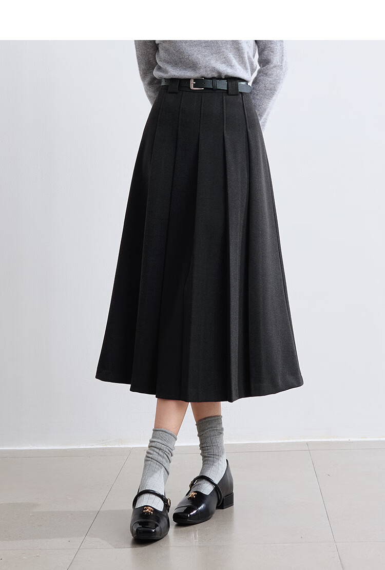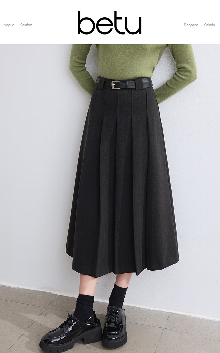 Betu women's winter new skirt accordion fold design with belt A-type skirt for women 2410T75 dark gray M