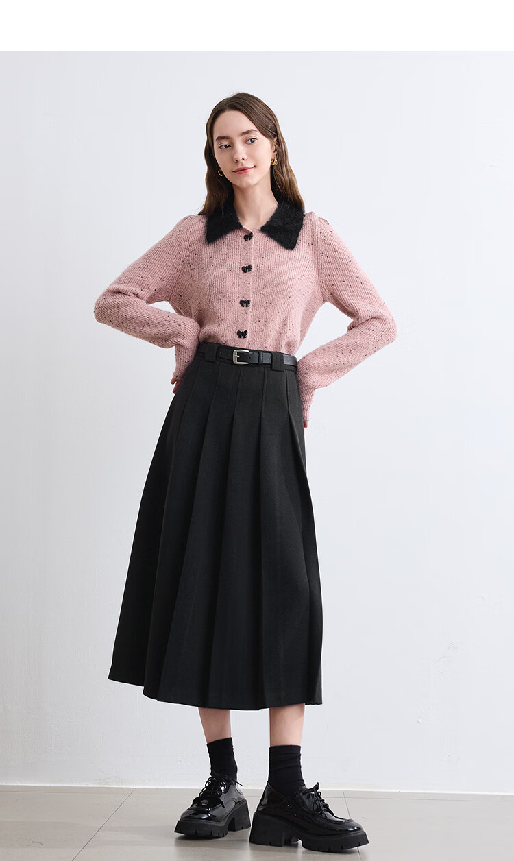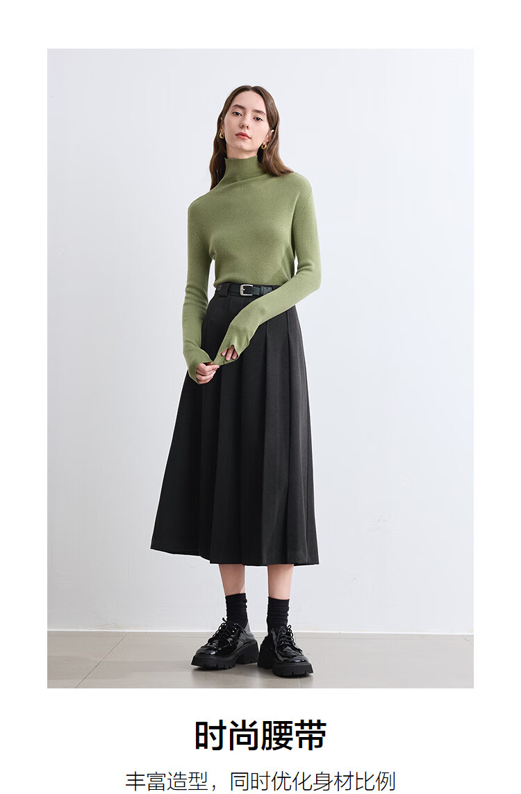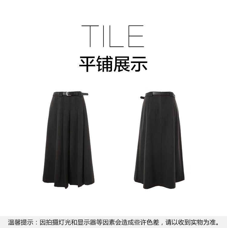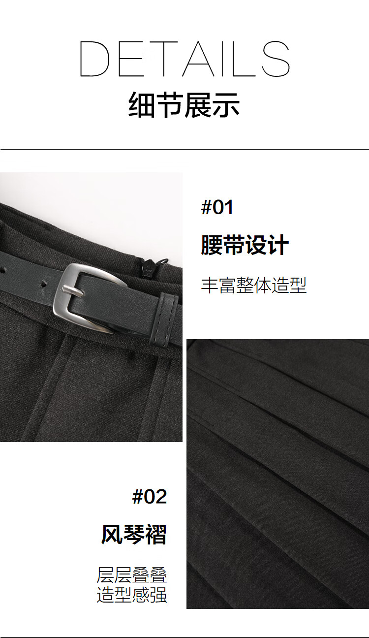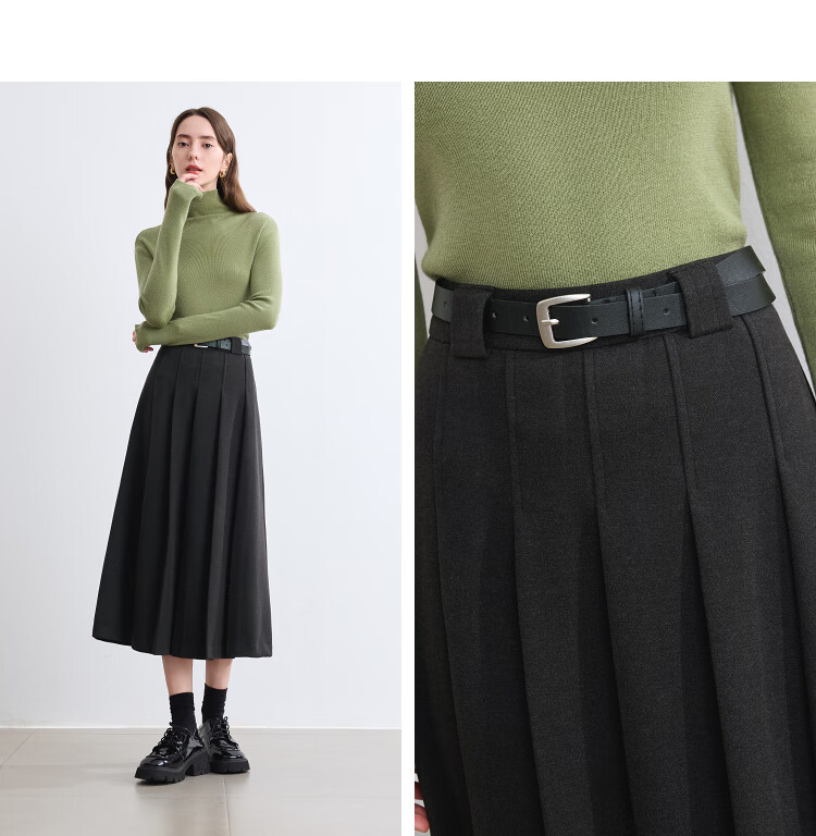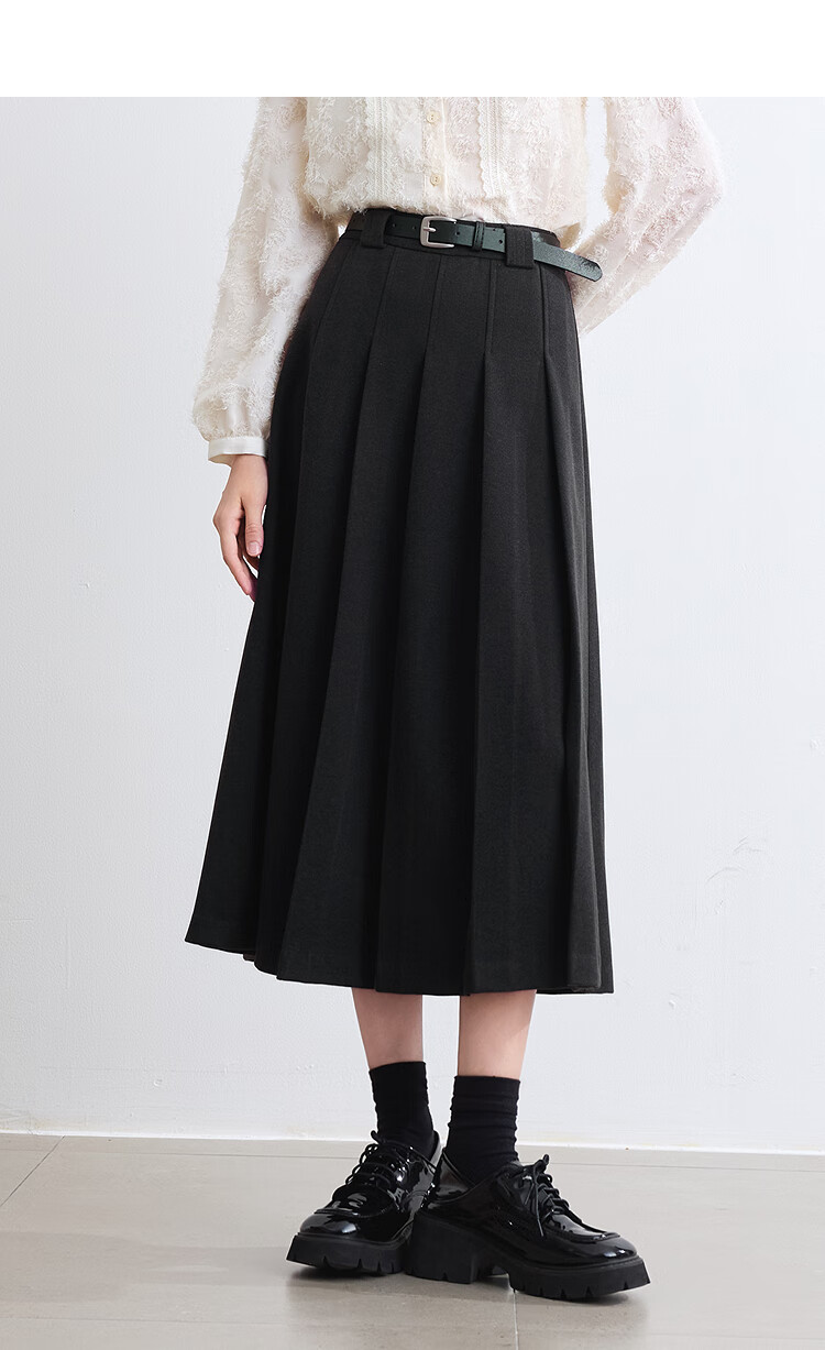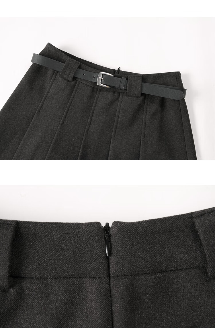 Betu women's winter new skirt accordion fold design with belt A-type skirt for women 2410T75 dark gray M
