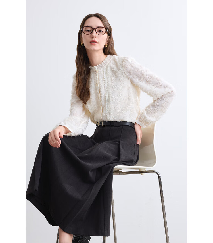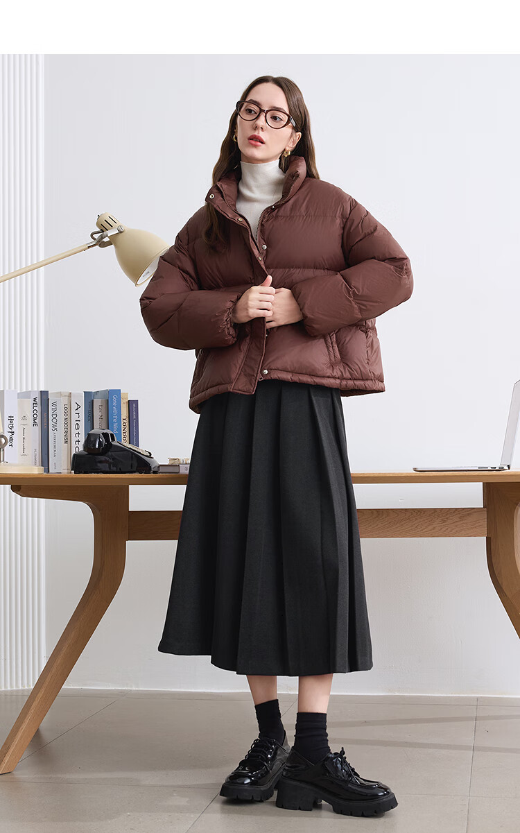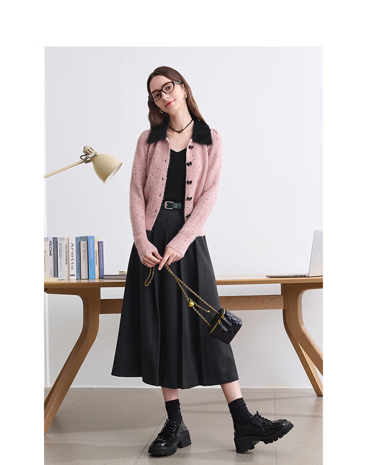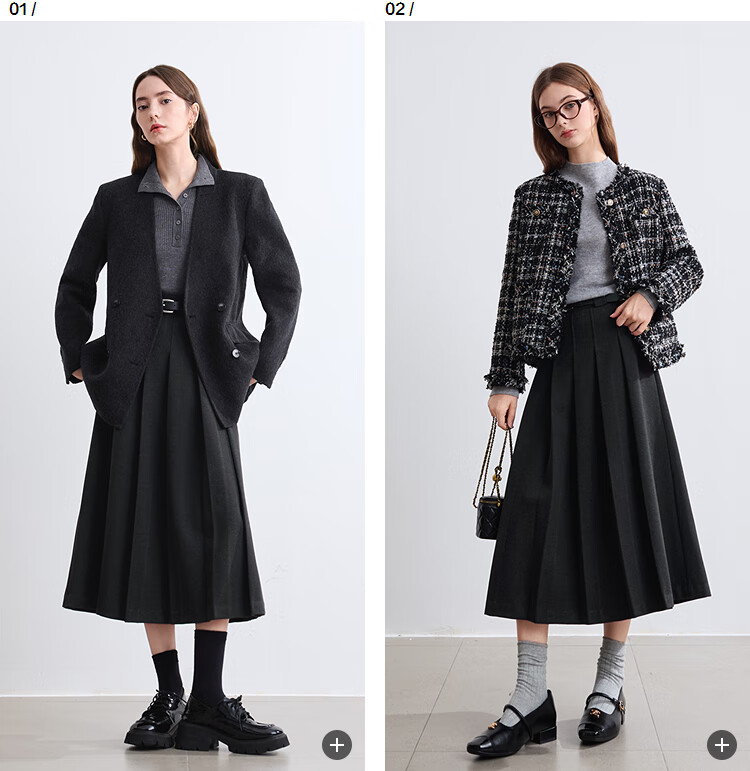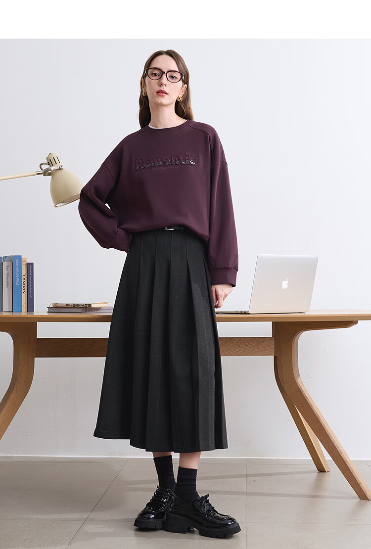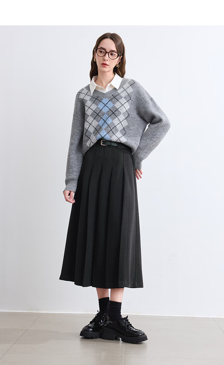 Betu women's winter new skirt accordion fold design with belt A-type skirt for women 2410T75 dark gray M