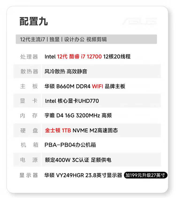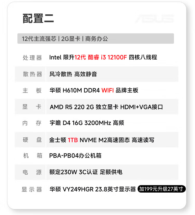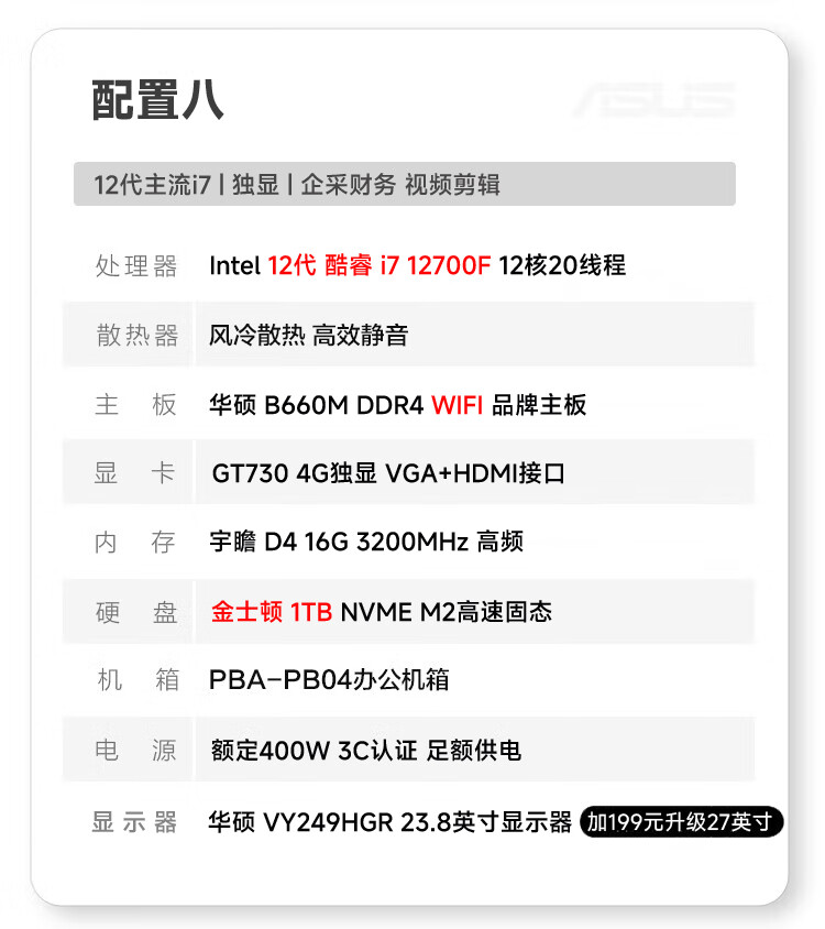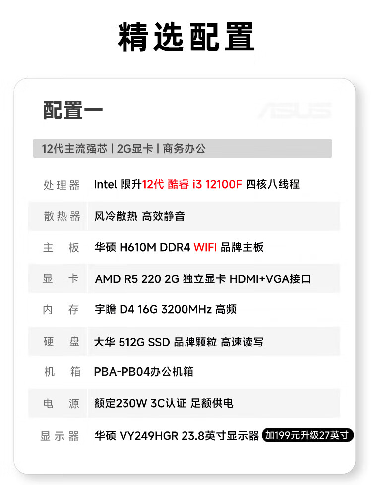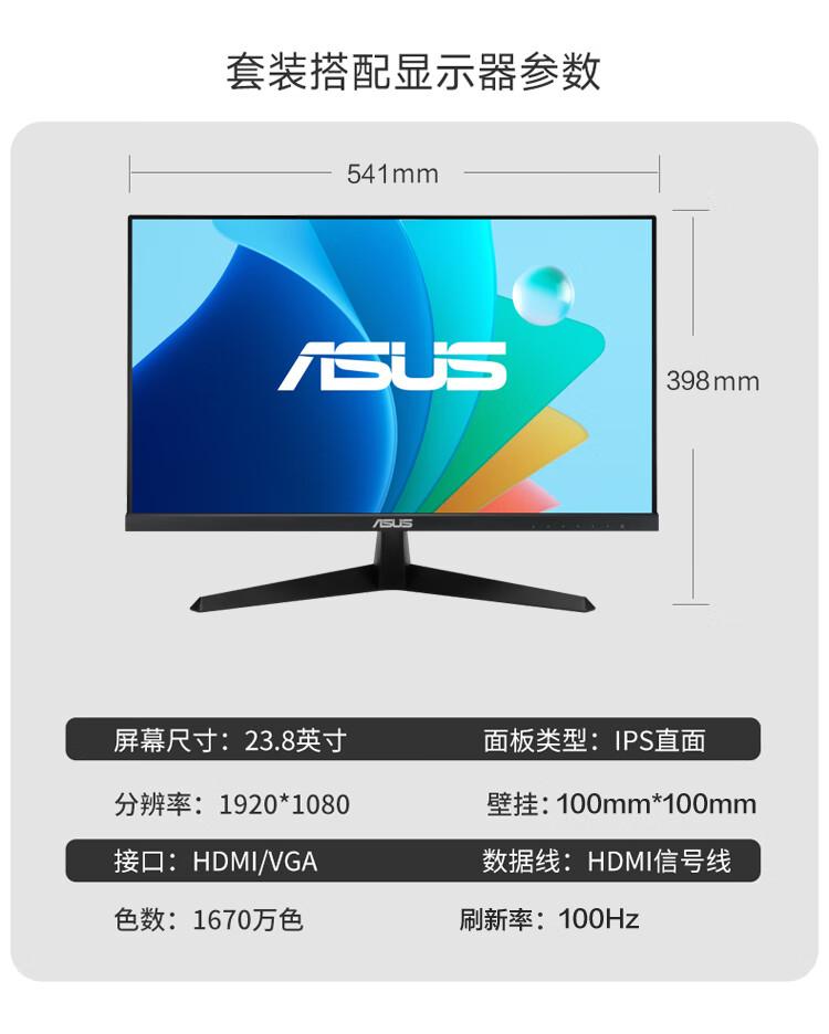 ASUS computer i7 12700/i5 13400/i5 14400 commercial office design stock trading entertainment cashier home DIY desktop computer host complete set configuration three i5 12400F | 512G | independent display host + ASUS 23.8-inch monitor