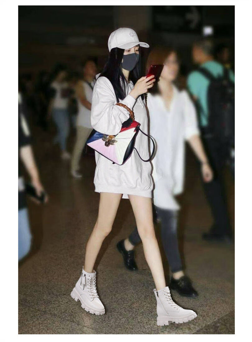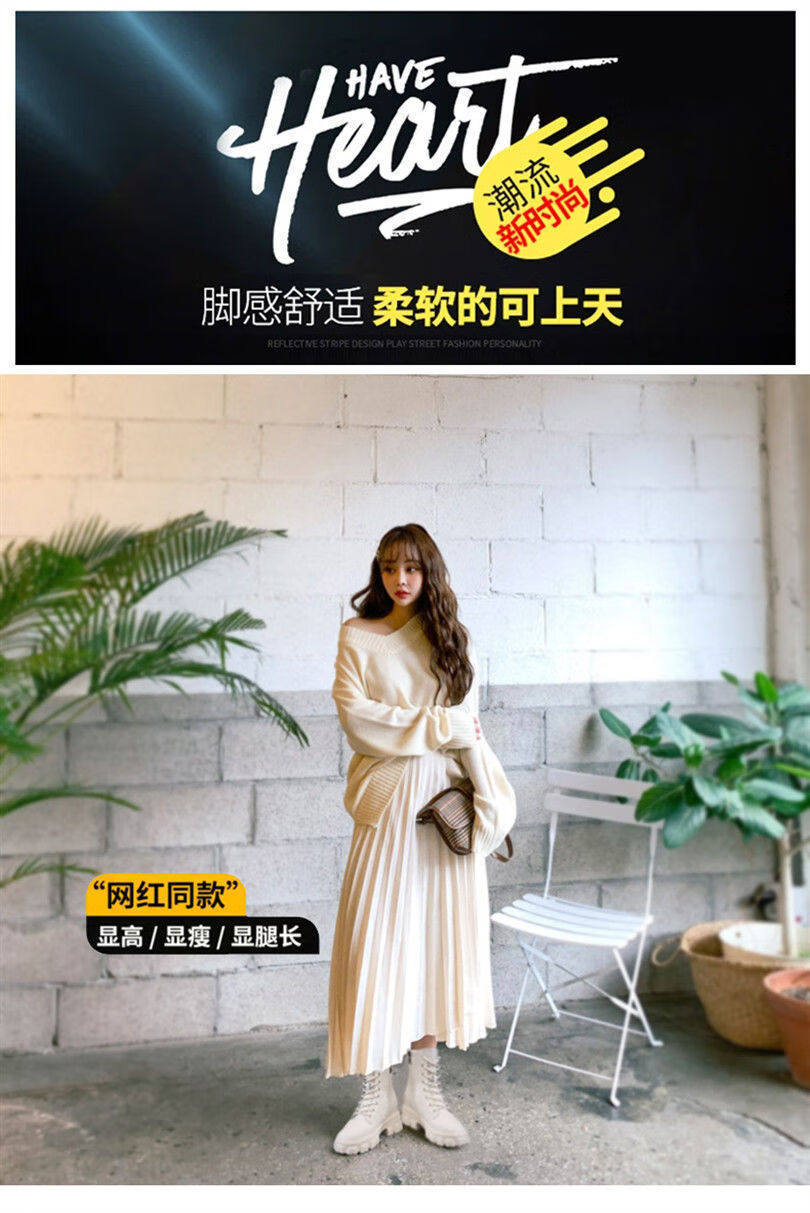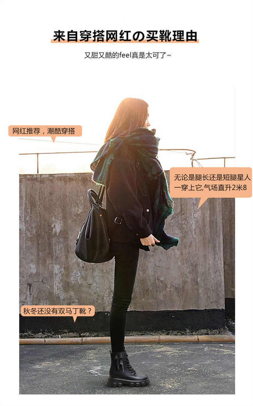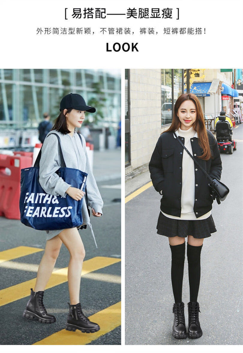 Woodpecker Martin boots women's shoes 2025 new Korean style plus velvet autumn and winter large size cotton shoes women's boots increased high-calf boots ins off-white/plush 37