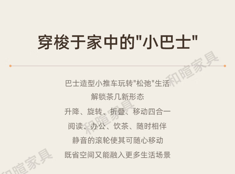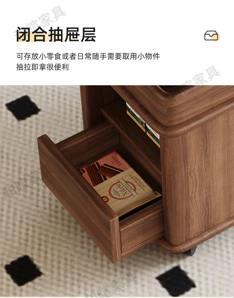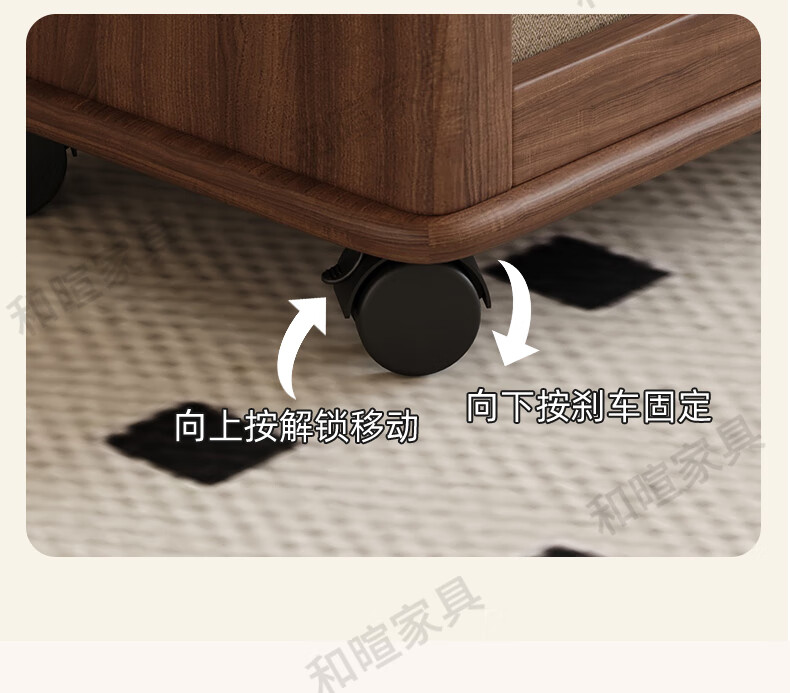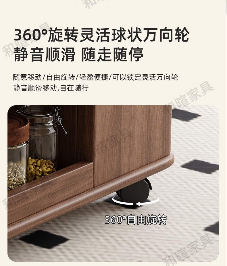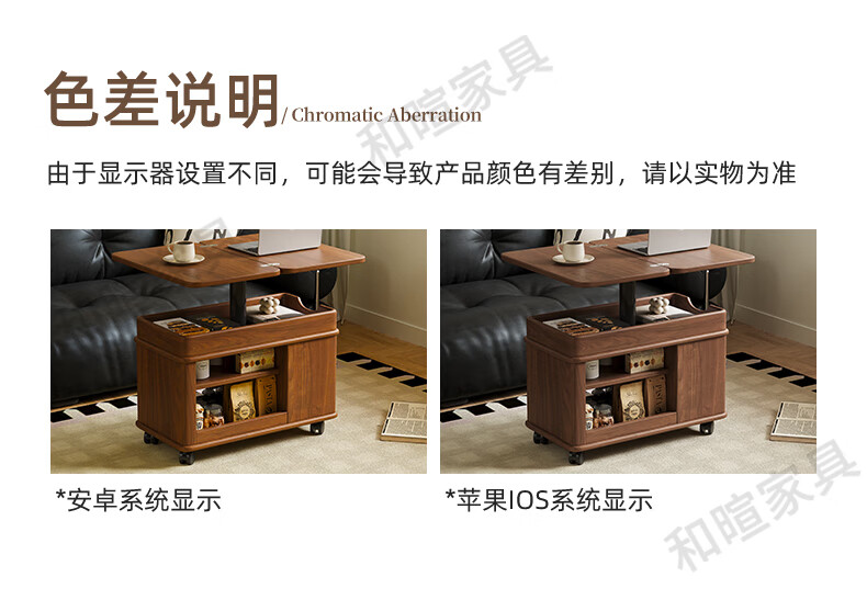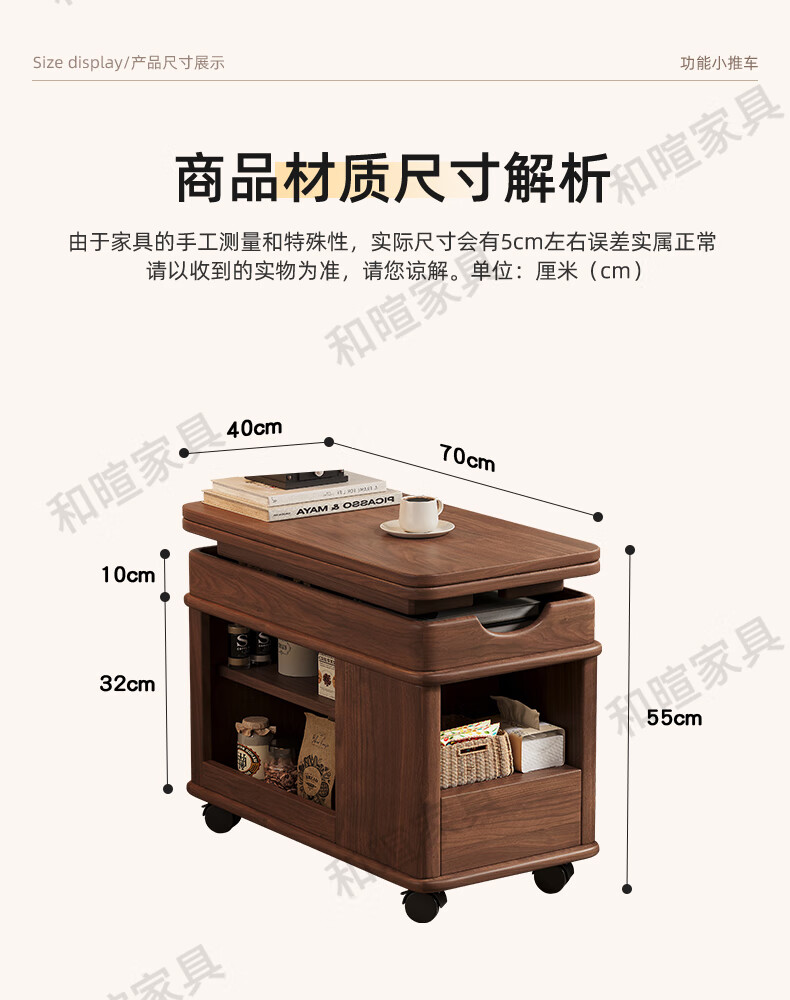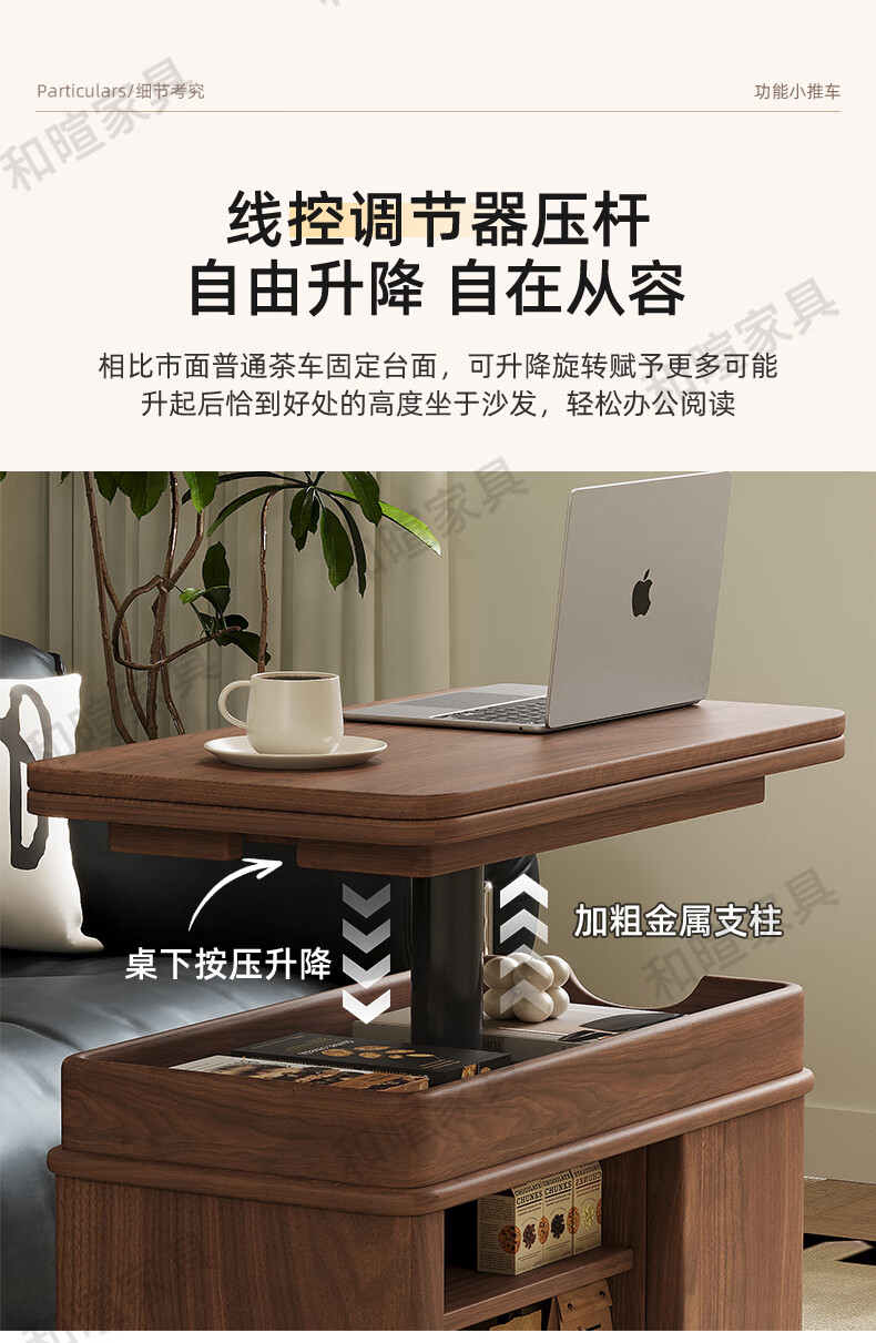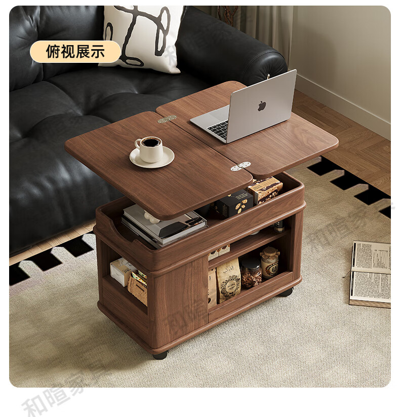 Hexuan solid wood movable coffee table with foldable lifting storage side cabinet multi-functional wheeled sofa side table trolley Lecheng medium color