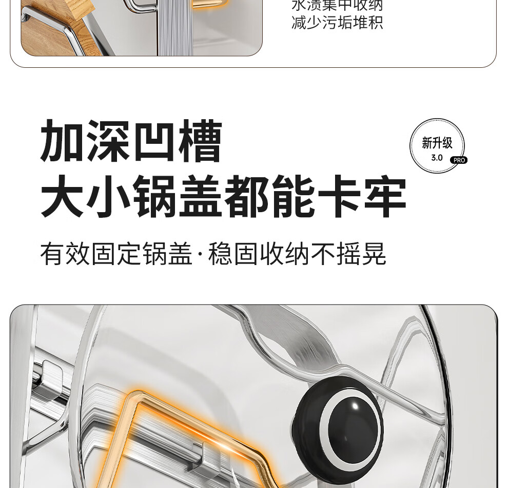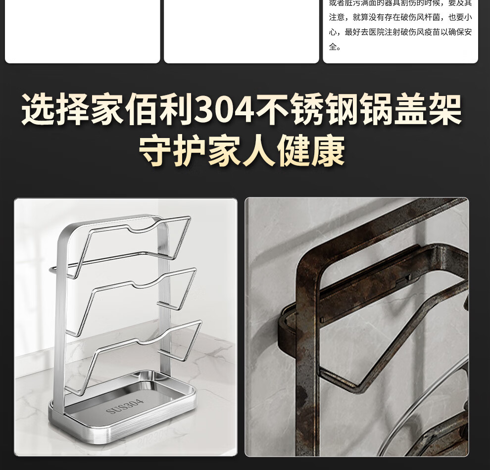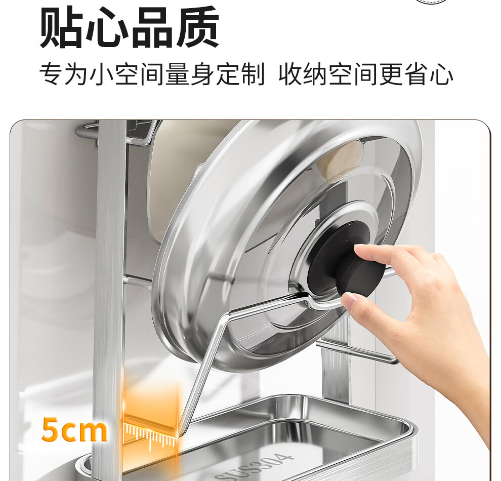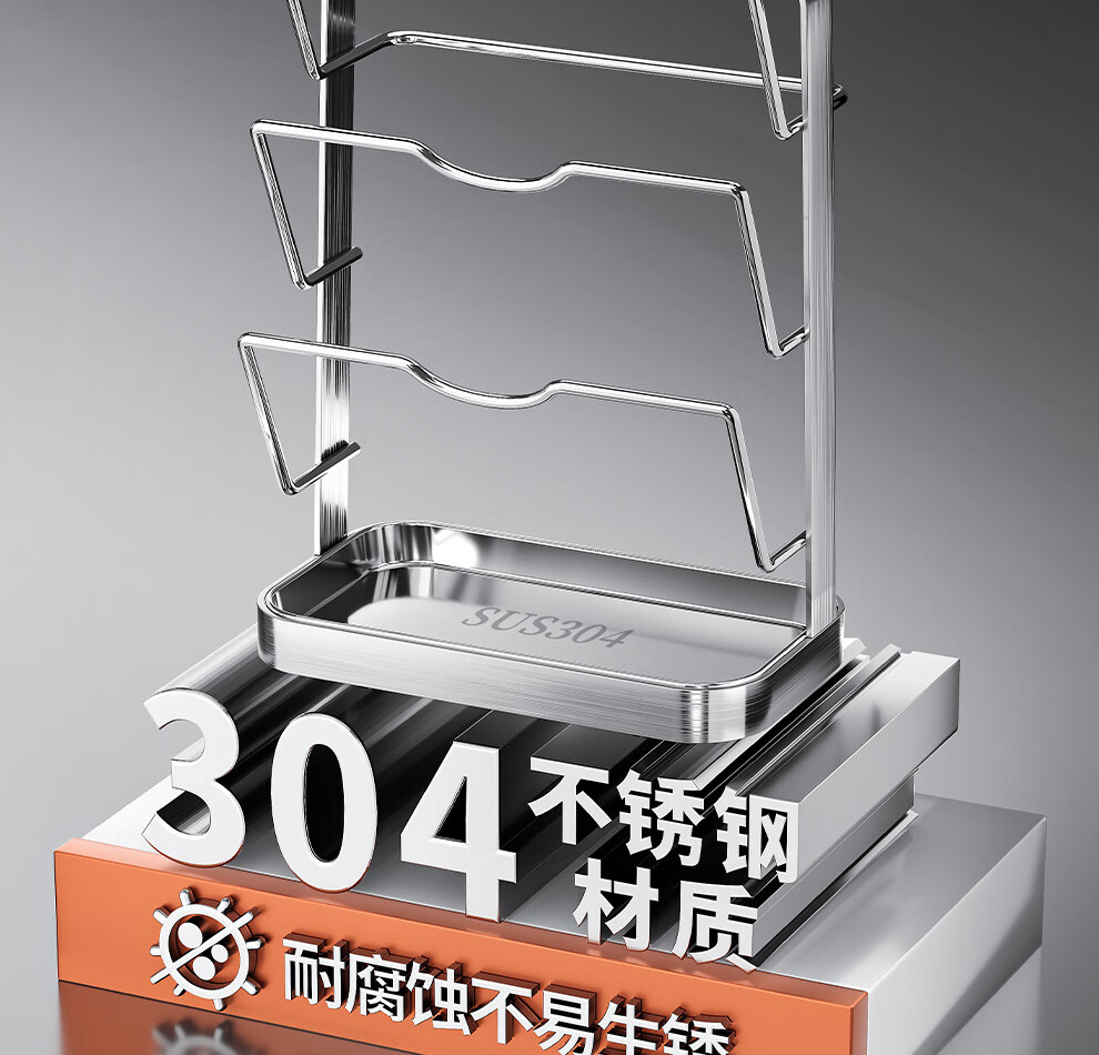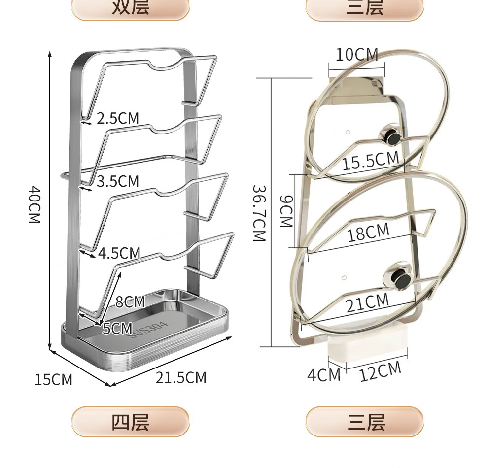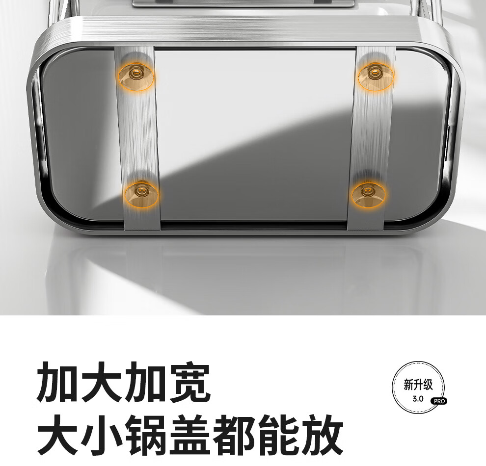Jiabaili 304 stainless steel pot lid rack wall-mounted punch-free kitchen storage rack with water tray 304 steel double-layer countertop_suction cup foot pad
