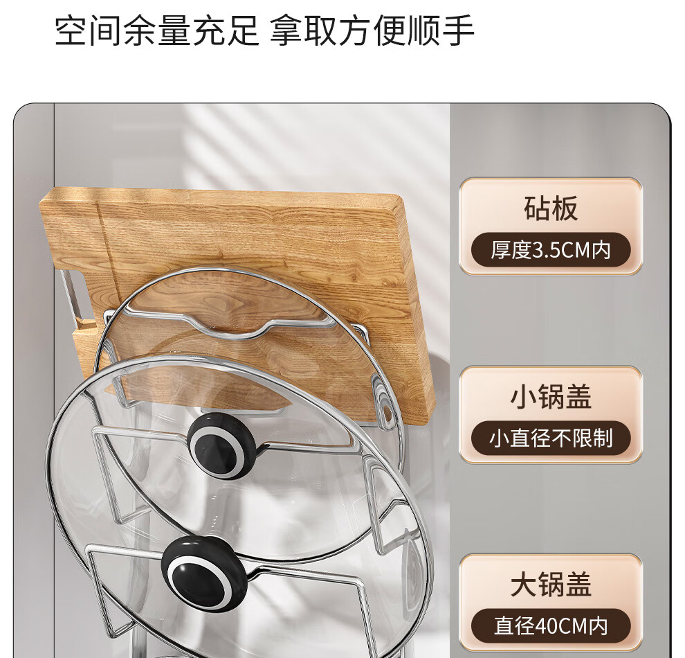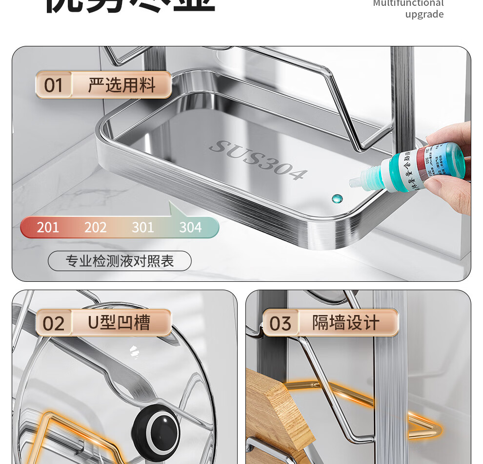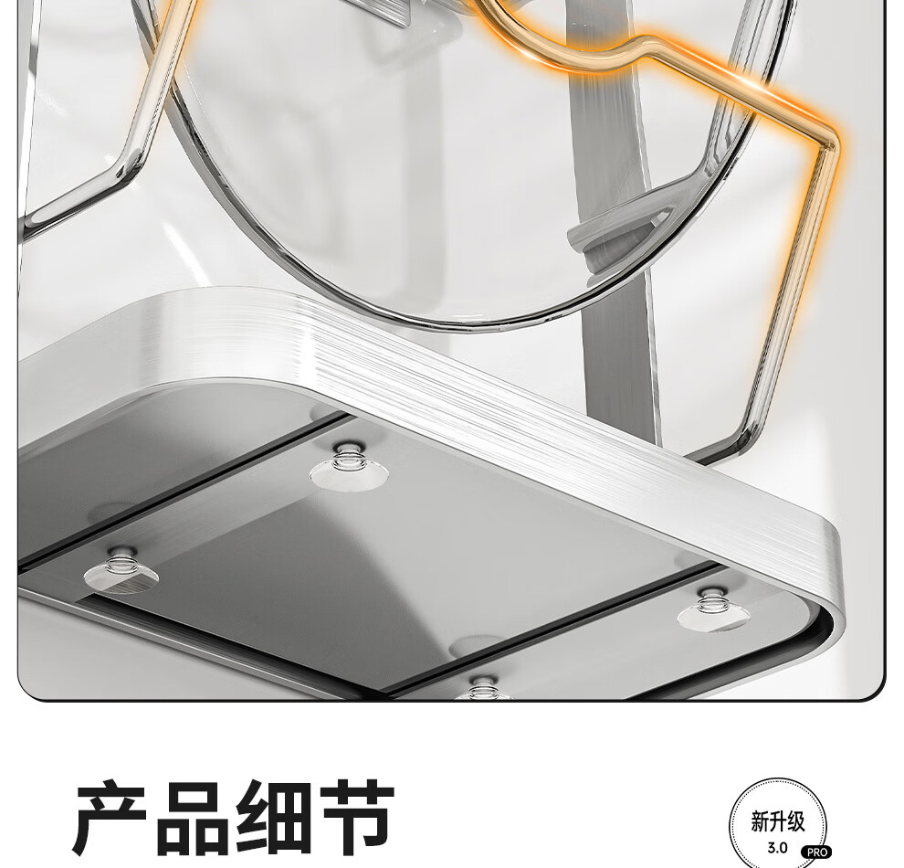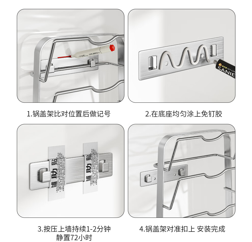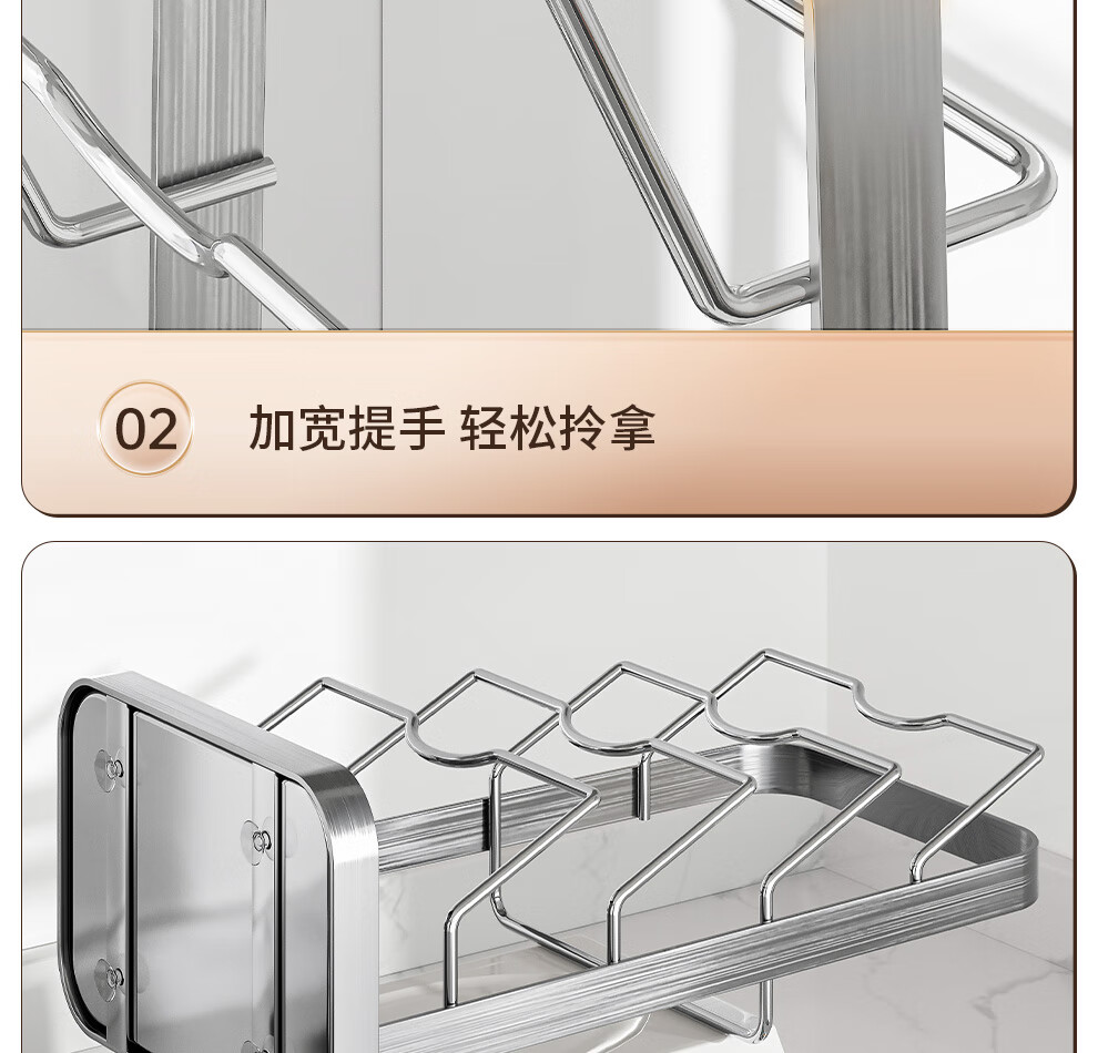 Jiabaili 304 stainless steel pot lid rack wall-mounted punch-free kitchen storage rack with water tray 304 steel double-layer countertop_suction cup foot pad