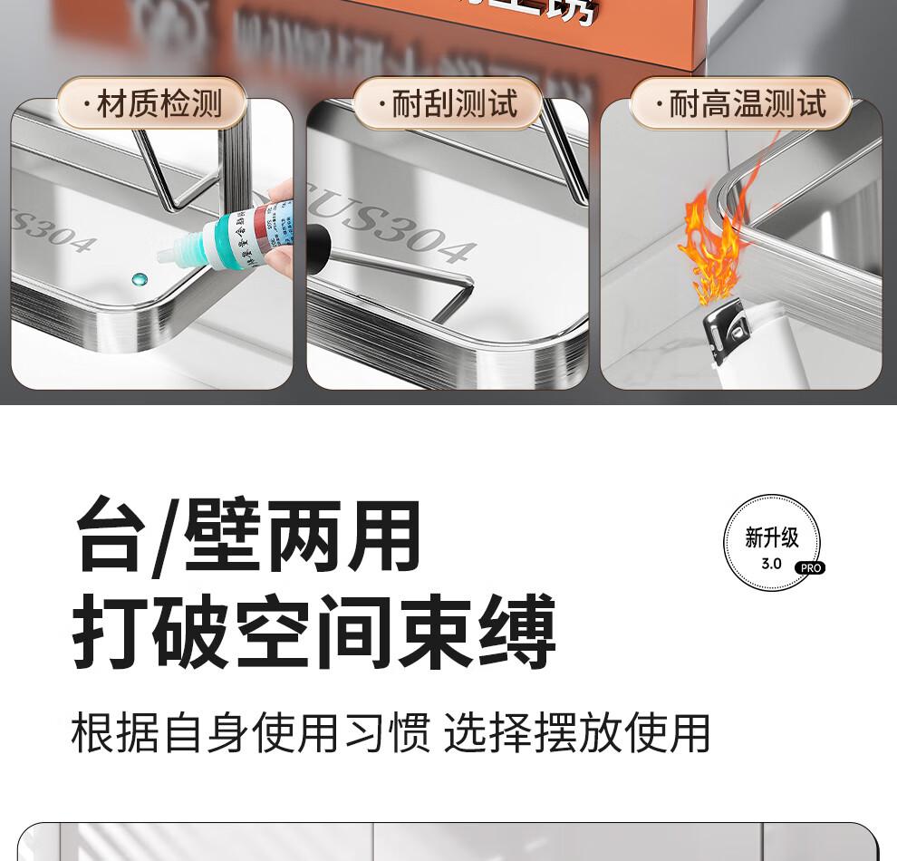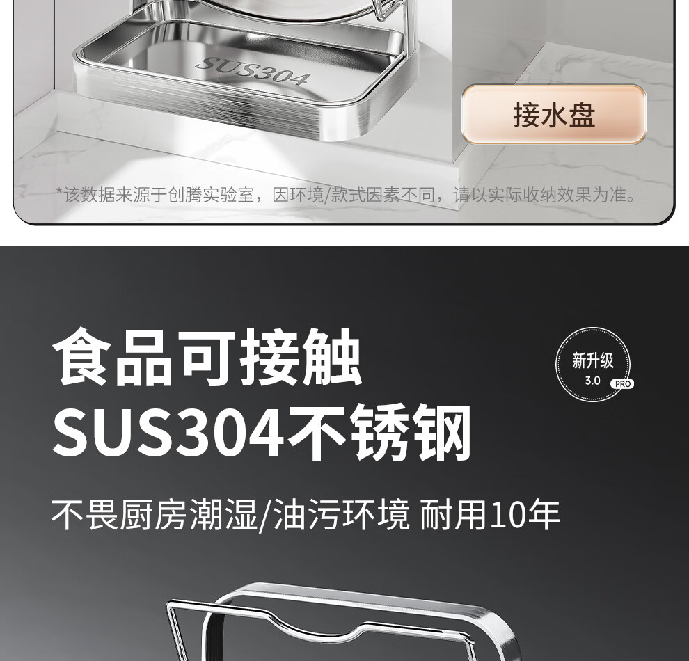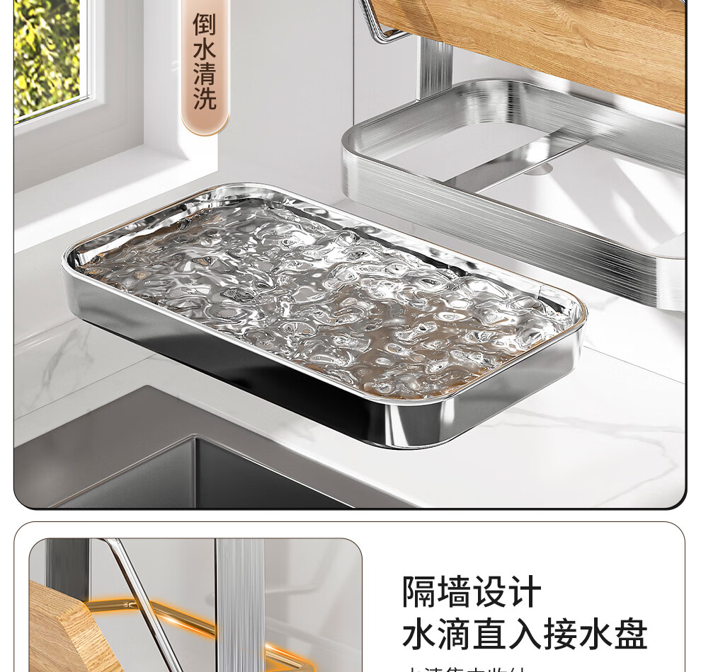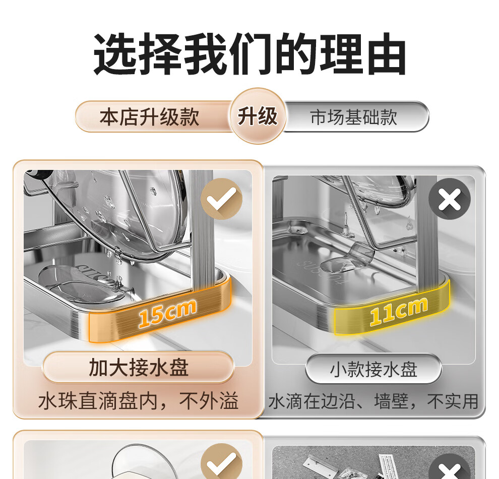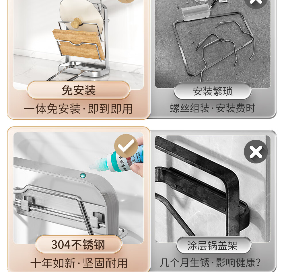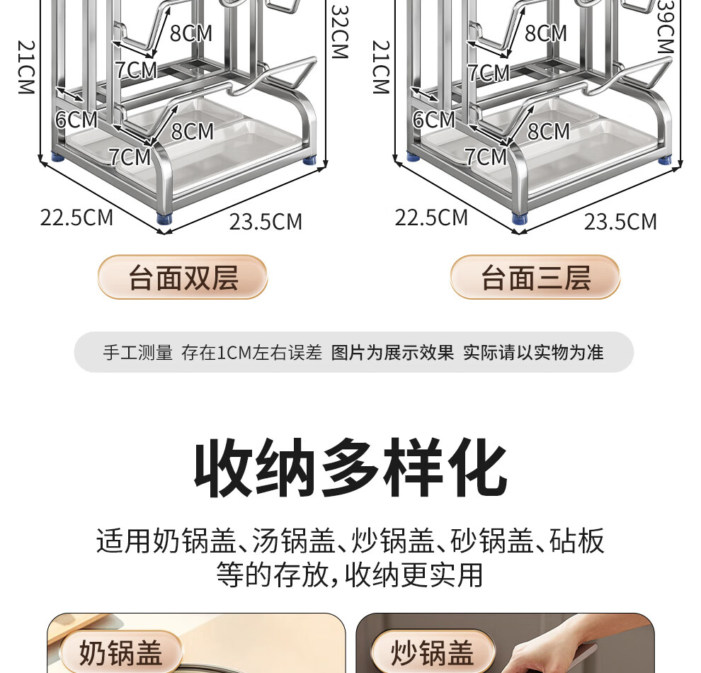 Jiabaili 304 stainless steel pot lid rack wall-mounted punch-free kitchen storage rack with water tray 304 steel double-layer countertop_suction cup foot pad