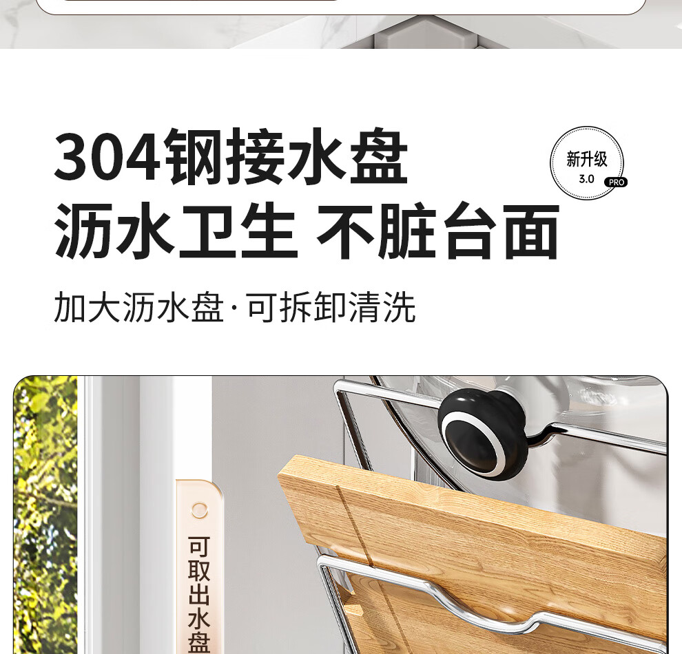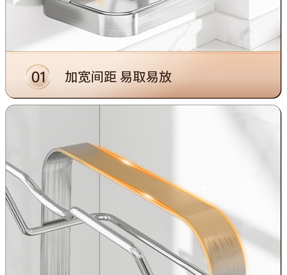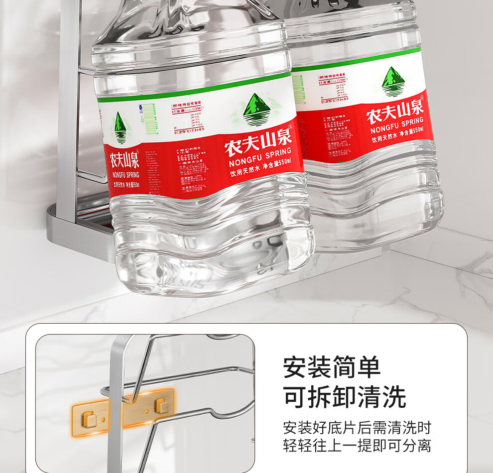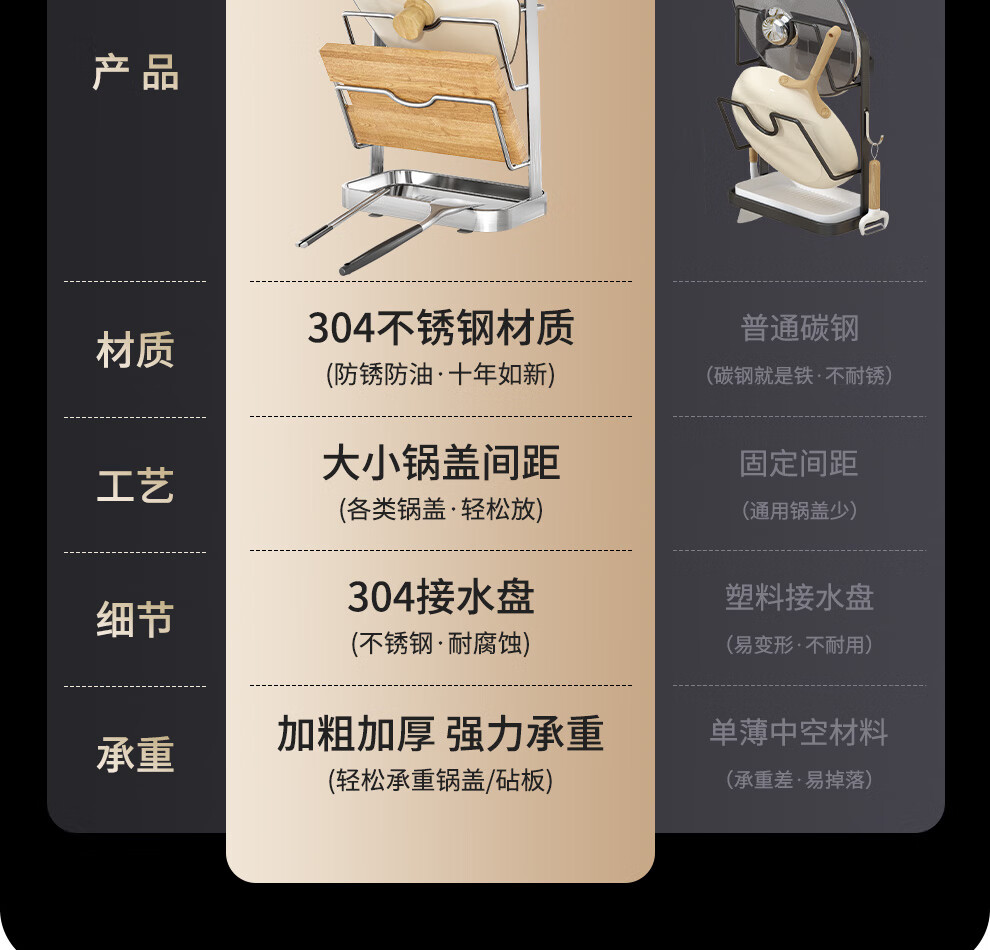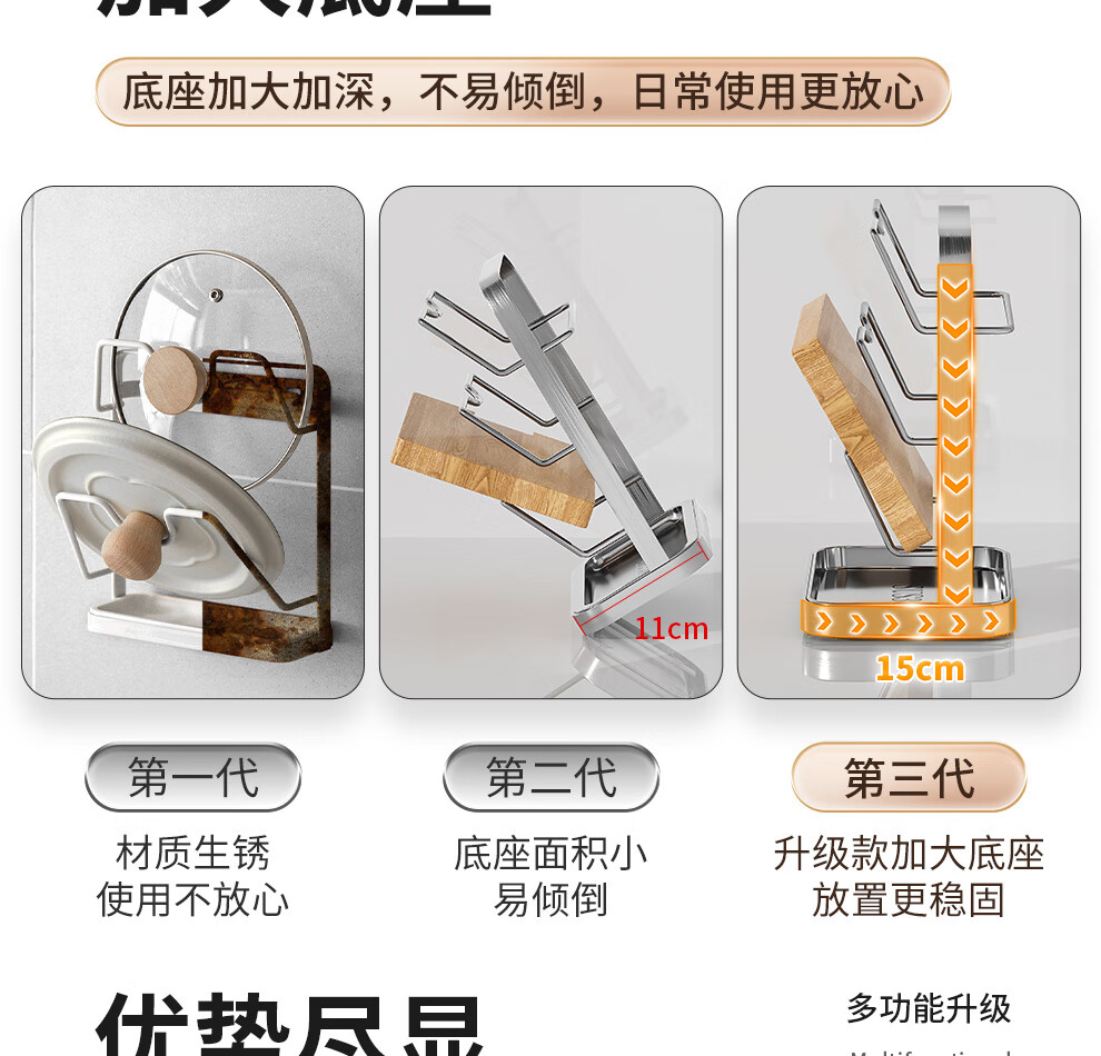 Jiabaili 304 stainless steel pot lid rack wall-mounted punch-free kitchen storage rack with water tray 304 steel double-layer countertop_suction cup foot pad