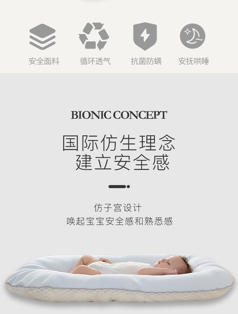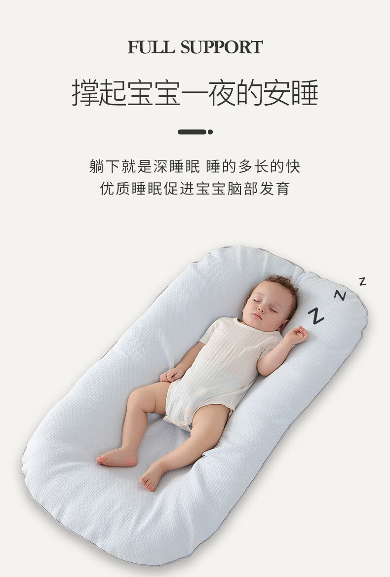Domi Beibei crib newborn bed floor-standing awakening artifact bionic soothing uterine bed anti-jumping baby gift Pota blue 0-2 years old - black technology PE hose filling