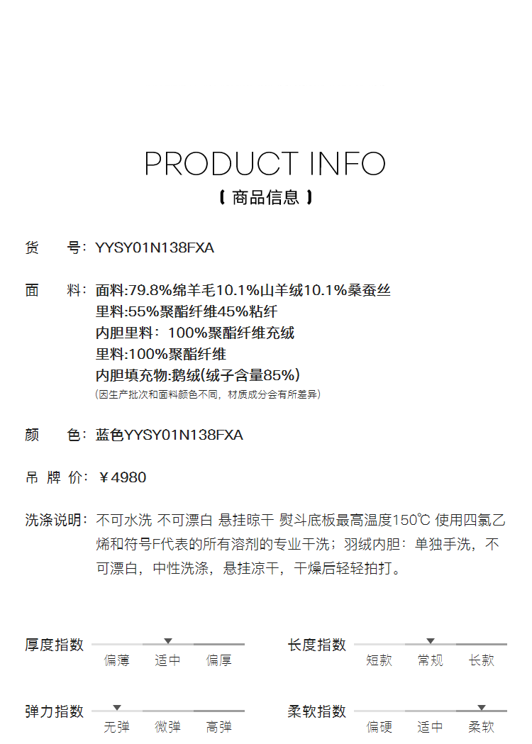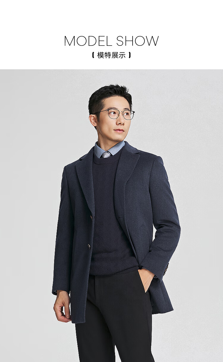 YOUNGOR Coat Men's Autumn and Winter Men's Coat Goose Down Lined Business Coat Shopping Mall Same Style Blue YYSY01N138FXA XL 180/100A