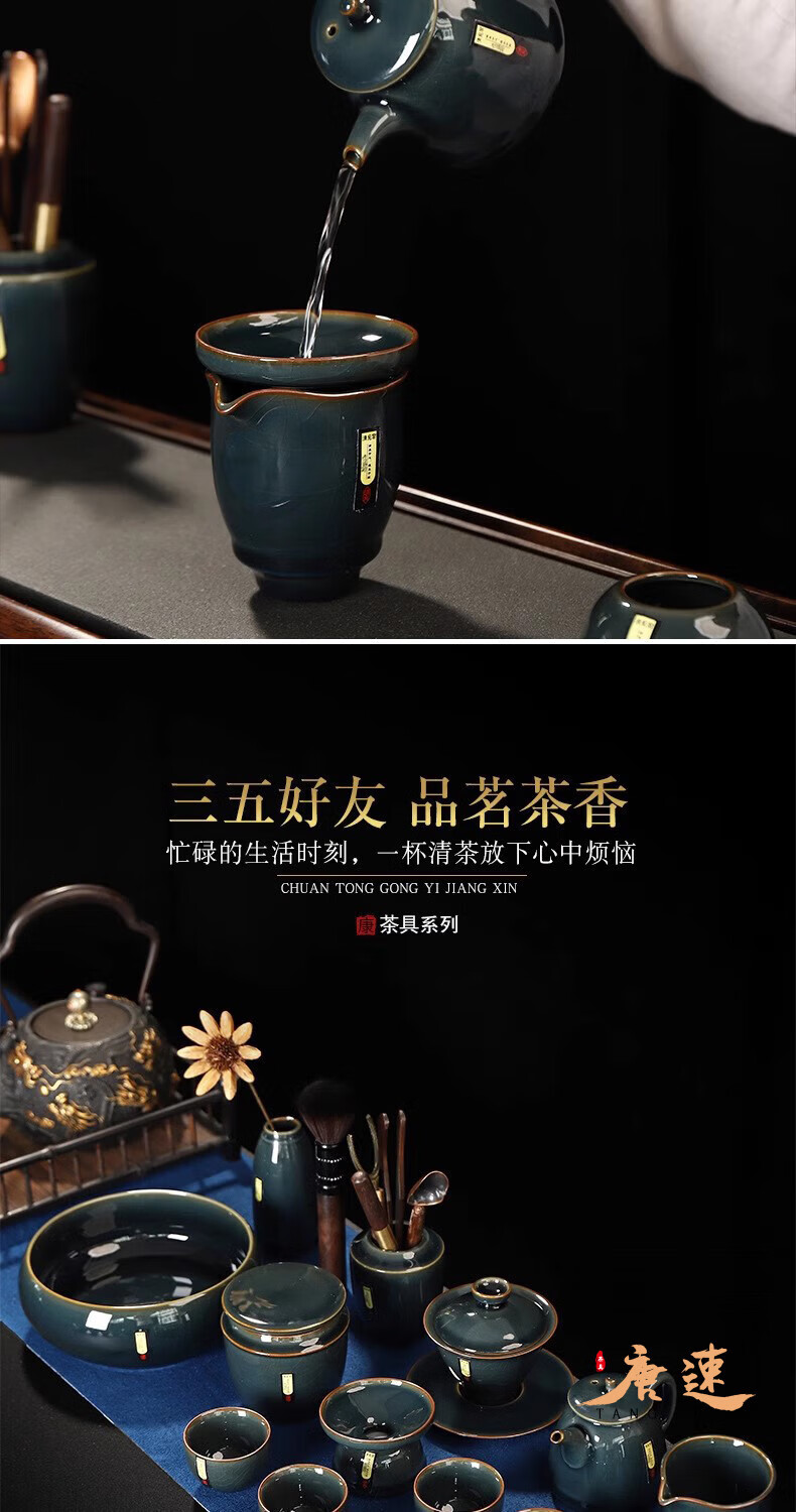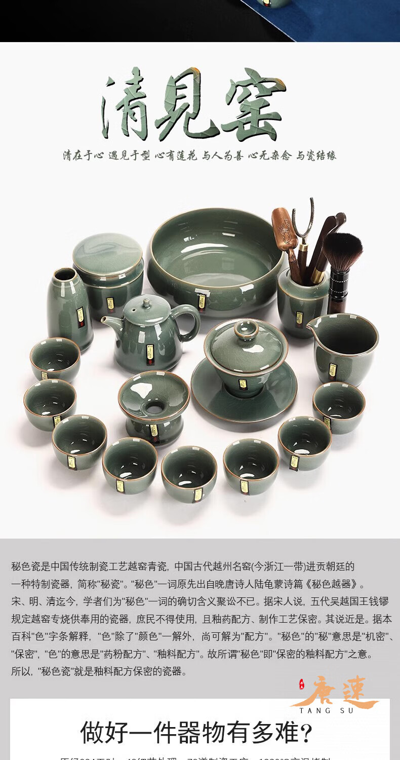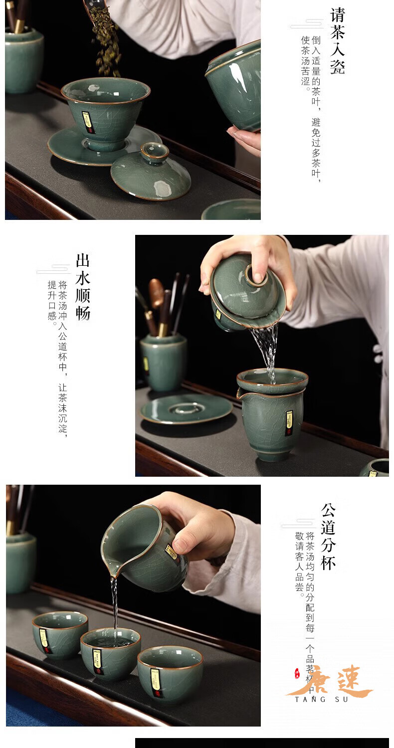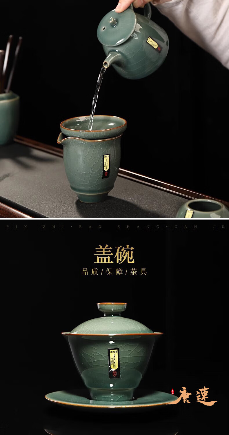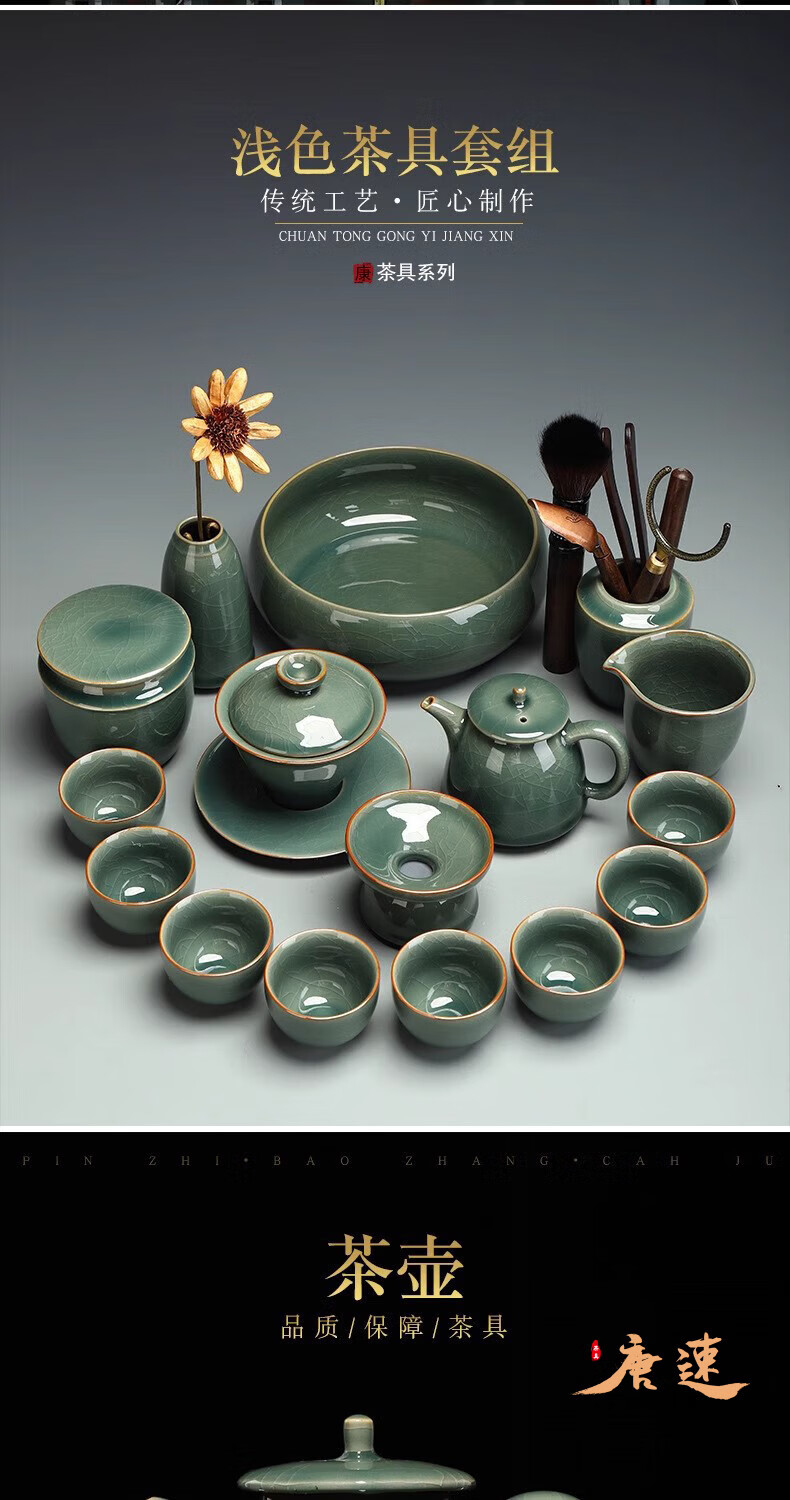 Tang Su complete set of ice-cracked porcelain split tea set set, ceramic complete set of Kung Fu tea set, tea ceremony cover bowl, teapot and cup set, light color large set, 1 piece