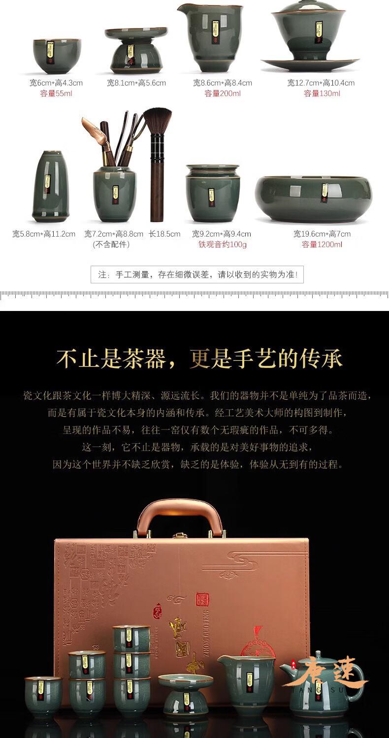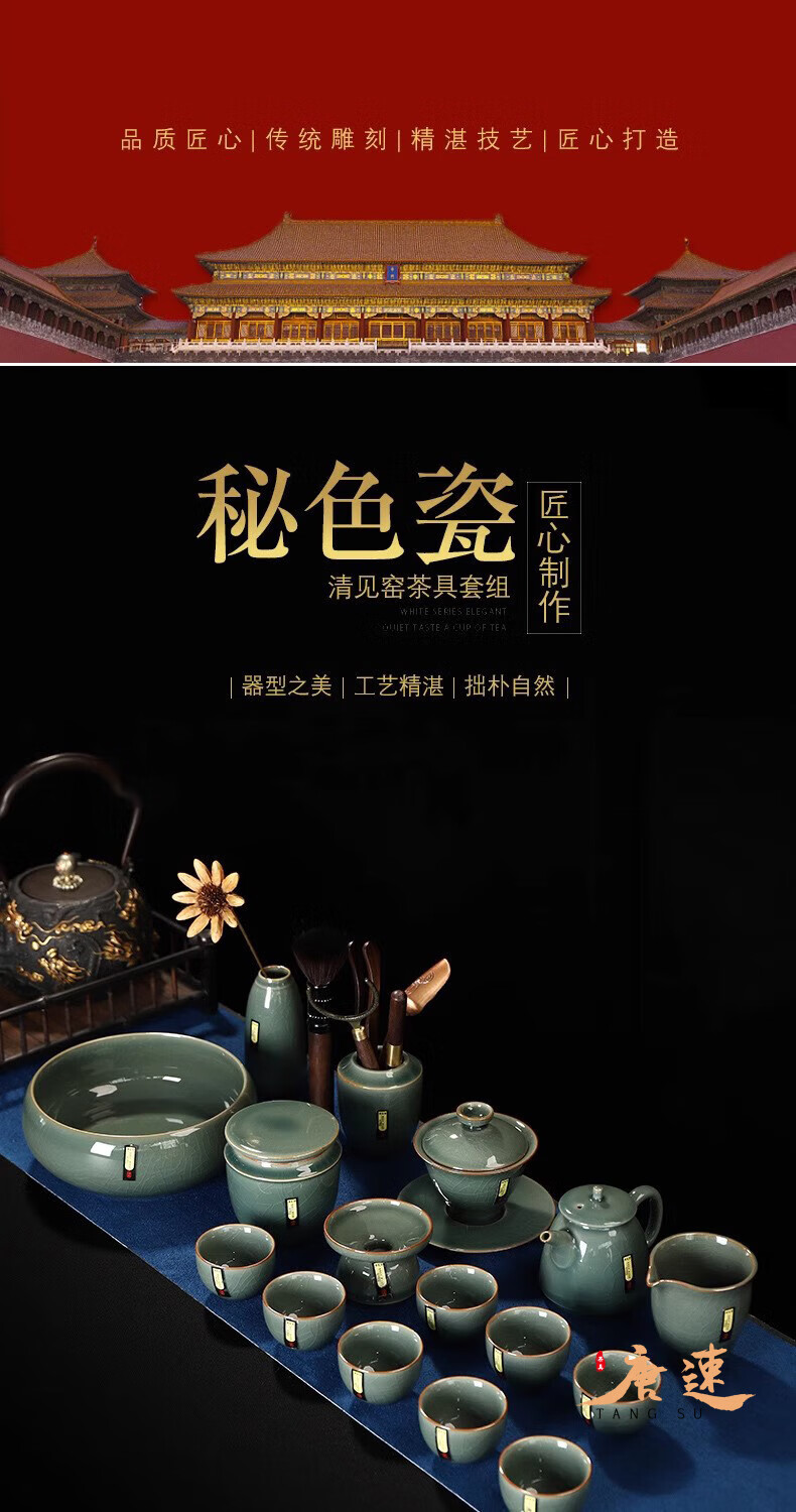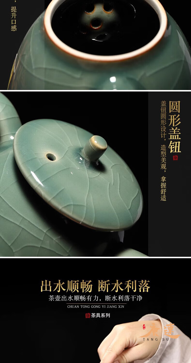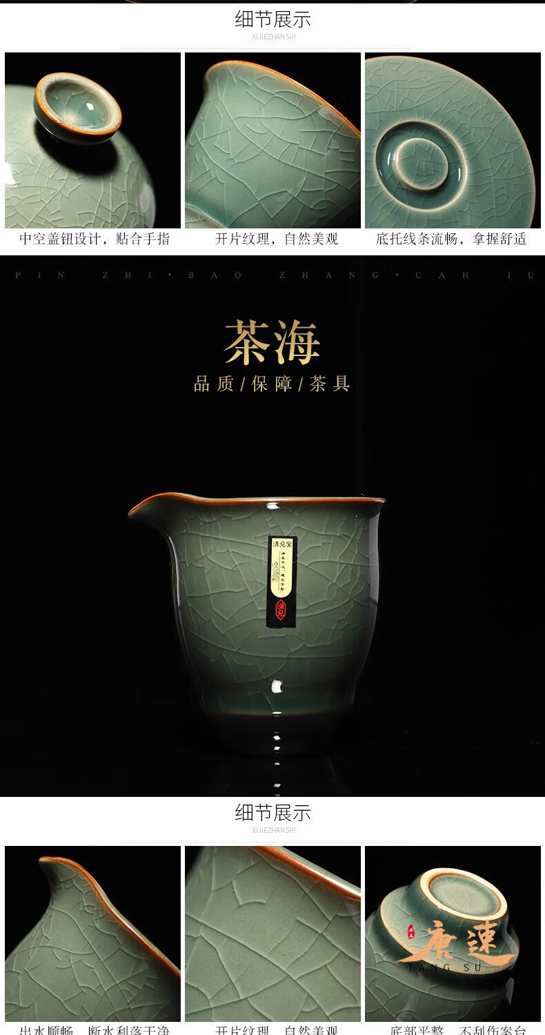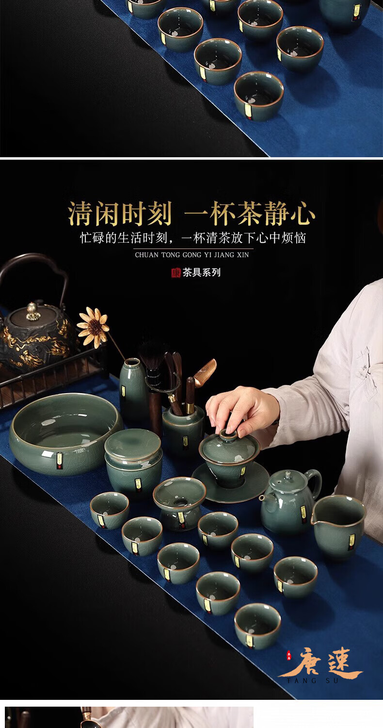 Tang Su complete set of ice-cracked porcelain split tea set set, ceramic complete set of Kung Fu tea set, tea ceremony cover bowl, teapot and cup set, light color large set, 1 piece