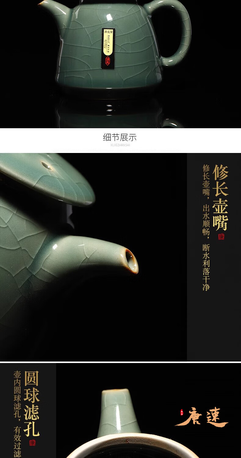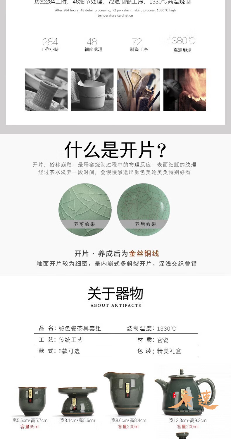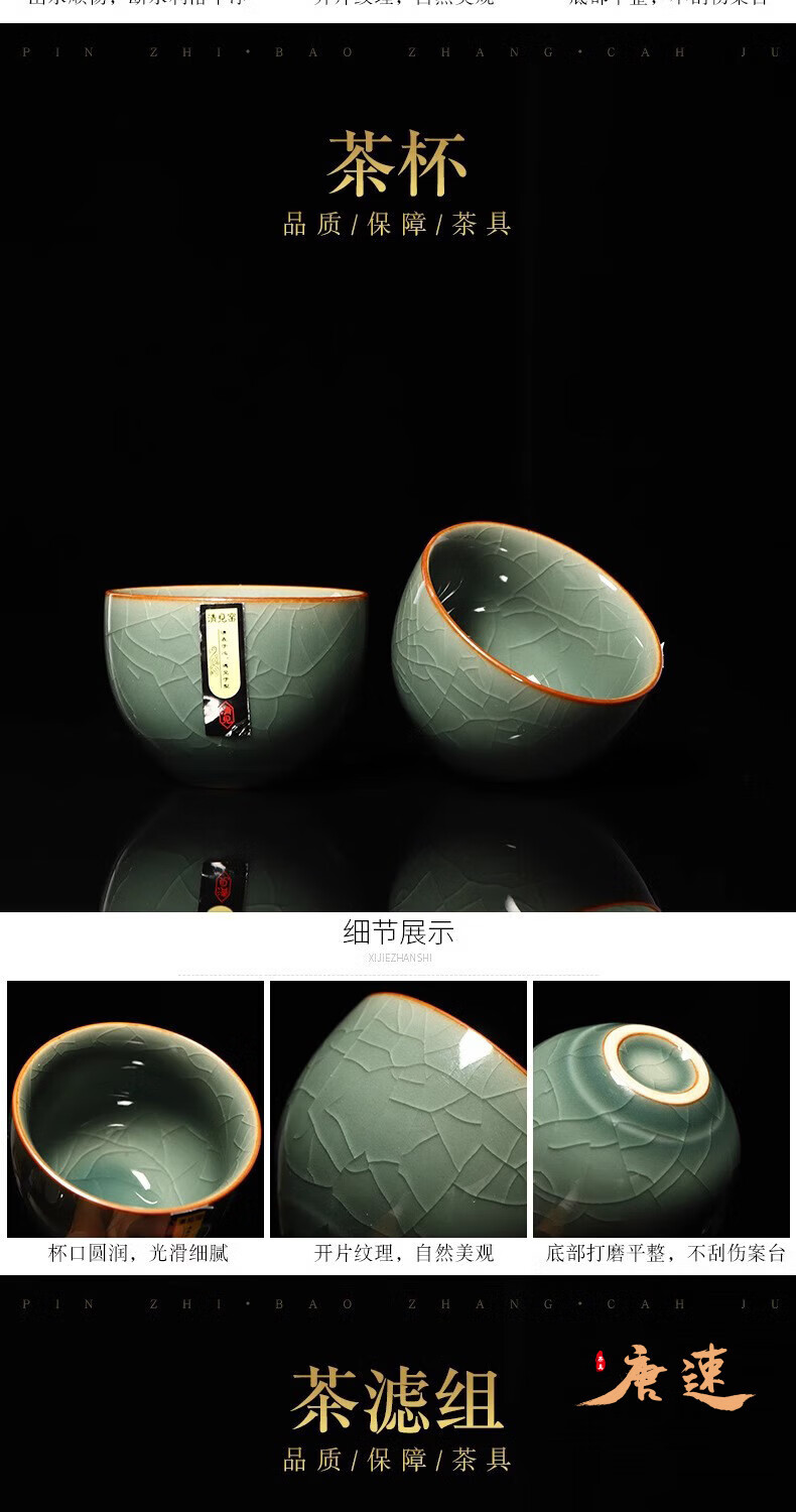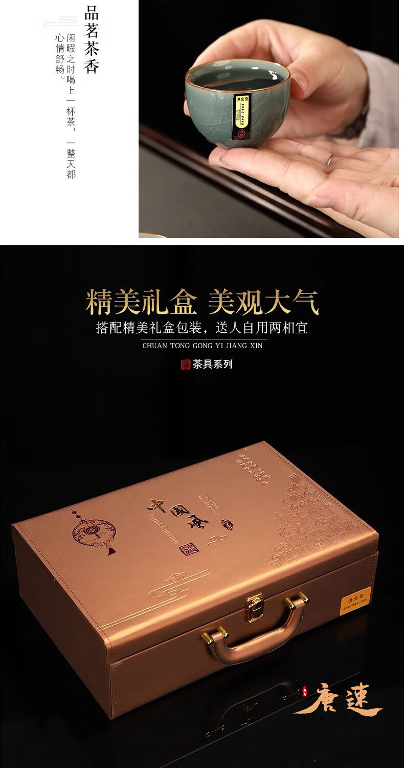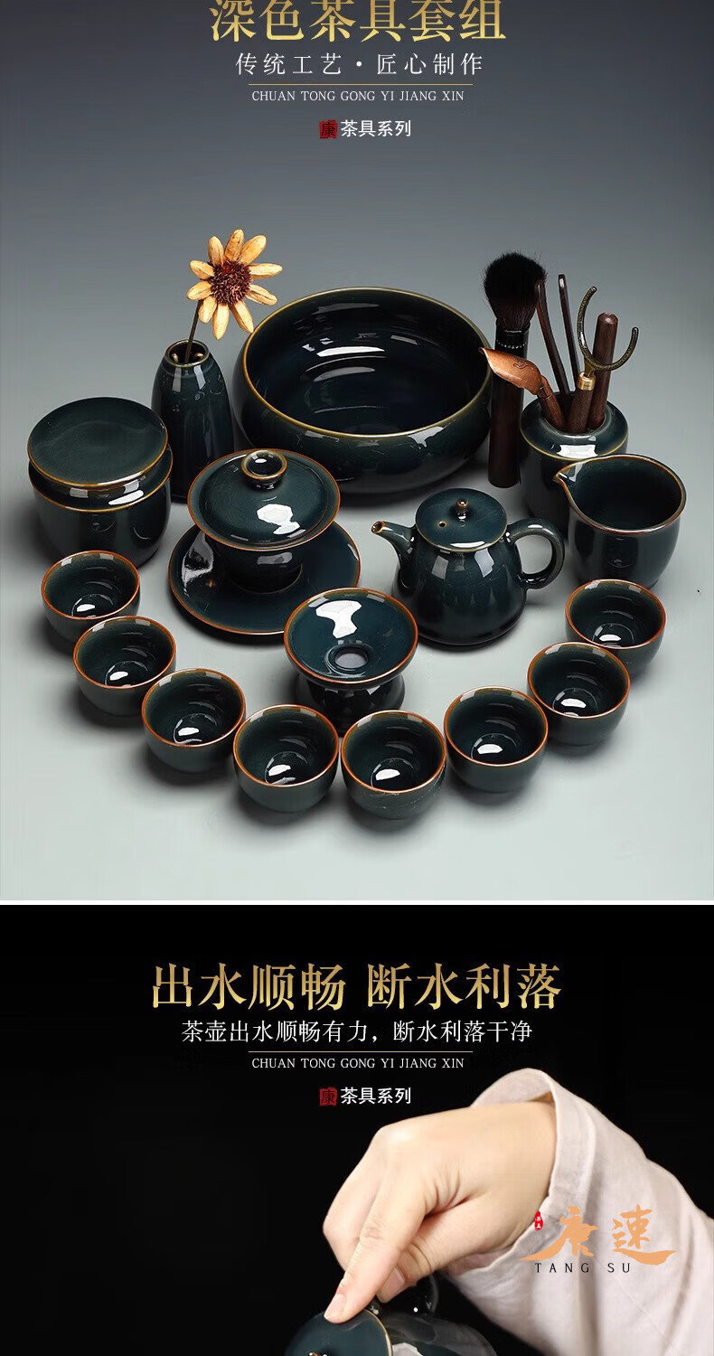 Tang Su complete set of ice-cracked porcelain split tea set set, ceramic complete set of Kung Fu tea set, tea ceremony cover bowl, teapot and cup set, light color large set, 1 piece