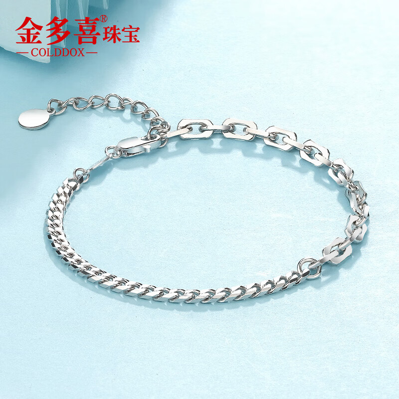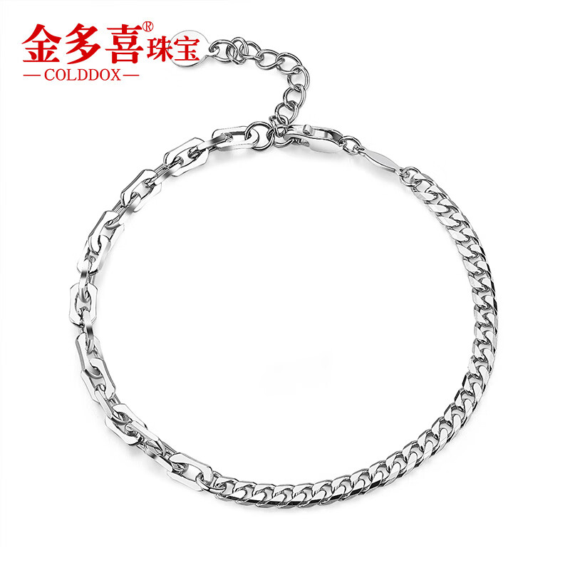 Jinduoxi Pt950 platinum bracelet for women, cross platinum plain chain, side chain, men's fashionable bracelet, can be stacked and given as a gift, about 16+3cm, 3.7mm wide, 9.1-9.3 grams in weight